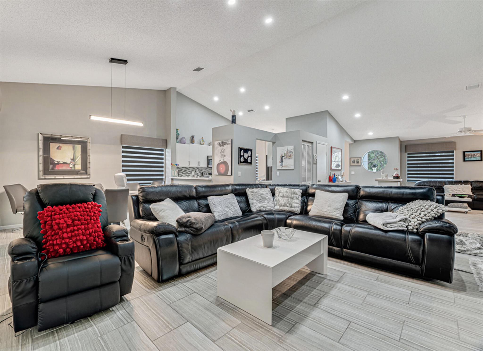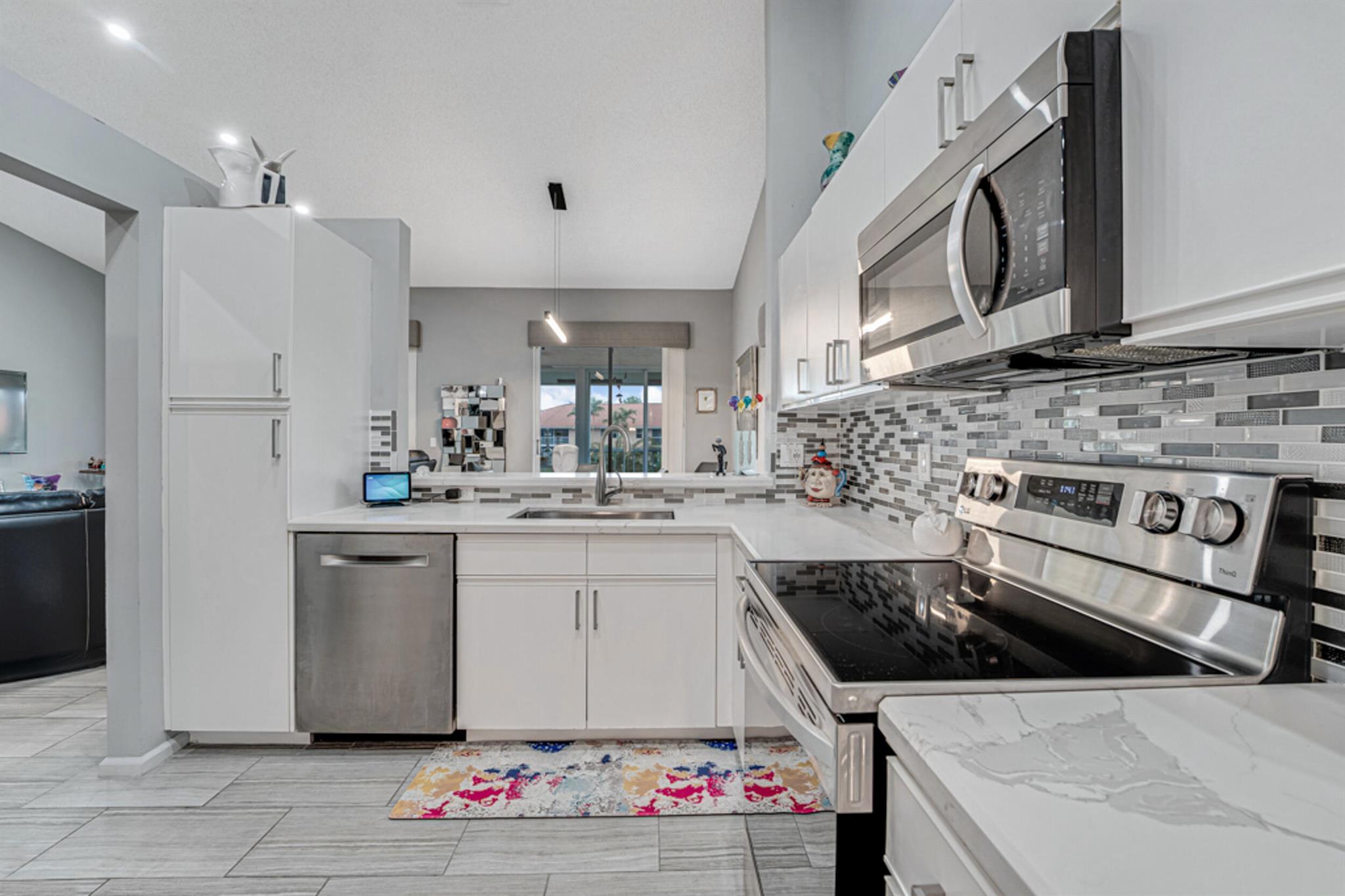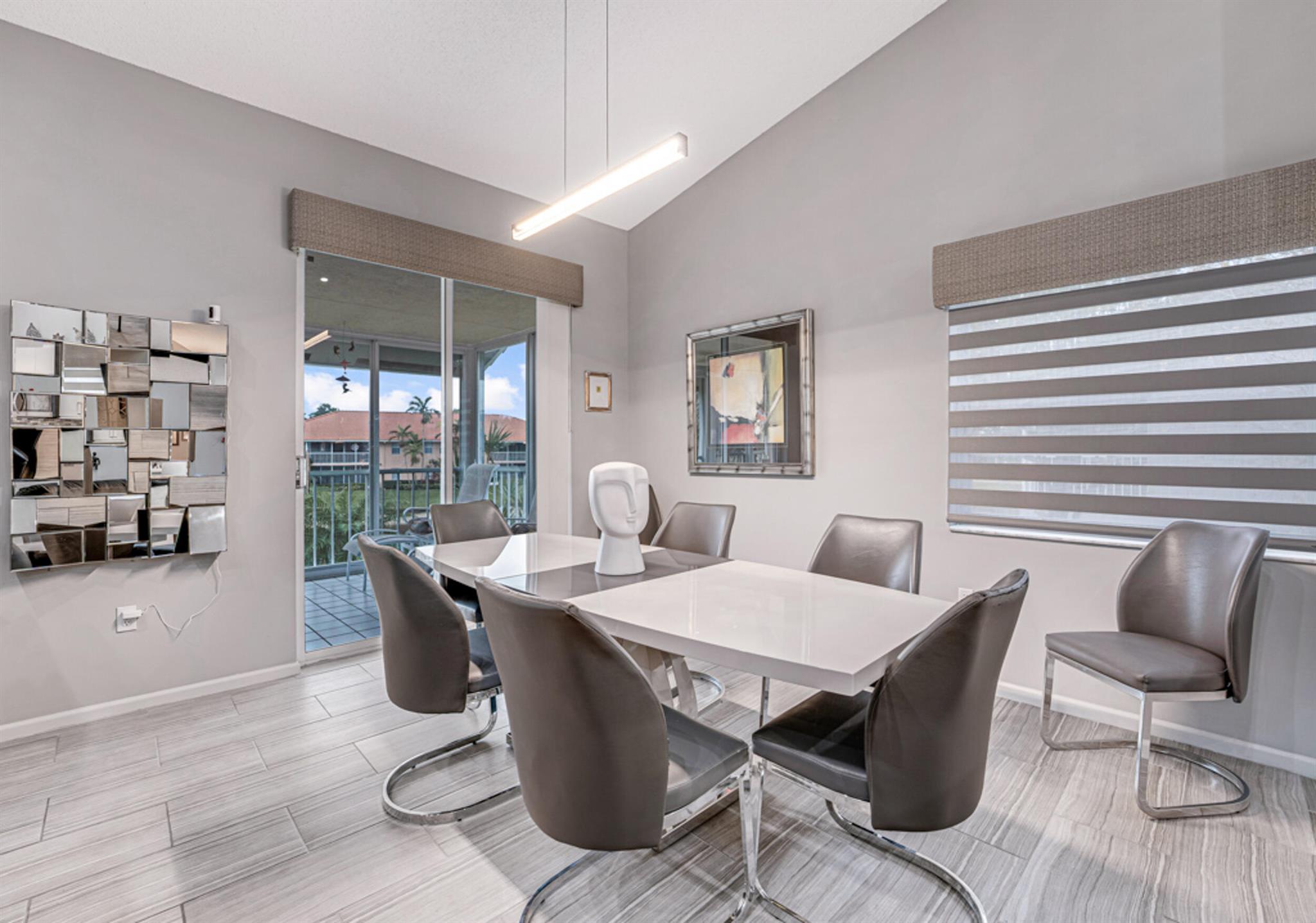 This modern & super clean condo offers comfortable living with a lovely lake view. The home is filled with natural light, creating a warm & inviting atmosphere. The updated kitchen features sleek stainless steel appliances, and ceramic tile & high hat LED lights throughout the living areas. An enclosed patio provides a space to relax and enjoy nature. Additional conveniences include an inside laundry room and covered carport parking. Located in the active 55+ community of Palm Isles, this home is minutes away from new shopping centers, offering dining, retail, & entertainment options for your convenience and enjoyment. Be sure to check out the 3D walkthrough tour for an ''in-person'' view of the entire condo. Multi-million Dollar Renovated Clubhouse reopens in late December!