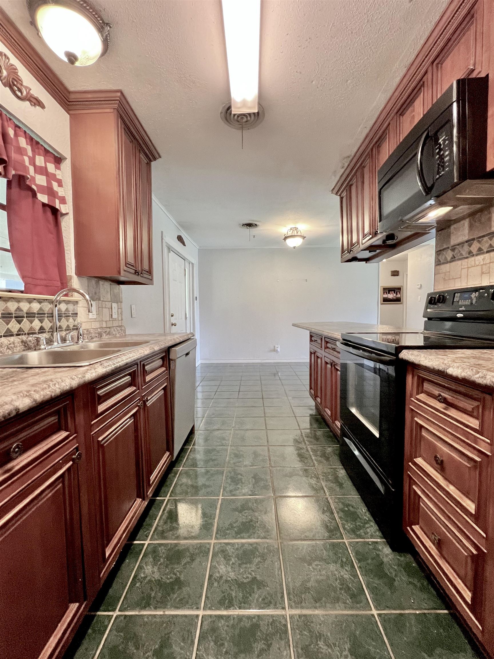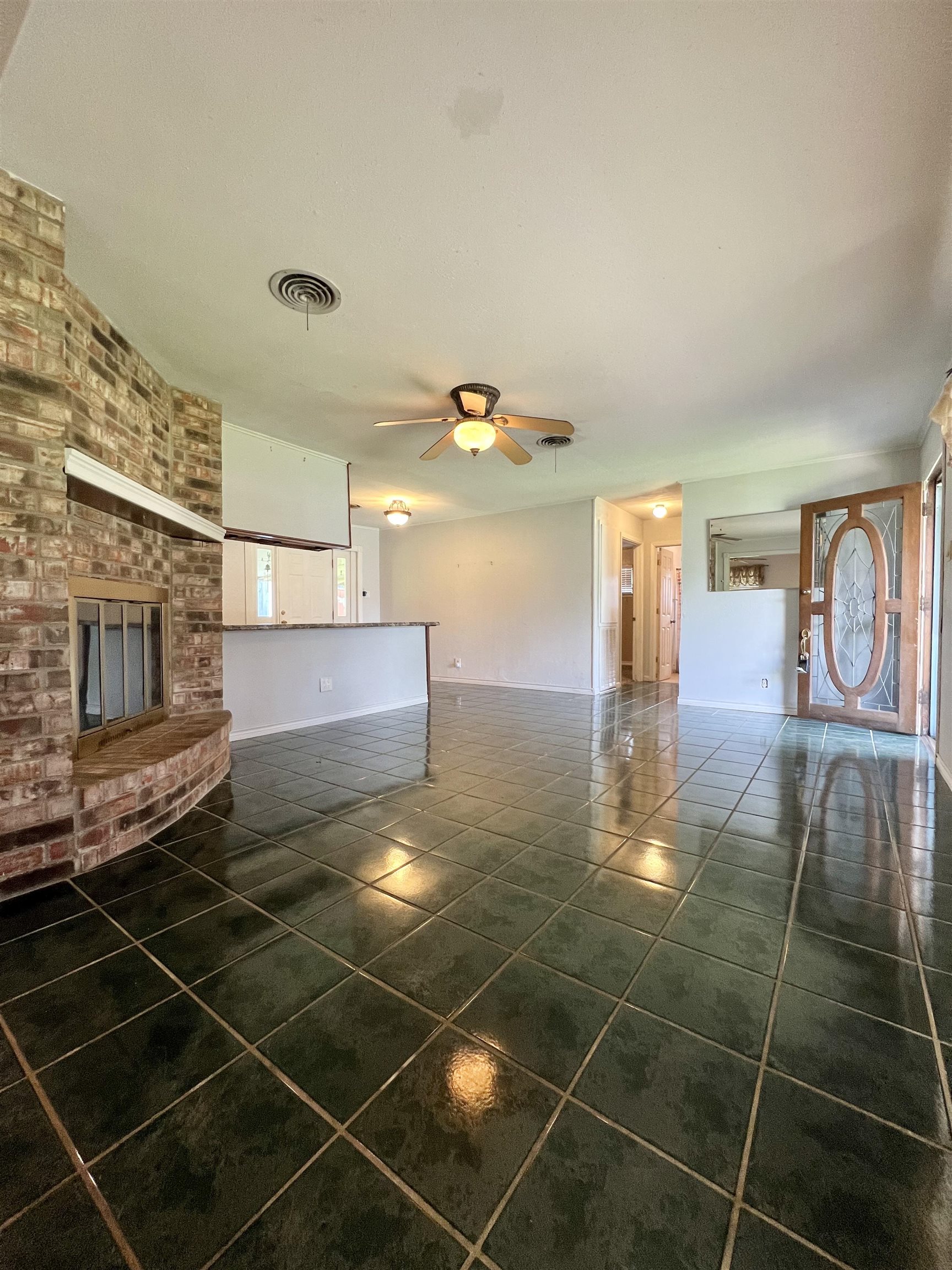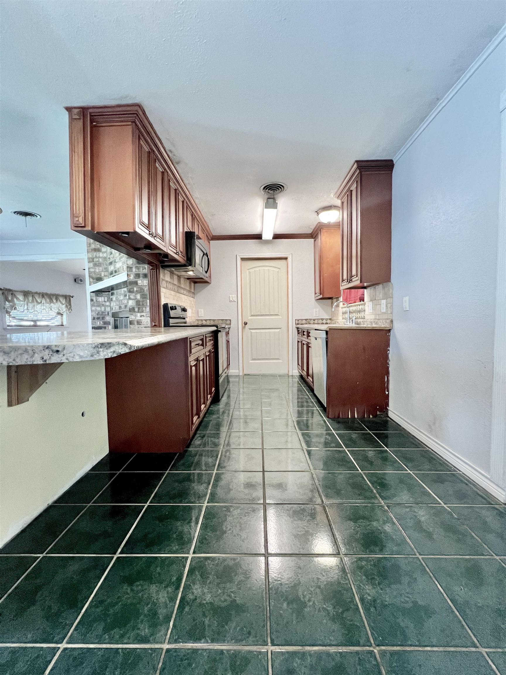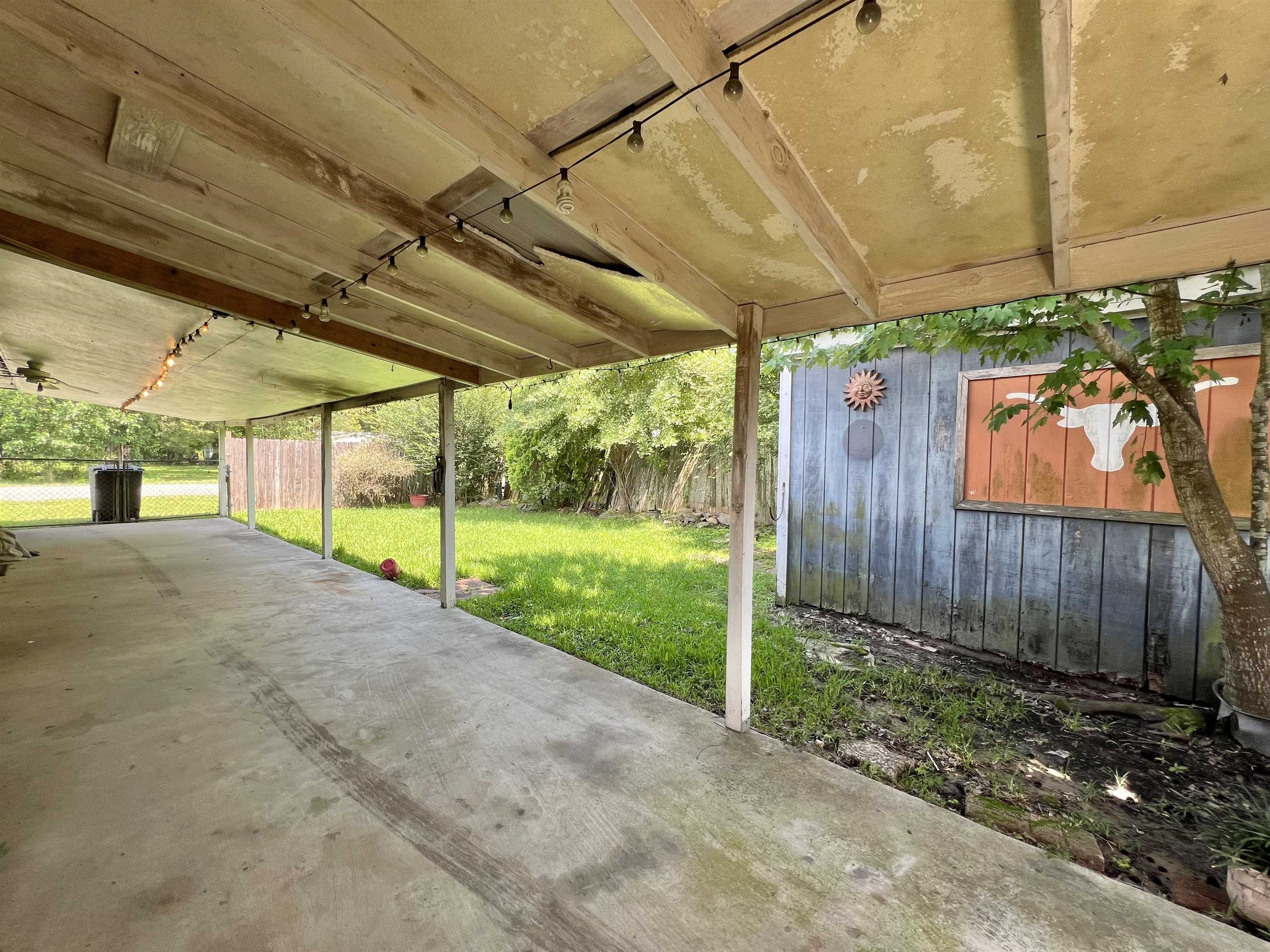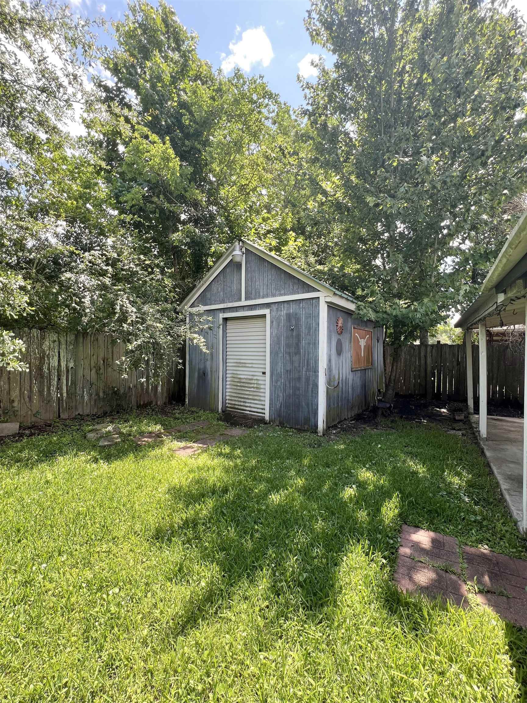 Brick home on slab situated on corner lot makes the perfect investment or starter home. 2 bedrooms, 1 full bath, original garage was converted to flex room and was formerly used as formal dining. Living room with corner fireplace, kitchen has breakfast area and lots of cabinets. Backyard is fully fenced with side double gate entrance, storage building and extra large covered back patio. Make your appt today for this adorable, affordable home!!