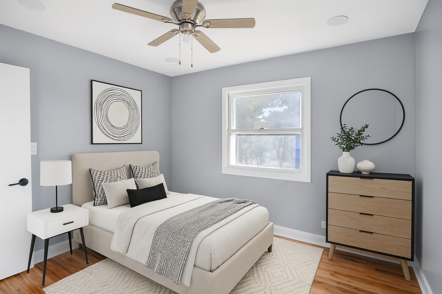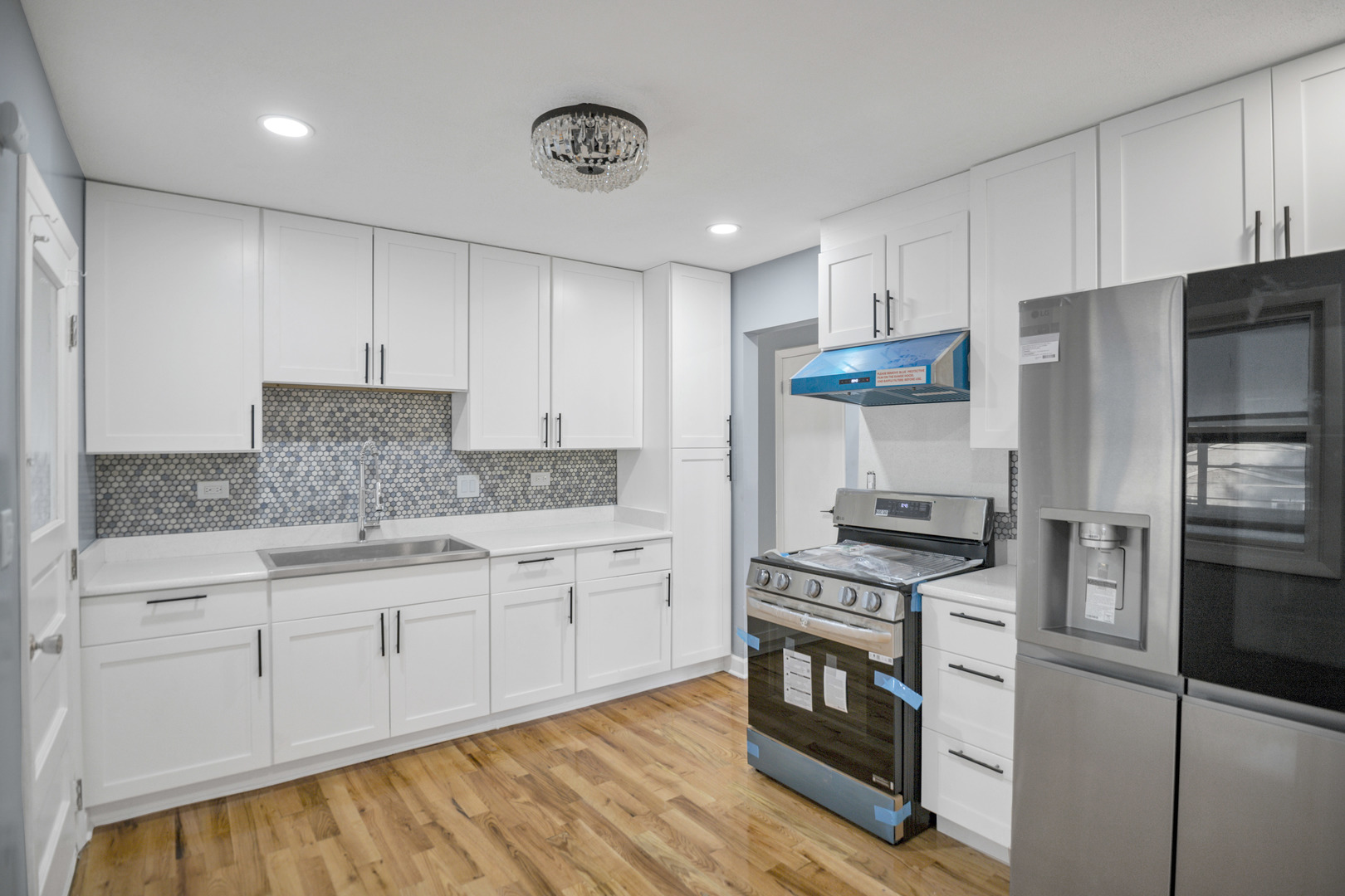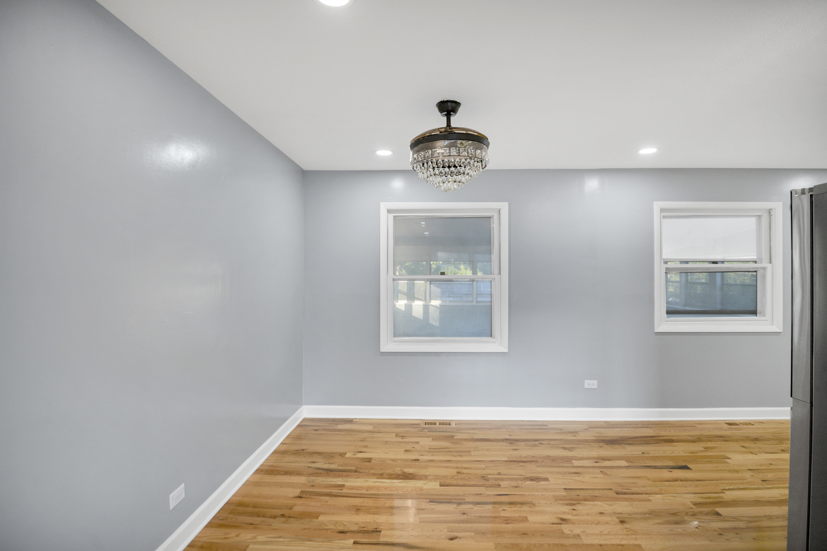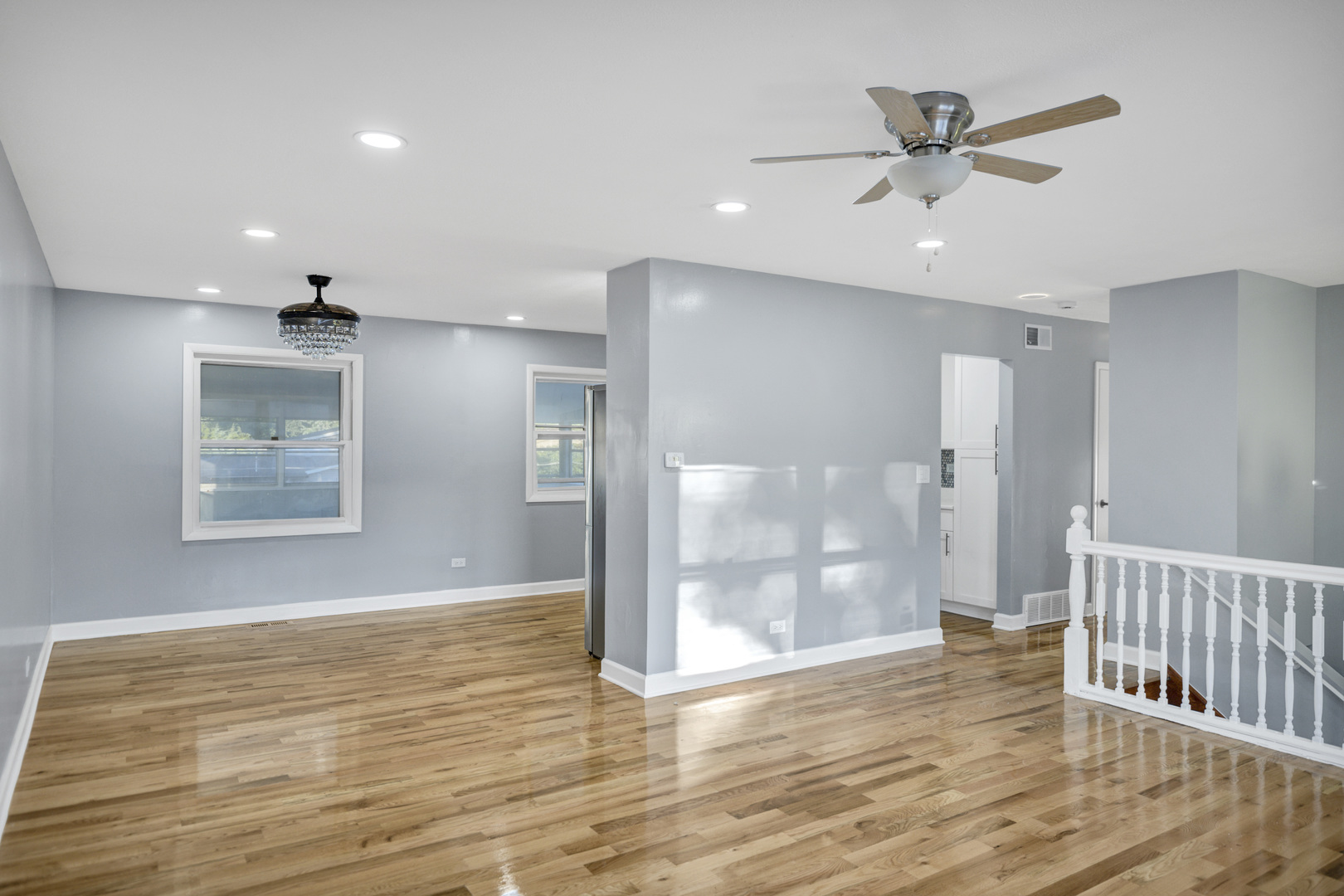 Welcome to this 4-bedroom, 1.1-bath raised ranch located in the highly regarded Schaumburg school districts! Step into the impressive two-story foyer and head upstairs to find a spacious living and dining room combination, perfect for both everyday living and entertaining. The open layout flows into a large kitchen with room for a table and direct access to the oversized covered porch-ideal for outdoor dining and relaxing. Down the hall, you'll find three comfortable bedrooms with generous closets and bright windows, along with a full hall bath featuring ceramic tile flooring and a solid-surface tub surround. The home has been refreshed with new paint and flooring throughout, creating a clean, move-in-ready feel. The lower level offers even more living space with a large family room highlighted by a cozy wood-burning fireplace and built-in shelving, plus a sizable fourth bedroom, half bath, utility/laundry room, and convenient garage access. Outside, enjoy an expansive fenced backyard and a versatile enclosed workshop or storage space located beneath the deck. Major updates include a brand-new garage door, roof (2018), furnace (2016), and water heater (2023). All this in a prime location near Wintrust Field (home of the Schaumburg Boomers), shopping, dining, transportation, and more!