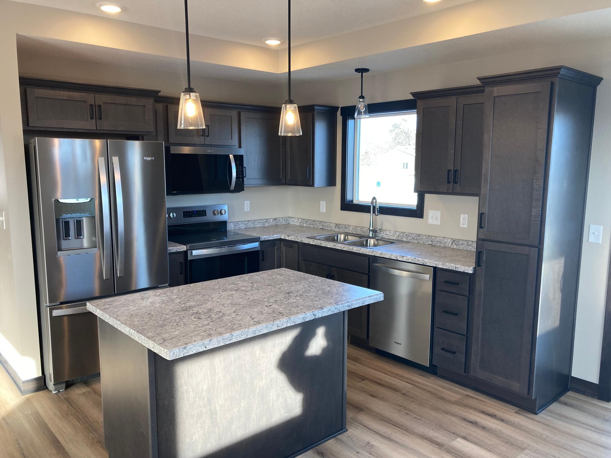 Welcome to this new construction, 4-bedroom, 2-bathroom home offering comfort, style, and functionality. The open-concept living area features a tray ceiling & an abundance of natural light. Perfect for relaxing or entertaining guests. The kitchen boasts modern stainless steel appliances, ample cabinet space, and a convenient dining area. The primary bedroom offers direct access to the main floor bath as well as a large walk-in closet. The other 3 bedrooms provide generous closet space and cozy comfort. The 2-stall garage offers plenty of room for vehicles, storage, or a workshop area. Outside, enjoy a spacious yard ideal for outdoor gatherings, gardening, or simply unwinding after a long day. The large backyard is bordered by an alley & offers easy access to a future detached garage or camper parking pad. Conveniently located just 2 blocks from the K-W schools, this home comes equipped with high efficiency furnace, passive radon system, & builder warranties.