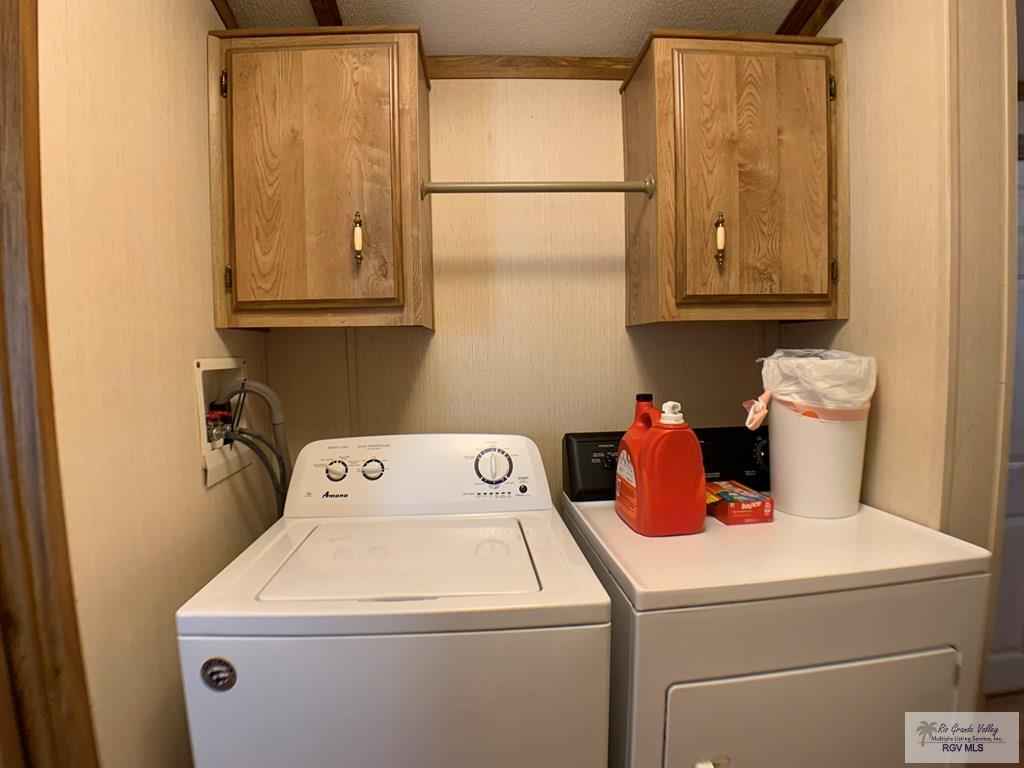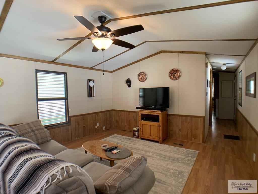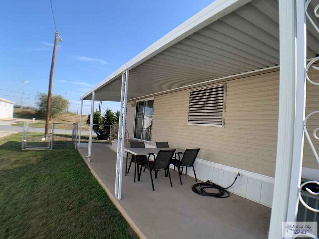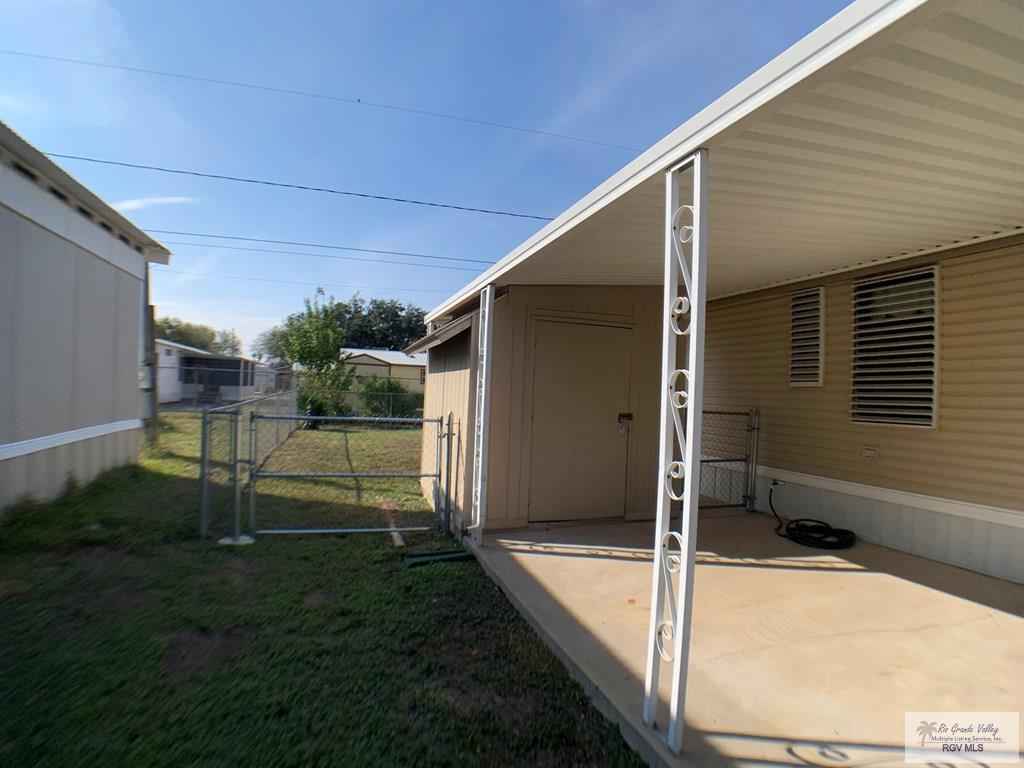 Welcome to 709 E Palmera Drive in La Feria, Texas, located in the desirable 55+ Palmera Heights community. This well-maintained 1986 mobile home offers 2 bedrooms and 1.5 baths and is fully furnished and move-in ready. The open-concept layout features a spacious kitchen and comfortable living area. All appliances are included, including washer and dryer, refrigerator, microwave, stove, and electric range. Enjoy your mornings on the covered patio and deck, and appreciate the peace of mind that comes with hurricane shutters. The fully fenced yard is perfect for pets, and the 812 workshop/storage shed with power adds extra convenience. Comfortable, easy living in a quiet, well-kept communitythis one is ready to enjoy from day one.