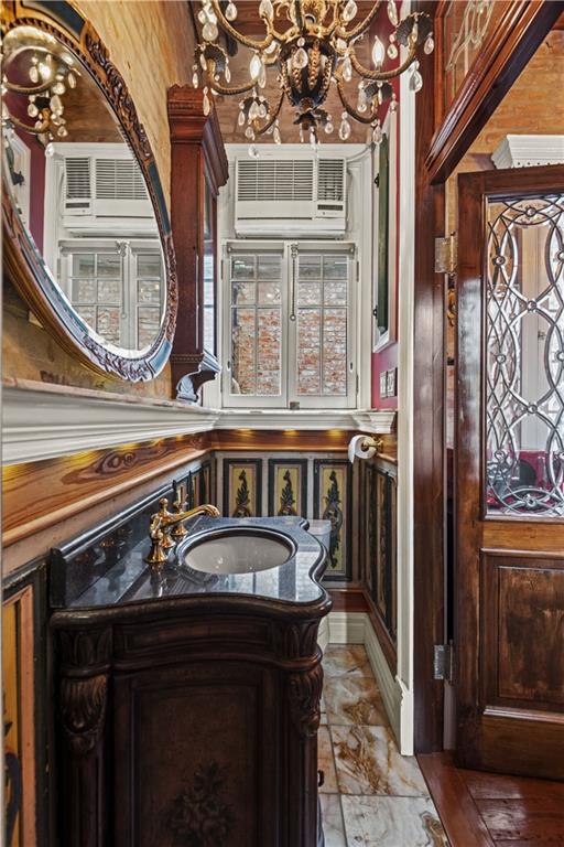 If Paris and New Orleans ever agreed to share custody of a living space, it would look like this: a tiny, elegant pied--terre on Royal Street in an 1831 townhousesmall in size, profound in allure, a diamond that decided it didnt need extra carats to shine brightly.The main floor is about 100 square feet including the bathexposed brick, antique French settees, cypress flooring, and ceilings that soar to roughly fourteen feet with beams that feel original. A crystal chandelier catches the light. A towering gilt mirror throws it back. Beveled glass and old-world woodwork make the entry feel like a scene change.The main-floor window offers French Quarter rooftops and the downtown skyline. The spiral stairblack iron with fleur-de-lis cutouts, brass rail curling like a braceletleads to the 80-square-foot loft where the bed tucks beneath the roofline and a small window overlooks one of Pat OBriens courtyards.And there is no kitchen, because the French Quarter is your kitchen: oysters when you feel poetic, coffee when you need mercy, a late-night bite when the music outside refuses to end. You dont cook here. You live herequiet as a writers retreat, romantic as a secret, and perfectly placed in a neighborhood where Faulkner, Capote, and Tennessee Williams all lived and wrote within a block.