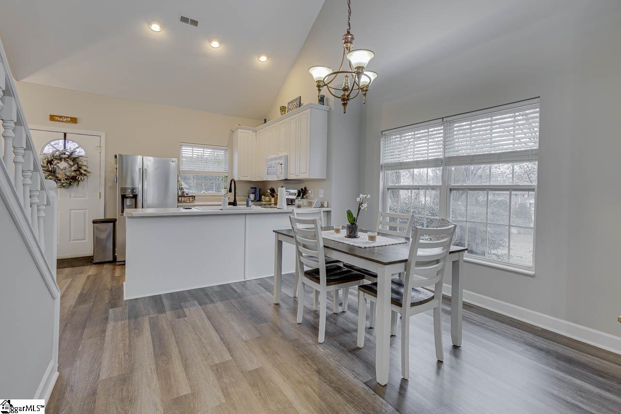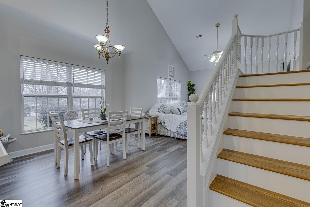 Welcome home to 72 Ridgestone Circle near the new Pickle Yard in Mauldin! This charming 3-bedroom, 2.5-bathroom traditional townhome in Mauldins Summer Stone Townes offers approximately 1,344 square feet of thoughtfully designed living space, including a coveted primary suite on the main level, soaring main level ceilings, and loads of natural light. The open floor plan is highlighted by a spacious kitchen, tall ceilings, luxury vinyl plank flooring, and a cozy dining area perfect for entertaining. The bright kitchen features white cabinetry and updated appliances, while the living area provides a peaceful retreat with easy access to a private patio surrounded by a privacy fence. Situated directly across from the community pool, this home is located in a gated neighborhood where low monthly HOA fees cover lawn maintenance and trash. Upstairs, you'll find two additional spacious bedrooms, providing plenty of room for guests or a home office in a move-in-ready space that perfectly balances comfort and convenience. Schedule your showing today and see all the value this beautiful home has to offer!