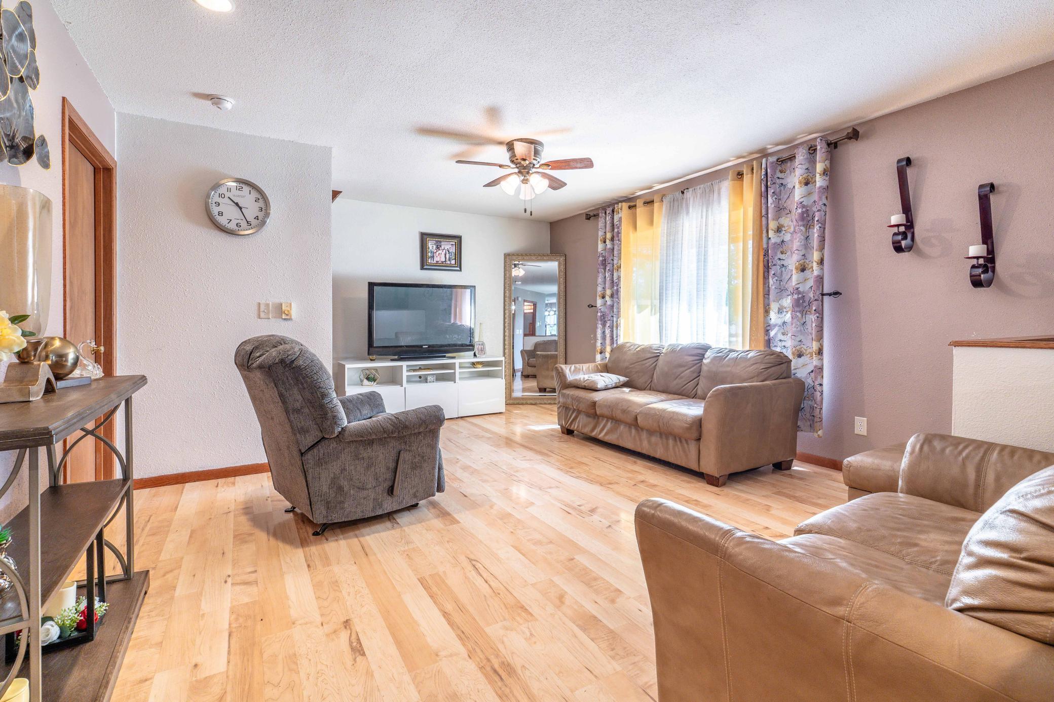 Welcome to this beautifully maintained 4-bedroom, 2-bath home nestled on a large corner lot in the highly sought-after Westwind neighborhood. This inviting one-story residence features an open and functional layout with hardwood flooring throughout the main level, offering warmth and character from the moment you step inside. The main floor offers 2 bedrooms, a full bath, a formal dining room, and an ample kitchen that is equipped with newer appliances, a gas range, perfect for everyday cooking and entertaining. MAINFLOOR LAUNDRY HOOKUPS AVAILABLE. The finished lower level boasts 2 additional bedrooms and a full bath. With the size of one of the lower-level bedrooms (24x12) it could double as a family room, home office, or guest suite. Enjoy year-round comfort with central air conditioning and a newer furnace. Exterior highlights include durable vinyl siding, an attached 2-stall garage, and plenty of yard space for outdoor enjoyment or future expansion. Don't miss your opportunity to live in a quiet, established neighborhood close to parks, golf course, walking paths, and local amenities. Move-in ready and waiting for you!