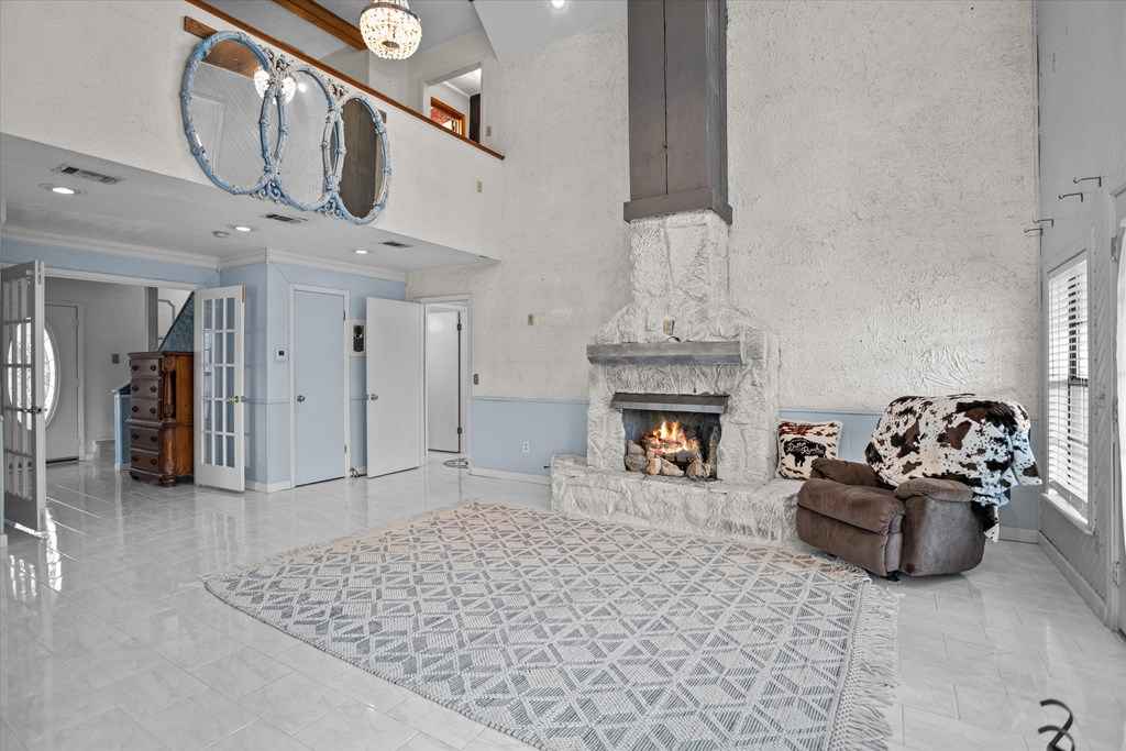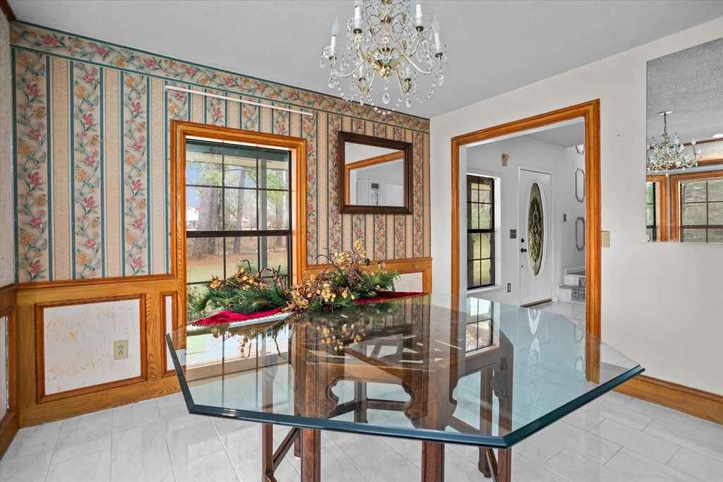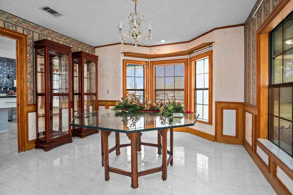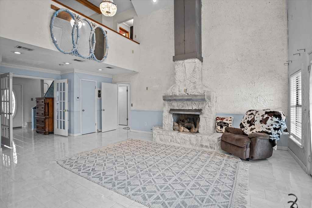 720 Morris St., Diboll, TX Victorian Charm on 2.45 Acres - Experience the charm of this beautifully maintained ranch-style Victorian home offering 4 bedrooms, 2 bathrooms, and inviting living spaces throughout. A welcoming tiled foyer leads into the spacious living room featuring vaulted ceilings and a striking stone gas fireplace. The large island kitchen opens to both a breakfast area and formal dining room, perfect for everyday living and entertaining. A generous utility room just off the kitchen doubles as a convenient mudroom with exterior access. The main-floor primary suite provides comfort and convenience, while upstairs features a large sitting or entertainment area, three additional bedrooms, and a full bath. Enjoy the outdoors from the wrap-around covered porch, including a screened section ideal for relaxing. Additional Features: 2.45 acres, 3-bay detached garage with apartment (previously rented for $300/month). A unique property offering charm, space, and versatility.