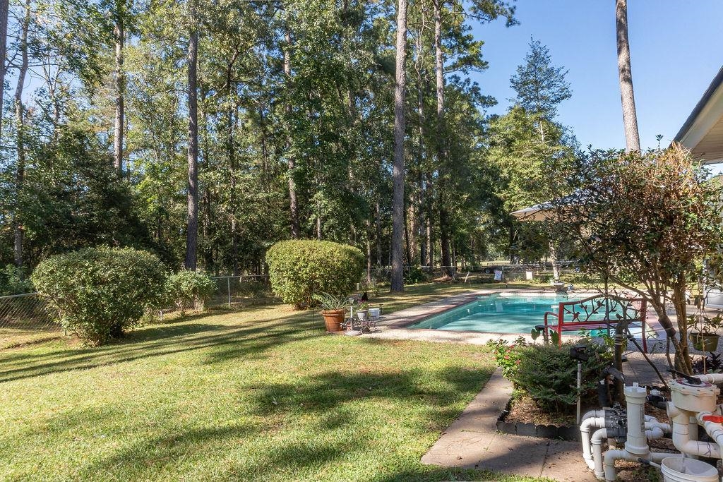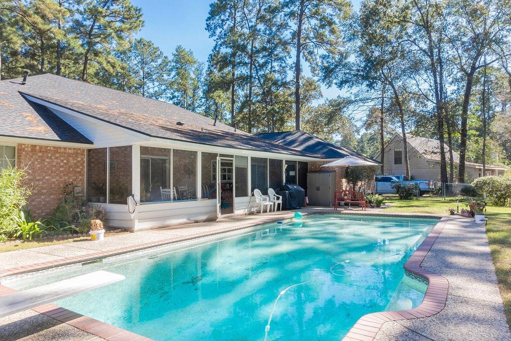 In beautiful Wildwood, this spacious home is a true spread ready to be enjoyed! On almost a half-acre, this amazing home has it all. Enjoy the lake, the playground, tennis, and many clubs' wildwood have to offer. On the 2nd teebox this home boasts a beautiful pool, magnificent grounds, and extra parking. This wooded lot has plenty of shade with the Patio, it allows for enjoying the outdoors while being screened in watching the wildlife. The spacious home is 4 bedrooms, and plenty of extra space. Gameroom for entertaining or the grandkids. 2 and a half bathrooms, large utility room, and lots of extras. This beautiful home is ready to be yours.