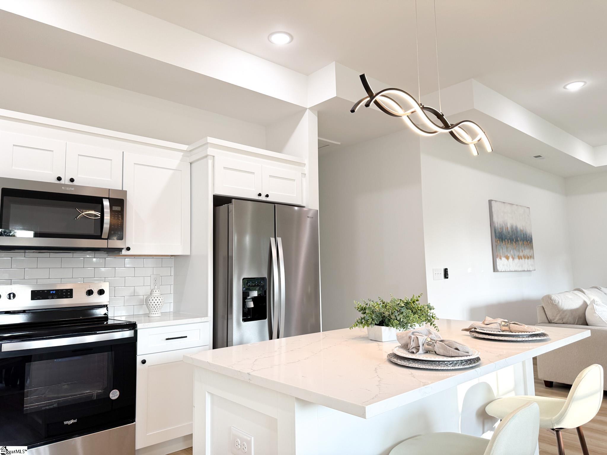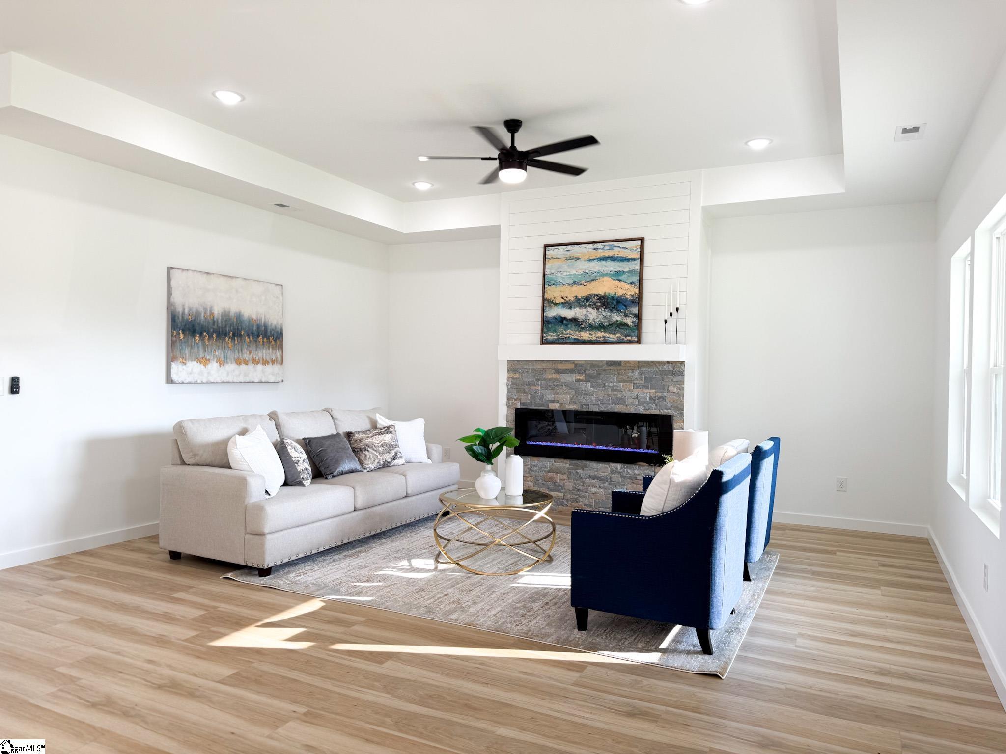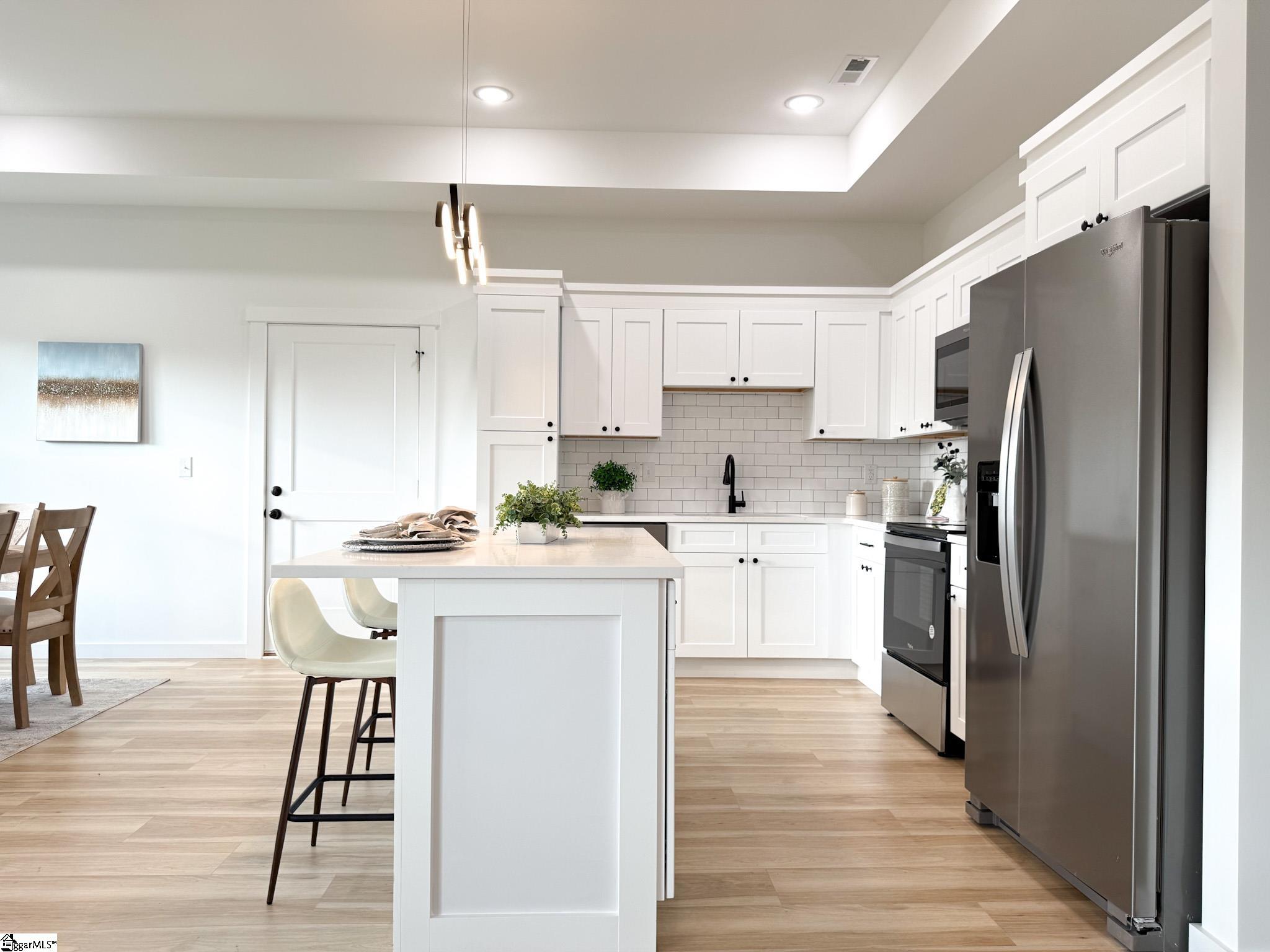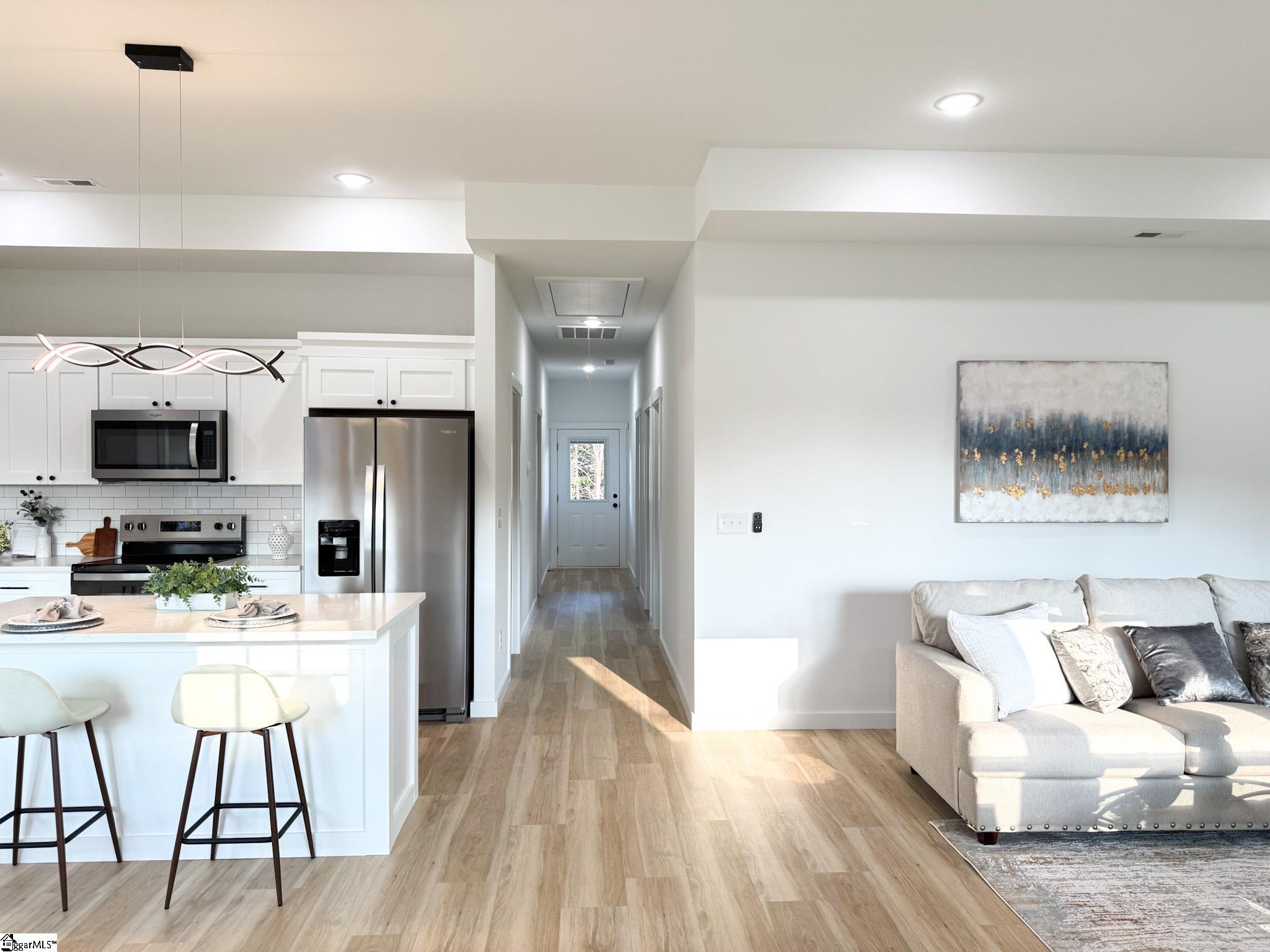 Welcome to this stunning new-construction home featuring high-end finishes and thoughtful design throughout. Enjoy 9-foot ceilings in every bedroom and a dramatic 10-foot ceiling in the primary suite and open-concept living area, creating a bright and spacious atmosphere. Primary features walk in closet. This home showcases quartz countertops, luxury vinyl flooring , and modern ceiling fans in every room. And yes even the refrigerator is included in your fully equipped kitchen! With ample cabinetry and sleek quartz surfaces, youll enjoy the perfect blend of style and functionality. Relax on the covered patioperfect for morning coffee or evening unwinding. Experience comfort, convenience, and contemporary style all in one exceptional home. Agent related to seller. Available for USDA loan. No HOA!