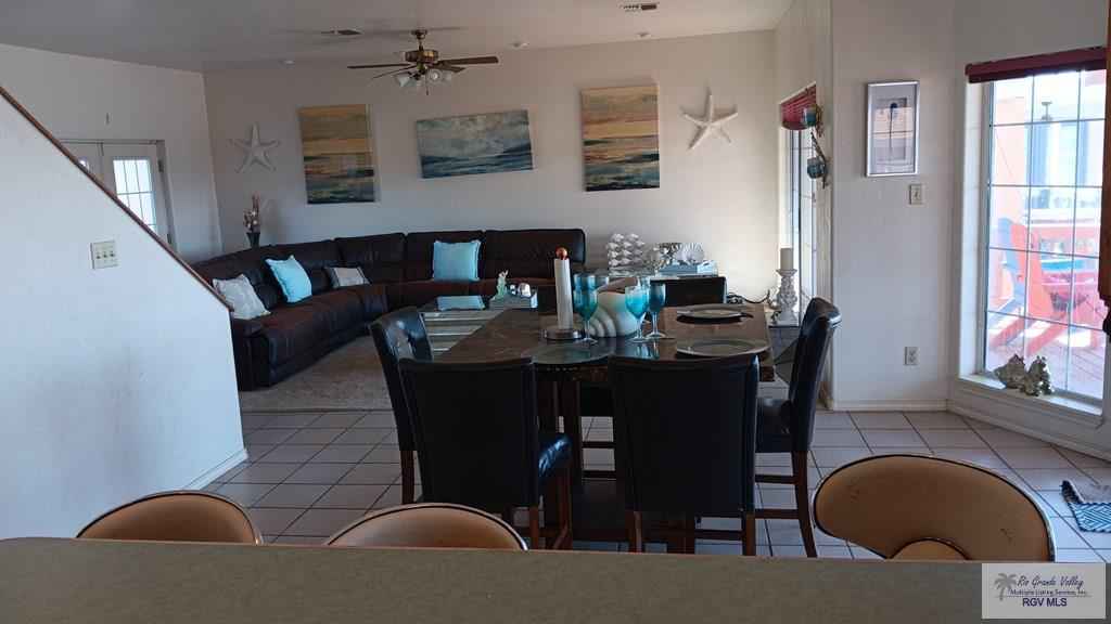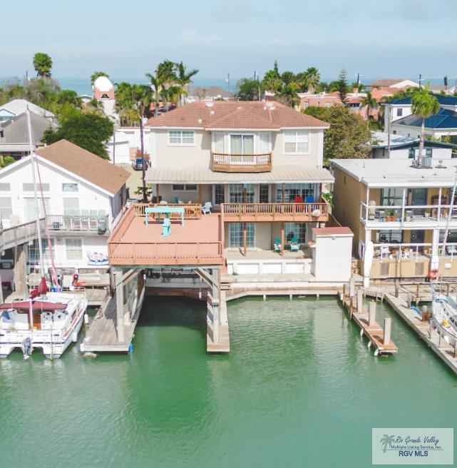 This spacious waterfront home is perfect for a large reunion with four bedrooms and 4 bathrooms spread out over three floors. Two boats slips (one covered) and a large deck complement this property well suited for summer fishing trips or a picnic on the deck.