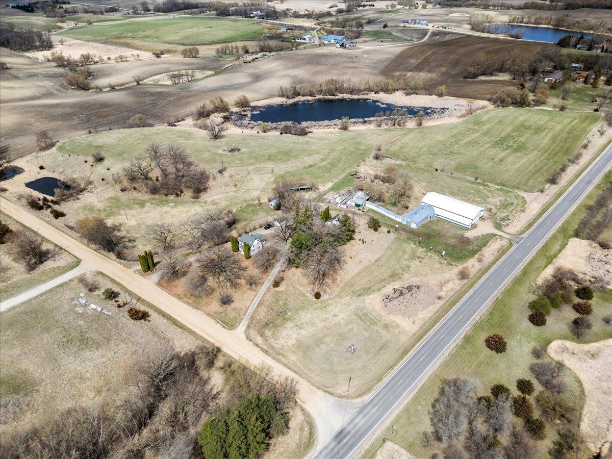 Over 26 acres with development potential. Value is in the land and outbuildings; house is a tear-down. Currently the property has 2 building entitlements. With R-2 rezoning, potential of 7-8 lots pending approval from Meeker County. Outbuildings include 105x50 pole barn with 8x70 enclosed side wing, 16' sidewalls & 14' door, 74x34 barn and 8x104 walkway. Horses welcome! Partial fencing in pasture. Mature trees & pond.