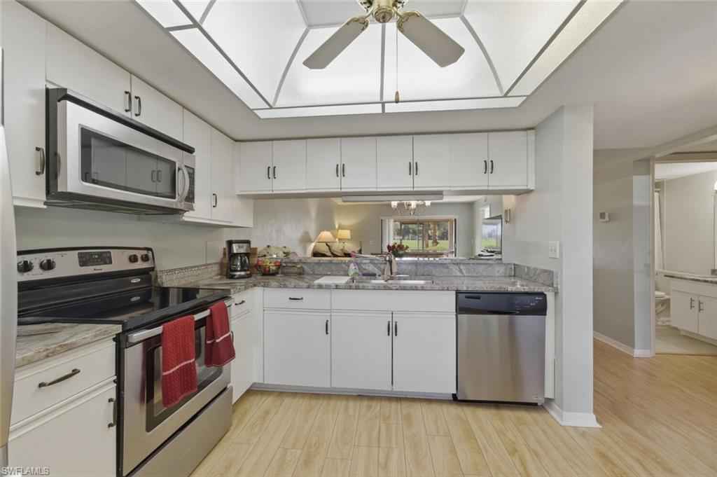 This charming 2 bedroom and 2 full bath home can be yours at the newly renovated Countryside Golf and Country Club in Naples. Featuring maintenance free tile and laminate flooring throughout, this home is located on the first floor and has a wonderful view of the 11th hole from the back screened in lanai. Being sold totally furnished, this home also has updated bathrooms and lighting, and eat in kitchen, a living room/dining room layout and newer hvac system. This home is a social unit which means that while you can still play golf, you will not have full golf membership rights and you would have to pay greens fees along with the cart fee. Located in the Country Haven section of Countryside, there is something for everyone with this home. Water aerobics, bocce, gin rummy, canasta, mahjong, tennis, golf, karaoke, Name that Tune, weekly dances, Friday night pool parties, Bingo, outdoor concerts, field trips and so much more. Add to this your close proximity to major highways, shopping, banking, downtown Naples and the beautiful Gulf of Mexico, it really doesn't get any better than this!!