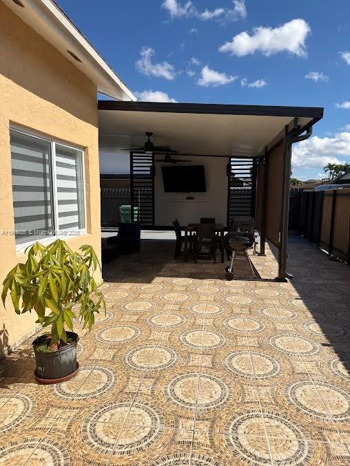 Beautifully maintained corner-lot single-family home, fully detached and separated from the neighboring property by a private side corridor spacious enough to park a small boat or up to three cars. Features a fenced yard, manicured patio-garden, and ample parking. Recent upgrades include new porcelain flooring, impact windows, a new A/C unit (less than 1 year old), and a modern gourmet kitchen. The home offers a large living room with an adjacent dining area, a versatile den/flex room that can be used as a home office or guest bedroom, and a 3-bedroom, 2-bathroom split floor plan. Enjoy a beautiful terrace with an entertainment-ready BBQ area. Excellent neighborhood with A+ schools, less than 1 mile from FIU, Frost Museum, and MDC Fair & Expo. No HOA.