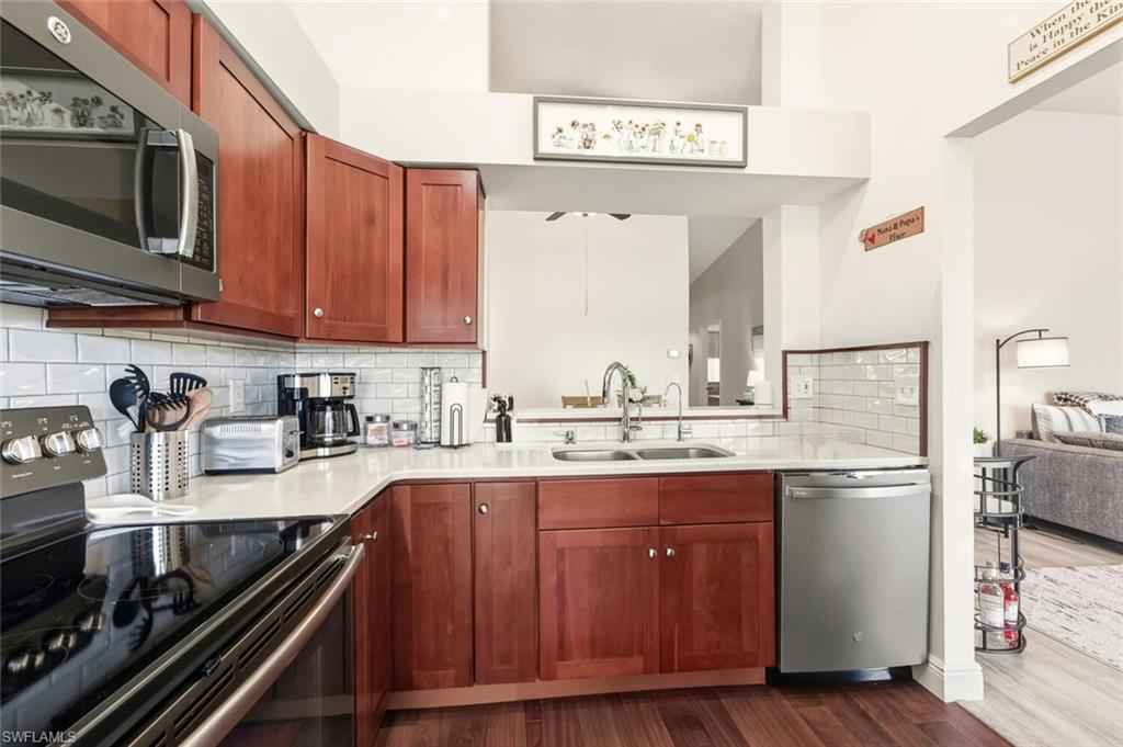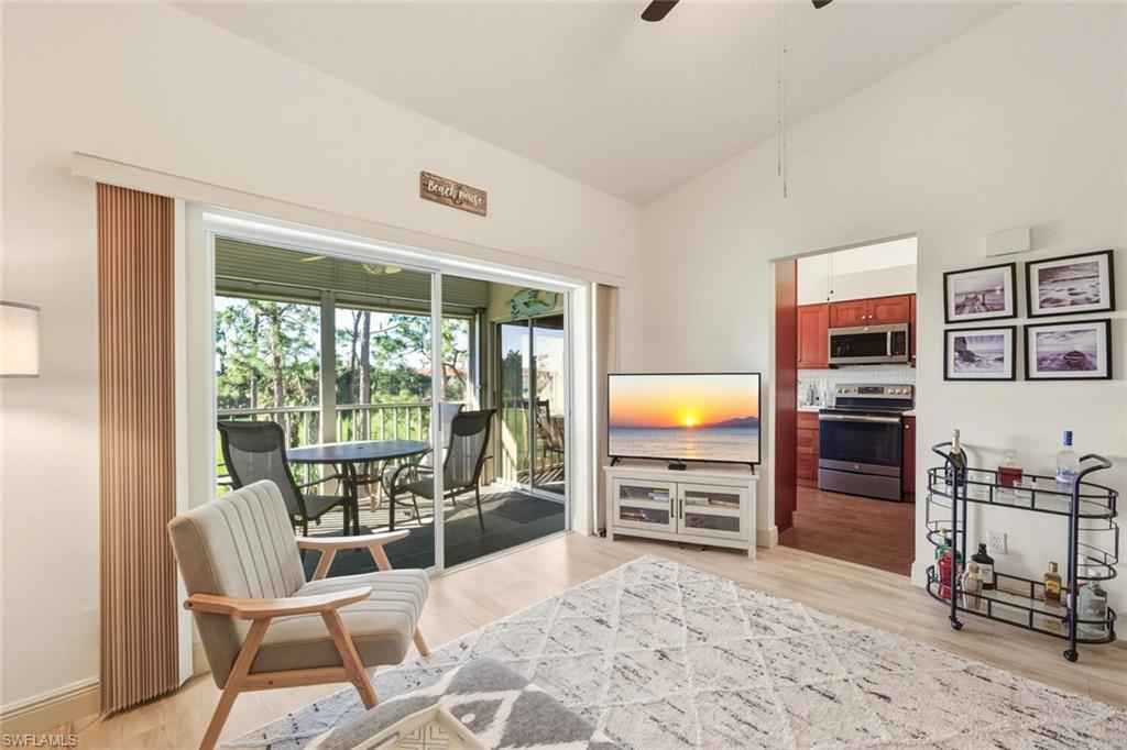 Here it is , here is the one you've been searching for a social membership two bed two bath condo in a resort community with full access to fantastic and newly renovated amenities ! You have to see this third floor condo completely renovated with and in immaculate pristine condition with a view that will win you over ! Completely renovated kitchen with upgraded cabinets and upgraded appliances . Contemporary renovated bathrooms. Laminate flooring. You will love the vaulted ceilings. If you are seeking all the benefits of a Naples golf community lifestyle with all the amenities in a gated community that offers a social membership only then this is the condo you must see this tastefully decorated condo , The assessment is paid in full. Brand new resort style pool with bar area and food, brand newly renovated clubhouse with indoor and outdoor dining, fitness center with classes, tennis complex, pickleball and bocce ball. Isn't it your time to enjoy the lifestyle you've dreamed of in one of Naples friendliest lifestyle communities ? All this and so close to downtown Naples, Fifth Avenue and the beautiful Naples beaches . This is...the one !