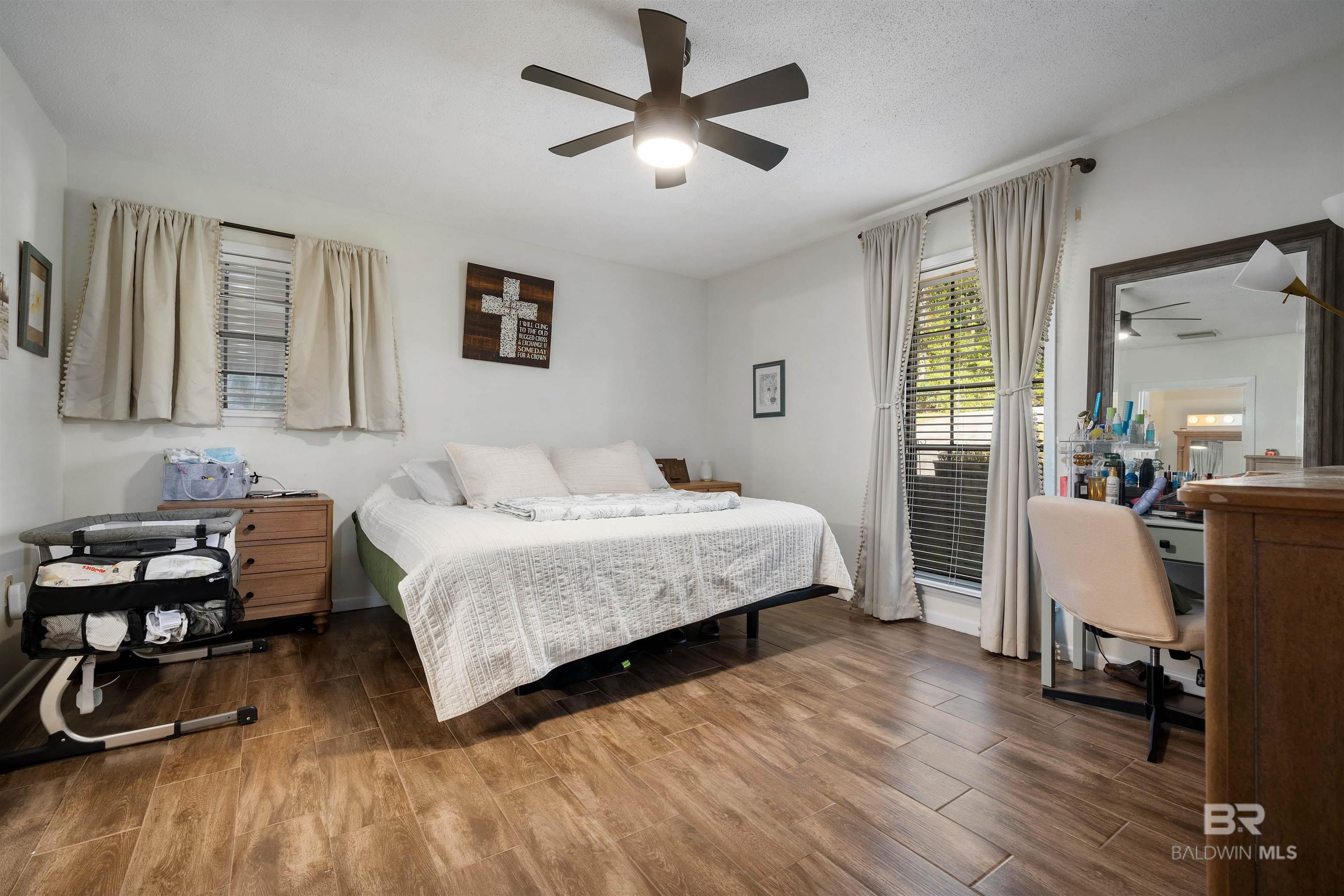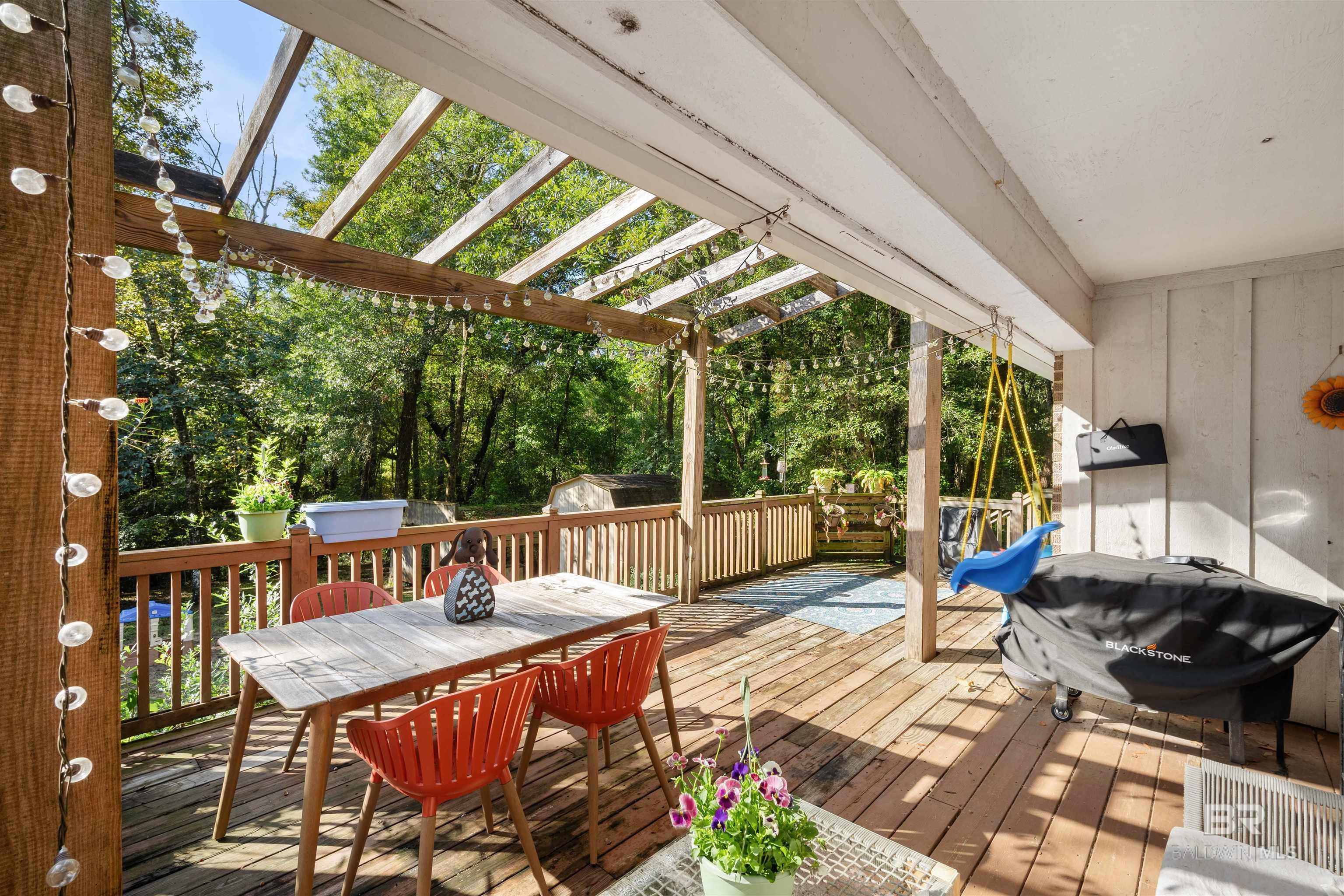 This charming 3-bedroom, 2-bath brick home offers comfort, functionality, and plenty of space to enjoy. Step inside the living room featuring wood-plank style tile flooring and a cozy wood-burning fireplace. The updated kitchen includes stainless steel appliances and easy access through the double carport. The split-bedroom floor plan provides added privacy with the primary suite set apart from the additional two bedrooms and full bath. Storage is abundant with a utility room, a carport storage area, and a powered workshop complete with electricity and its own A/C unit. Out back, the large fully fenced yard backs up to a wooded lot for extra privacy. A spacious deck creates the perfect setting to relax, entertain, or unwind in a peaceful atmosphere. Conveniently located near I-10 and with no HOA, this home combines charm, convenience, and value. Don't miss the opportunity to make it yours! Buyer to verify all information during due diligence.