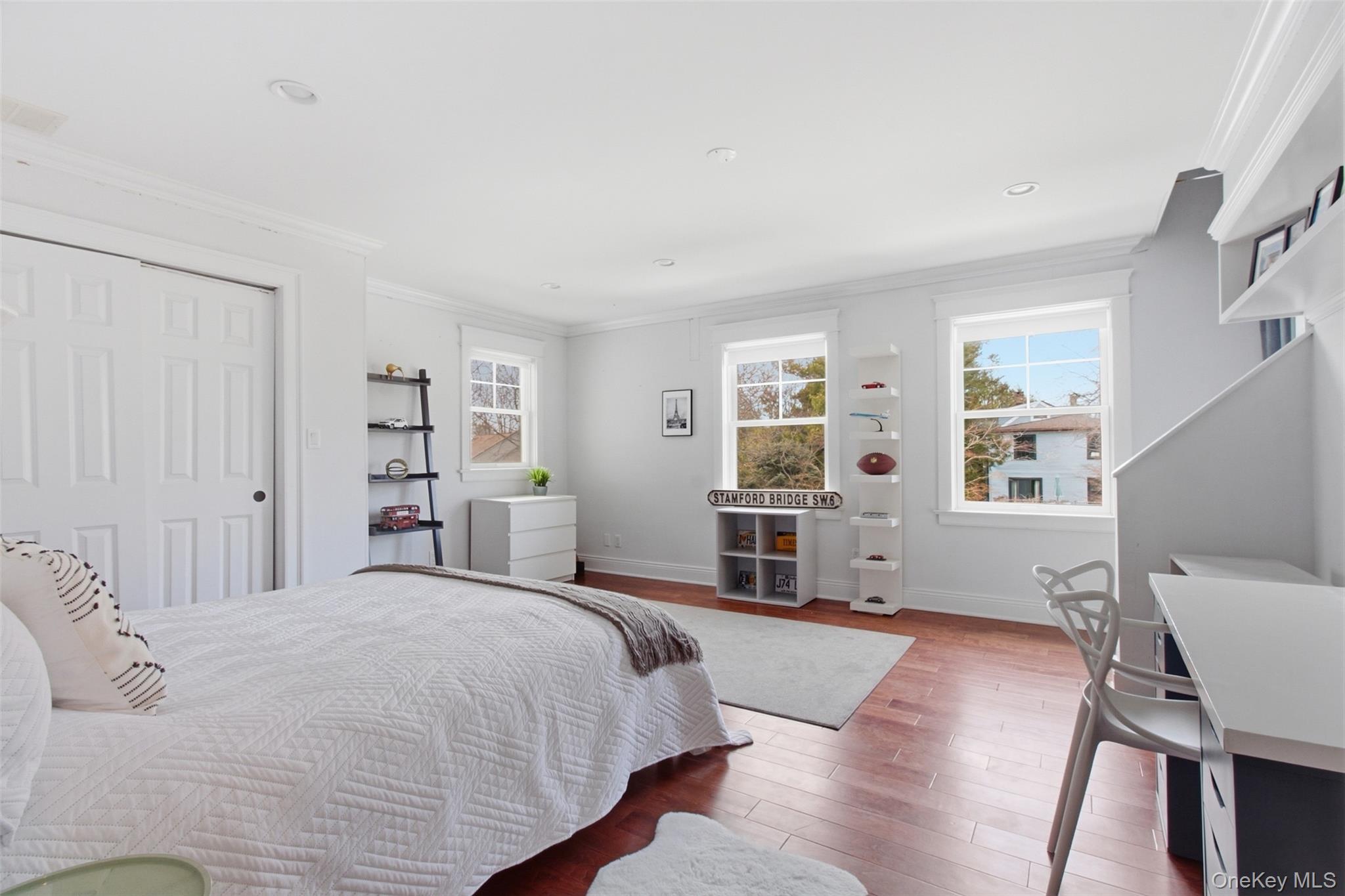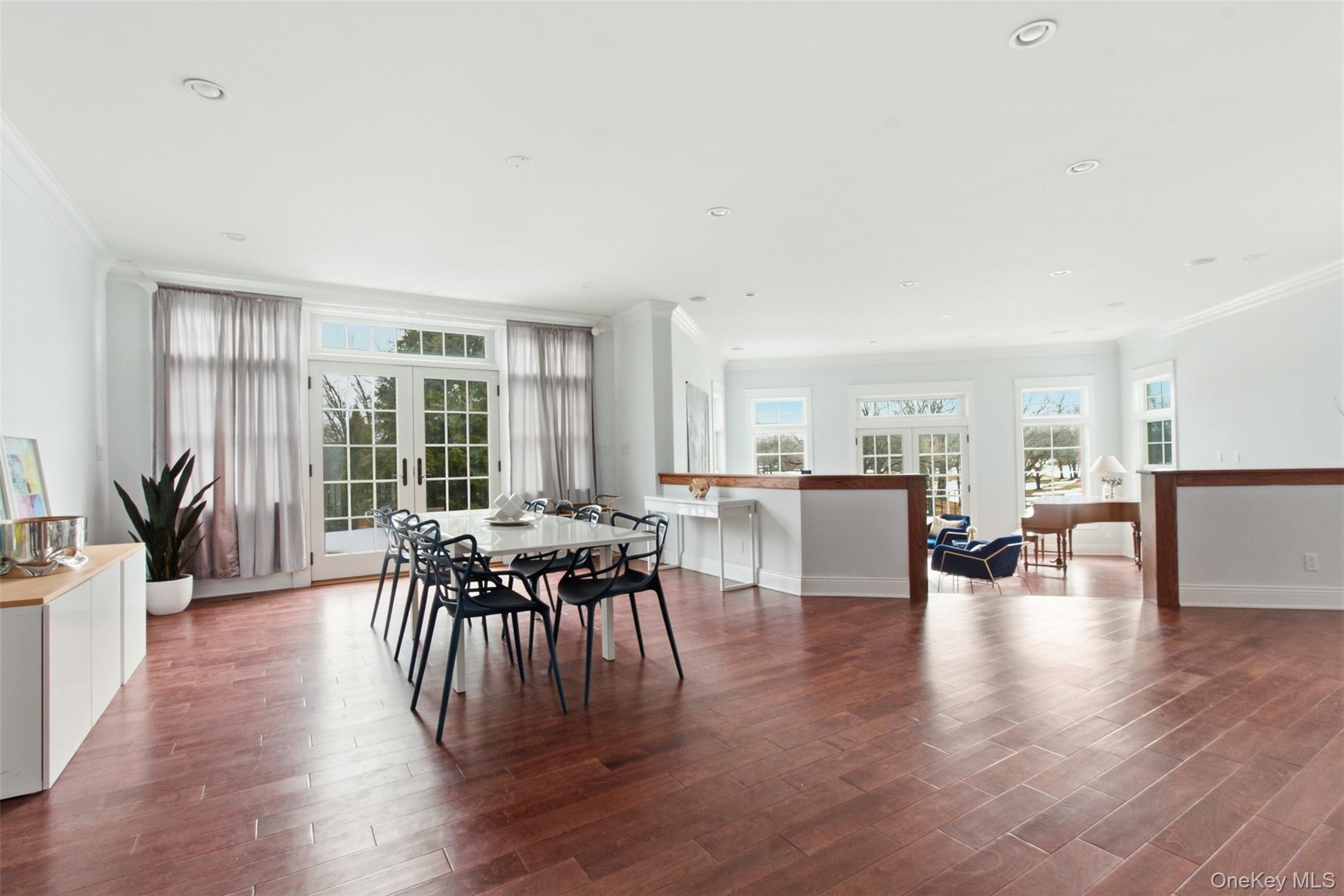 With sweeping views of Hampshire Golf Course and spectacular sunsets, this exceptional home offers the perfect blend of privacy and convenience just minutes from schools, local shopping and dining, scenic parks, tennis, beaches, and boating. Built in 2011 by a renowned local craftsman, the residence is filled with natural light and designed for modern, energy-efficient living, featuring 16 zones of radiant heat. A thoughtfully designed open floor plan seamlessly connects the chef's kitchen, appointed with state-of-the-art appliances, Caesarstone countertops, and a center island, to the dining and living areas, creating a bright and airy atmosphere ideal for everyday living. The sun-drenched sunken living room and large dining area create the perfect space for relaxation and entertainment. Patio doors lead to a private stone terrace with golf course views. The first floor also includes a guest bedroom with a full bath, as well as an additional powder room. Upstairs, the luxurious primary suite features a spa-inspired bath with soaking tub, rain shower, two walk-in closets, and a private balcony. Four additional spacious bedrooms (one with an en-suite bath), plus a hall bath and a convenient second-floor laundry room, complete this level. A third floor offers expansive walk-up storage. Additional highlights include an attached two-car garage and an installed electric vehicle charger. Large unfinished basement for storage.