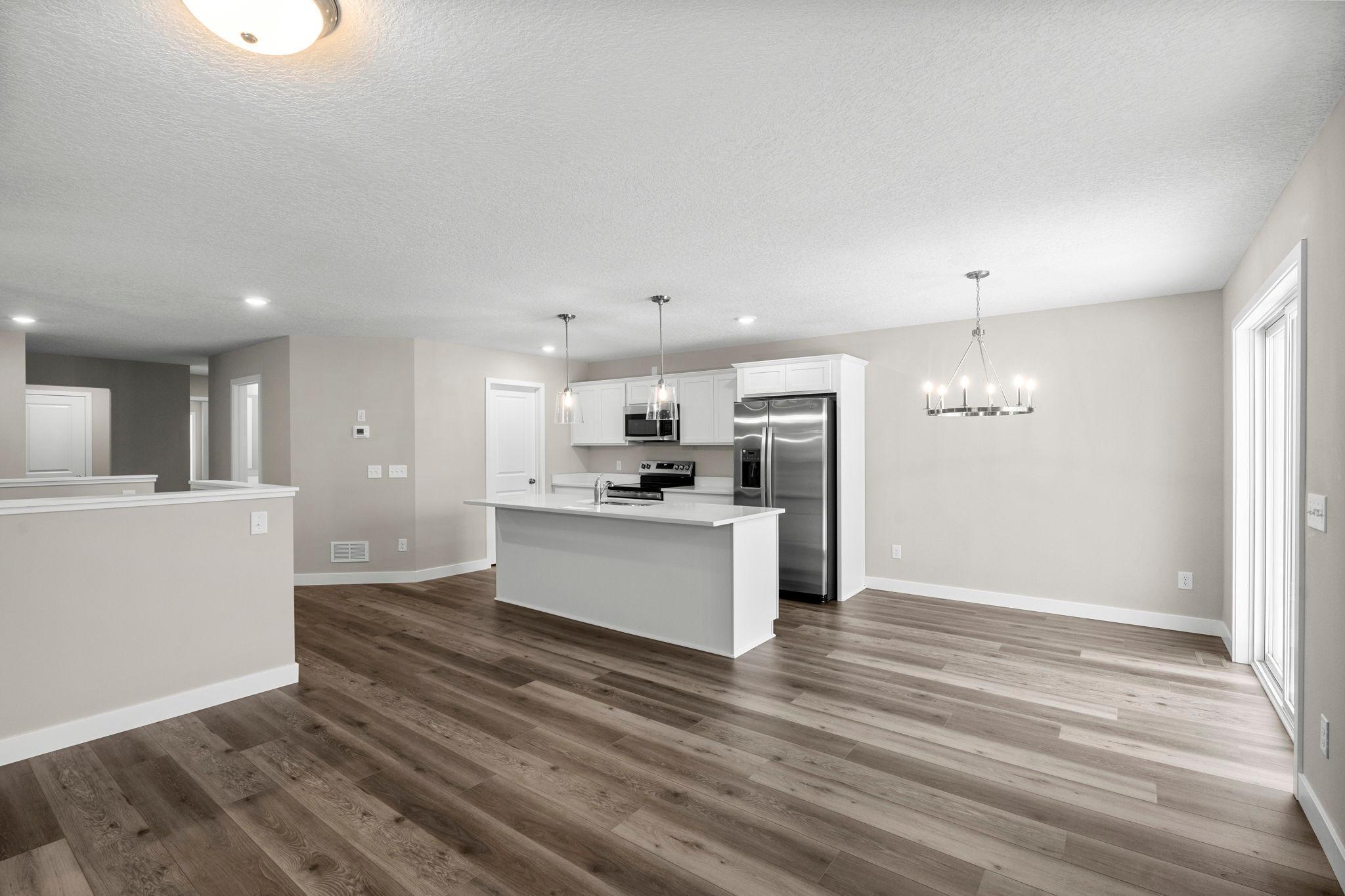 Step into the "Eden Rambler," a harmonious blend of sophistication and comfort with its open floor & maximizing natural light. The main level boasts a spacious kitchen with an enormous pantry, 2 bedrooms, 2 baths, & a convenient main-floor laundry. Descend to the walkout finished lower level for a family room, an additional 2 more bedroom, 3/4 bath and ample storage. This is the final home being built in Eden Ridge, don't miss out make it yours today.