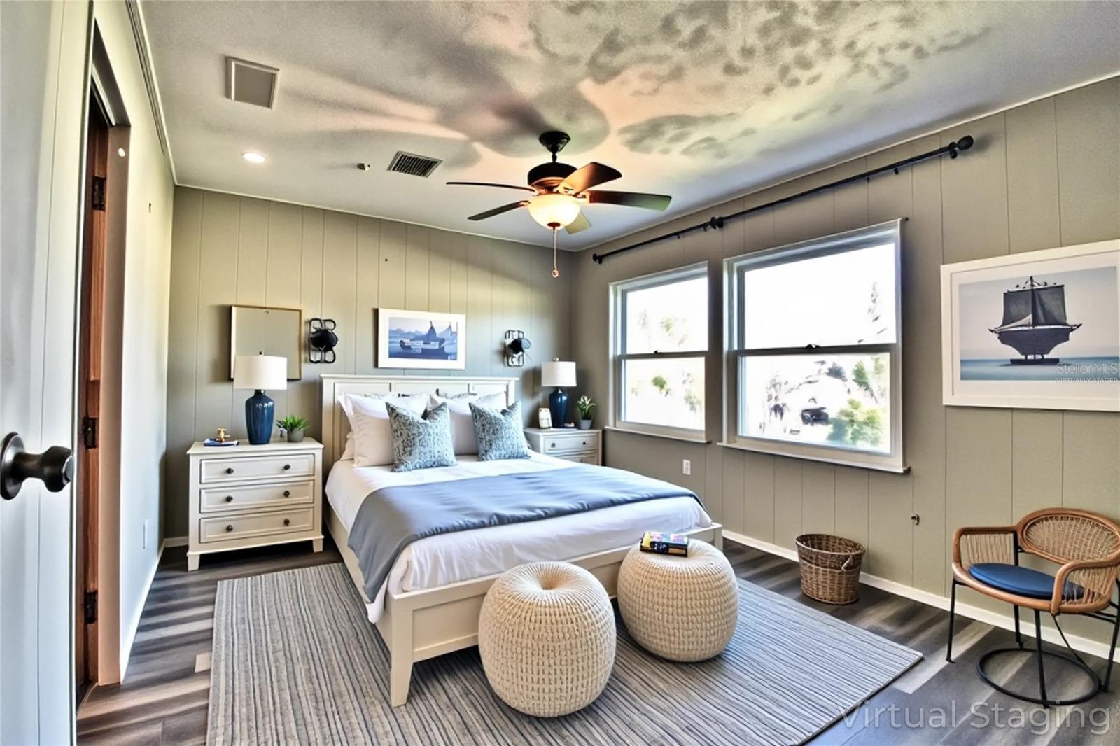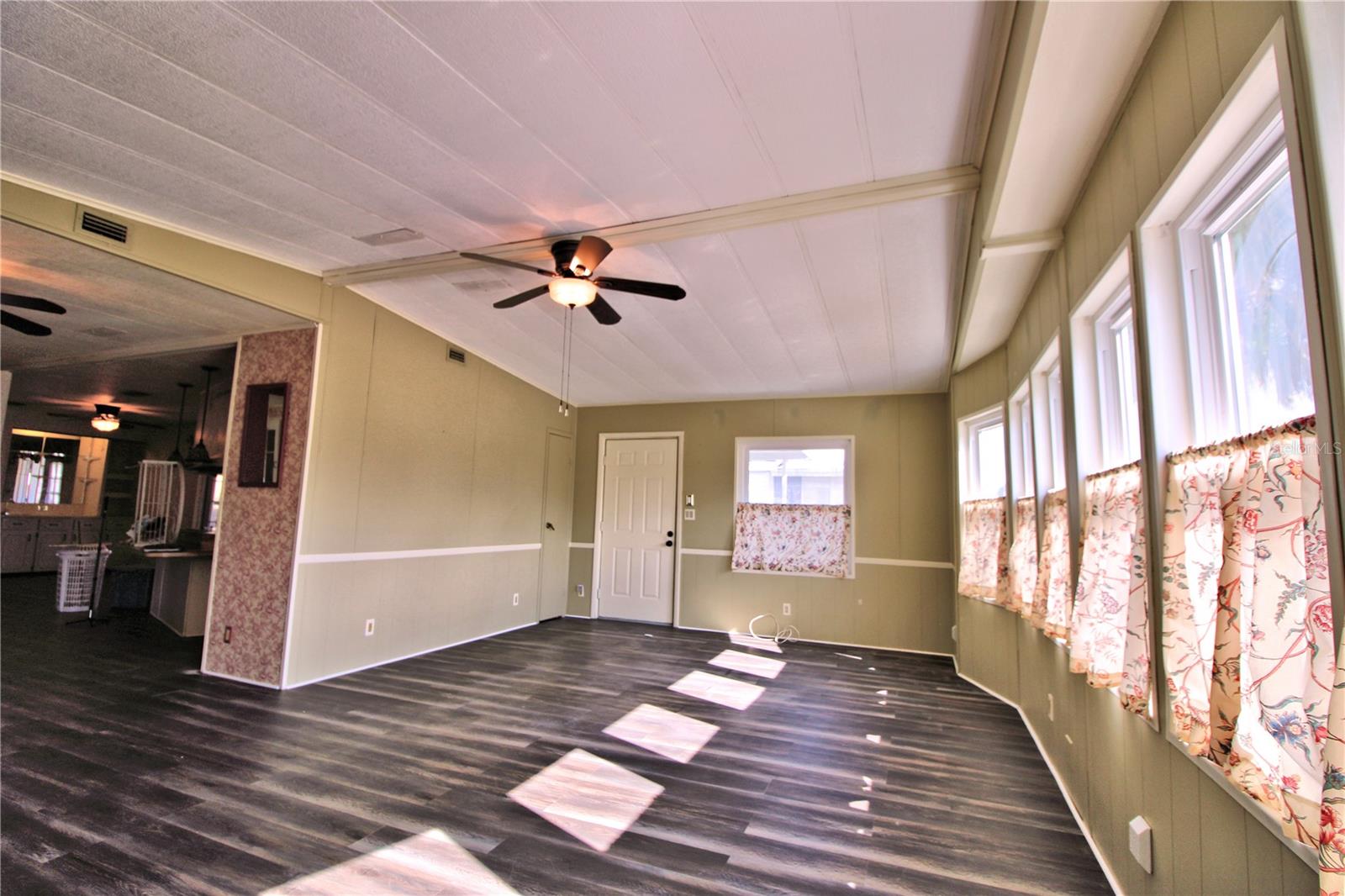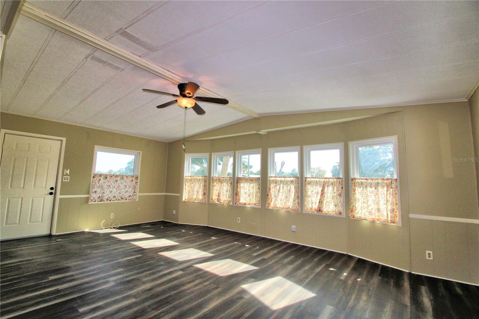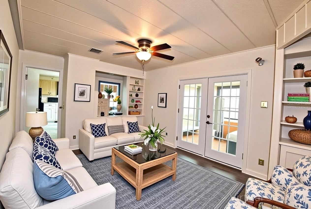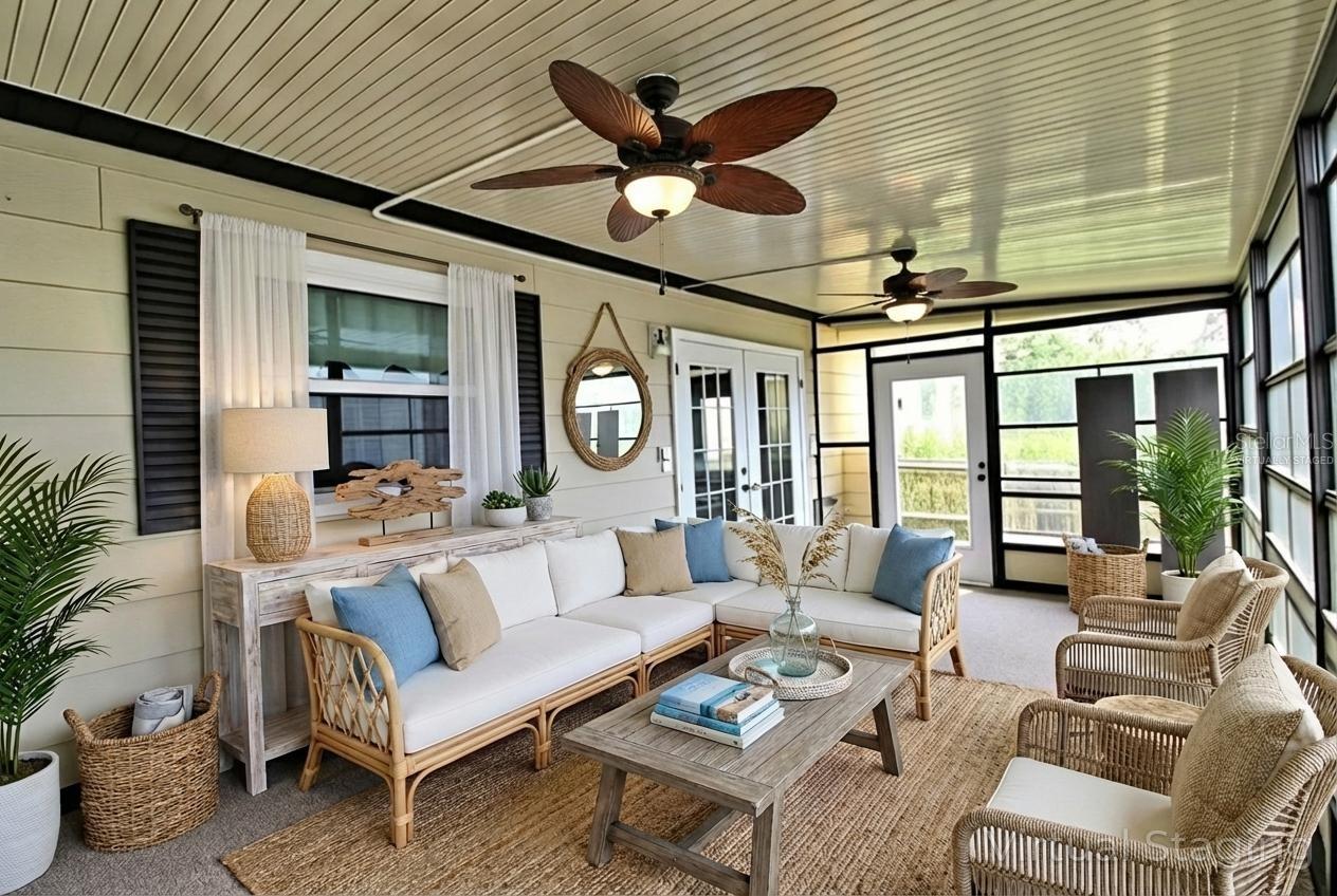One or more photo(s) has been virtually staged. Well-maintained 2-bedroom and 2-bathroom double-wide in Laurelwood Mobile Estates, a quiet 55+ community in Port Orange. Spacious 1,392 SF living area on a landscaped lot with private irrigation well/pump. Upgrades include 2023 HVAC, 2017 roof, and 2014 windows. Interior features vinyl flooring, ceiling fans, kitchen island, pantry, wet bar, and inside laundry. Primary suite includes walk-in closet and en-suite bathroom. Exterior highlights include screened patio, carport, and extra storage. No rentals allowed (except grandfathered owners). Optional HOA ($25/year) supports signage and lighting, and administrative costs. Located near Port Orange PD and Water Treatment Plant - helps prevent power outages during storms. Close to shopping, dining, and medical.