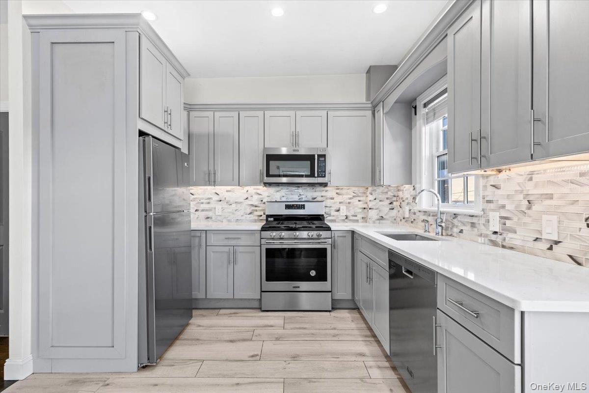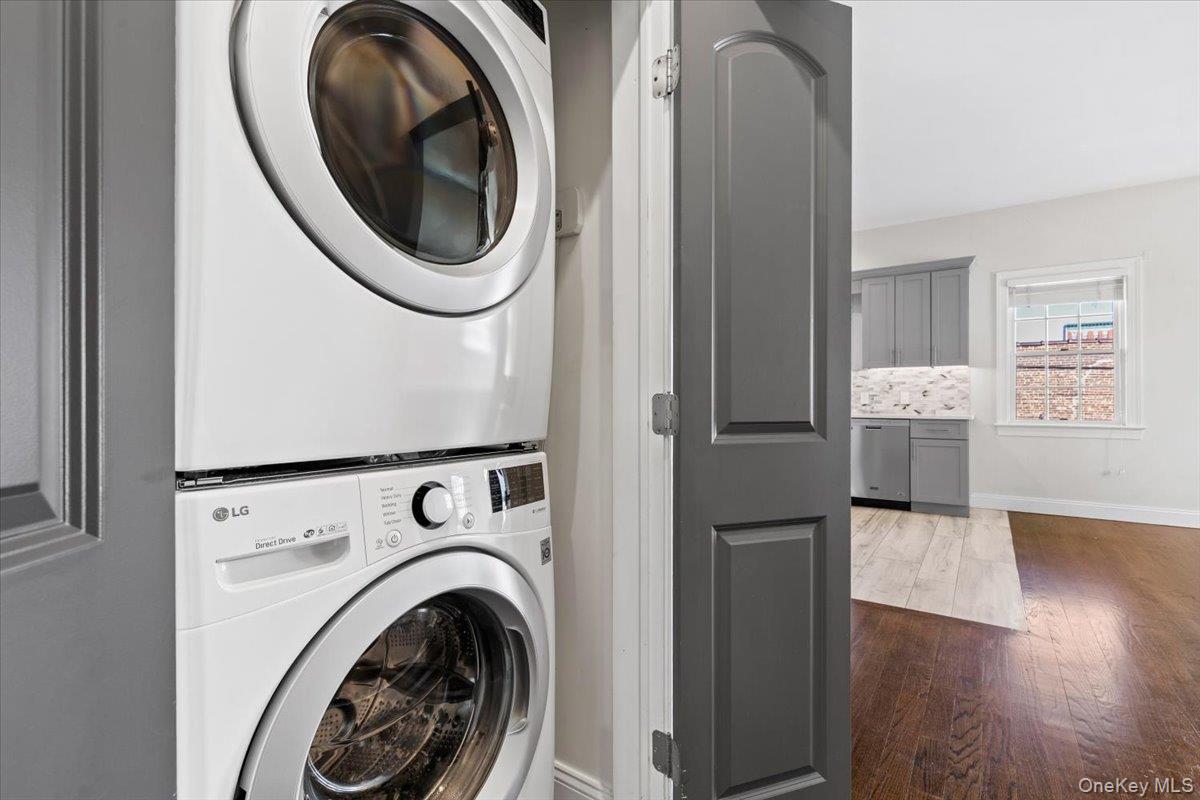 Welcome to a gem in the Heart of Morris Park. This fabulous renovated open-concept apartment blends modern luxury with functional living. The kitchen features stainless steel appliances, quartz-like counters and beautiful kitchen cabinetry. A True 2-bedroom + den perfect for home office, nursery, guests, or studio. Rare 1.5 bathrooms and stackable washer/dryer. Modern windows, recessed lighting and beautiful hardwood floors throughout. The prime location has access to public transportation, local highways, shops, hospitals, parks, schools. Enjoy the benefits of this "commuter-friendly" neighborhood in the Bronx.