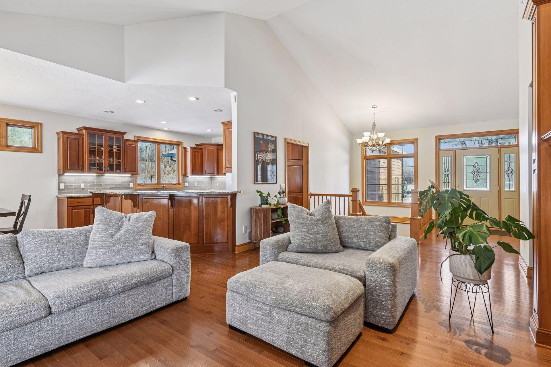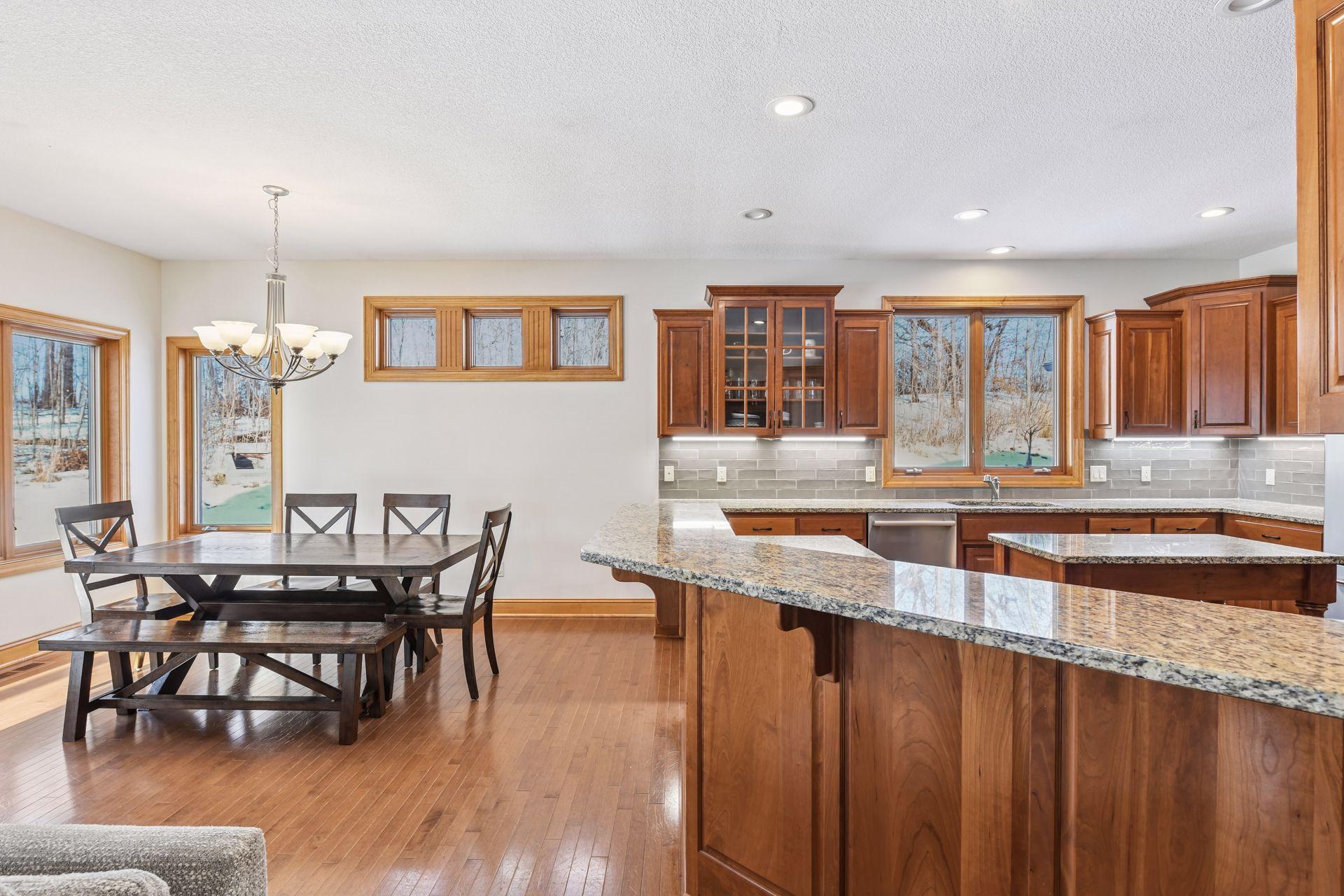 Beautiful 5-bedroom, 3-bathroom house on 4.2 private acres! Located at the end of a cul-de-sac, this former model home features countless high-end finishes. The main level features 3 bedrooms, including a private primary ensuite. Vaulted ceilings enhance the open-concept design, while the spacious living room centers around a gas fireplace with quality built-ins. An open dining area flows seamlessly into a sunroom that overlooks the backyard and heated pool, creating a bright and relaxing space to enjoy the natural surroundings.The kitchen is thoughtfully appointed with granite countertops, stainless steel appliances, under-cabinet lighting, and modern tile backsplash. The walkout lower level expands the living space with two additional bedrooms, a large family room with a second gas fireplace, a convenient wet bar, and a dedicated exercise room or flexible bonus space.Outside, the professionally landscaped grounds showcase a stunning wooded setting that provides exceptional privacy. The heated in-ground pool adds a resort-like touch, while the oversized heated three-car attached garage and an additional heated detached two-car garage offer abundant space for vehicles, storage, or a workshop. This property combines upscale finishes, generous indoor and outdoor living areas, and a rare sense of seclusion in a truly desirable setting. Recent updates include a new furnace (2026), well pump (2025), water softener (2025), whole house water filter (2025), dishwasher (2025), water heater (2024), and roof (2021)!