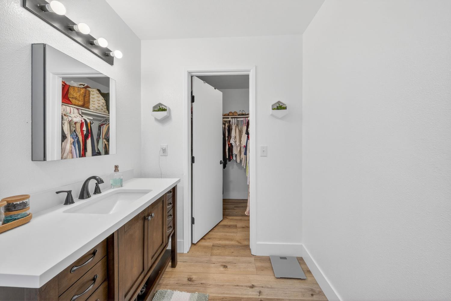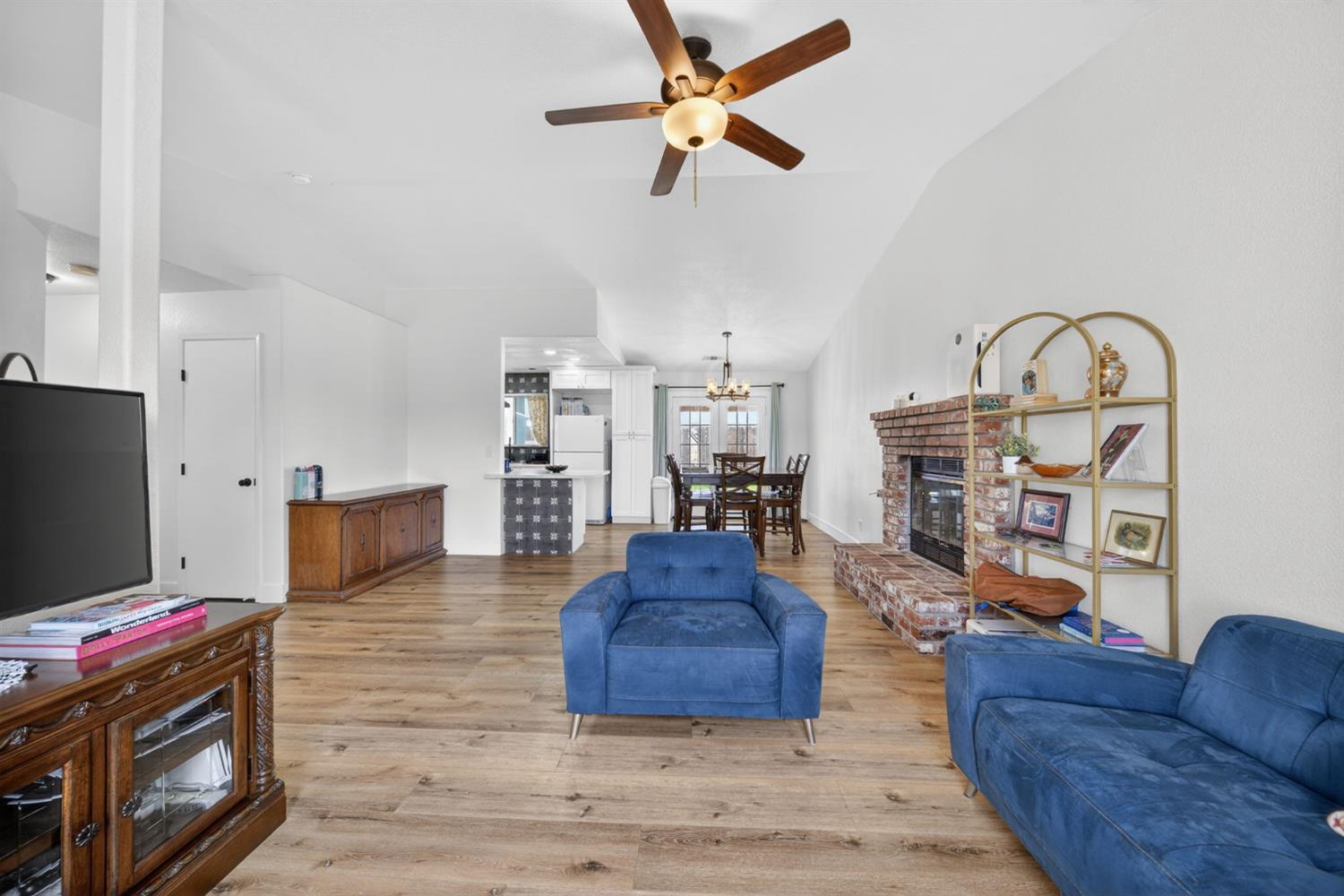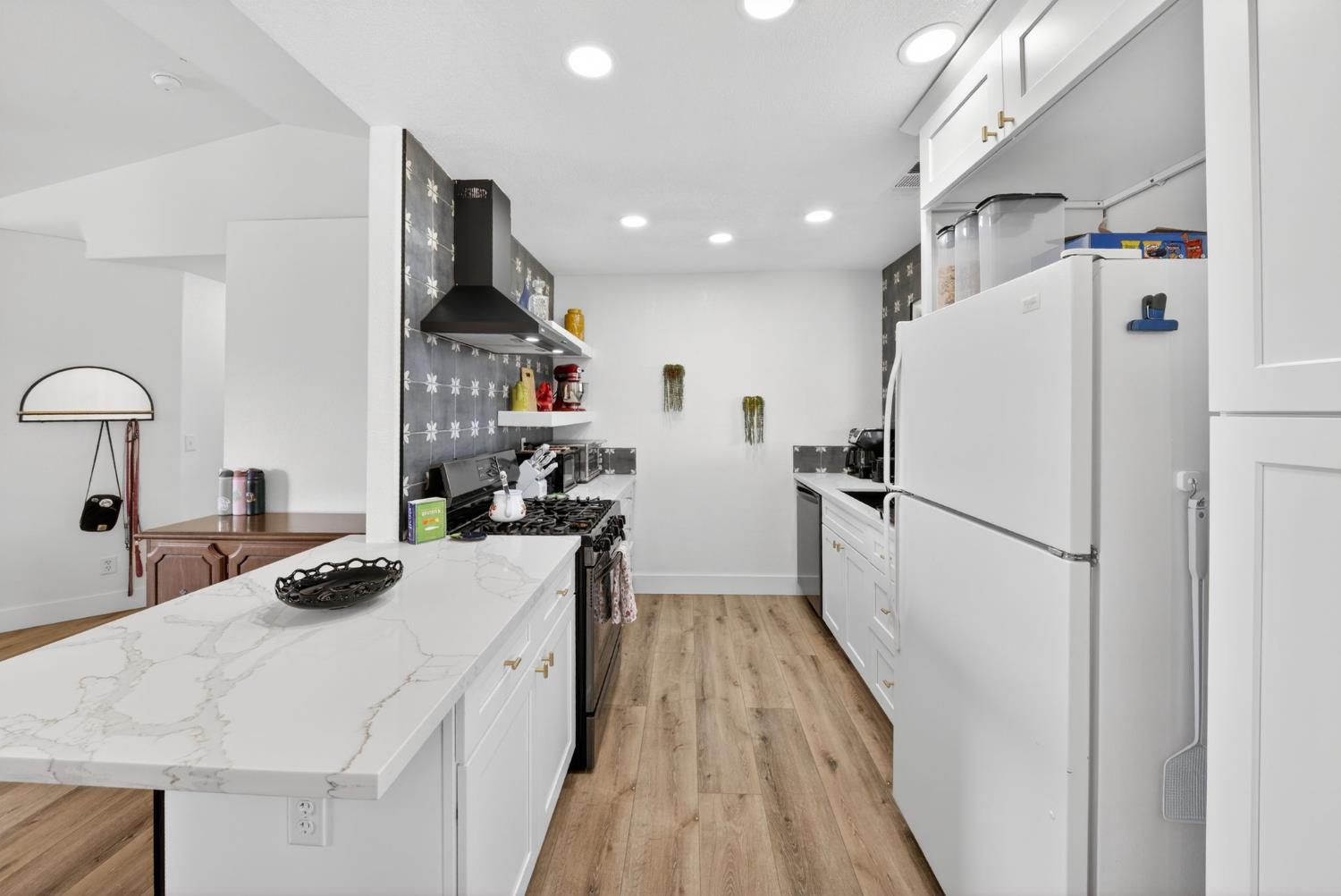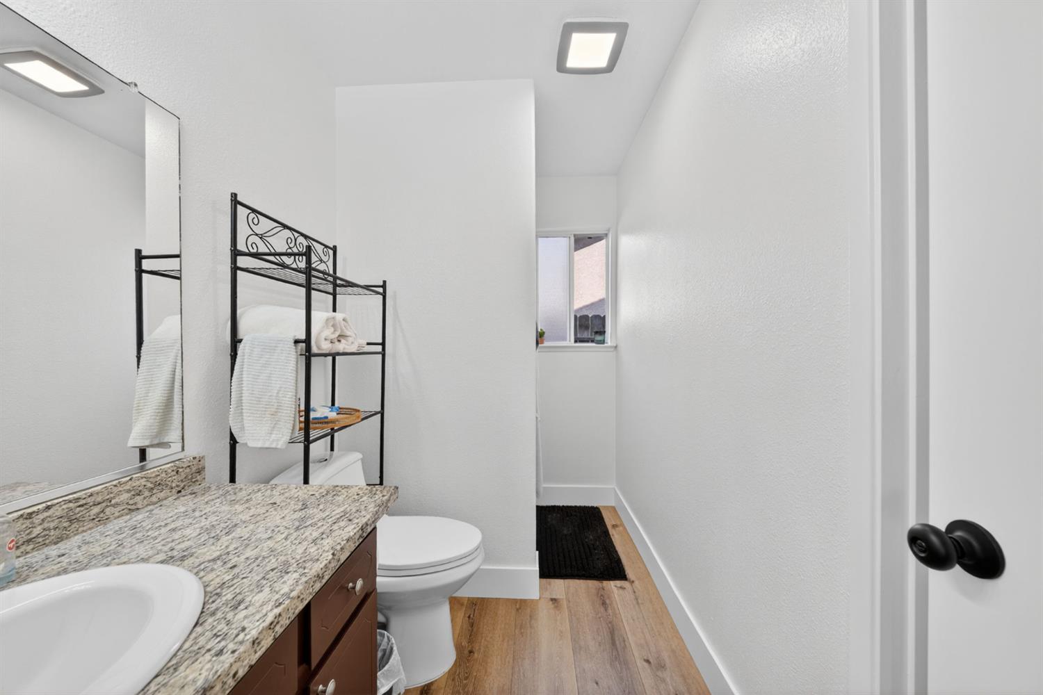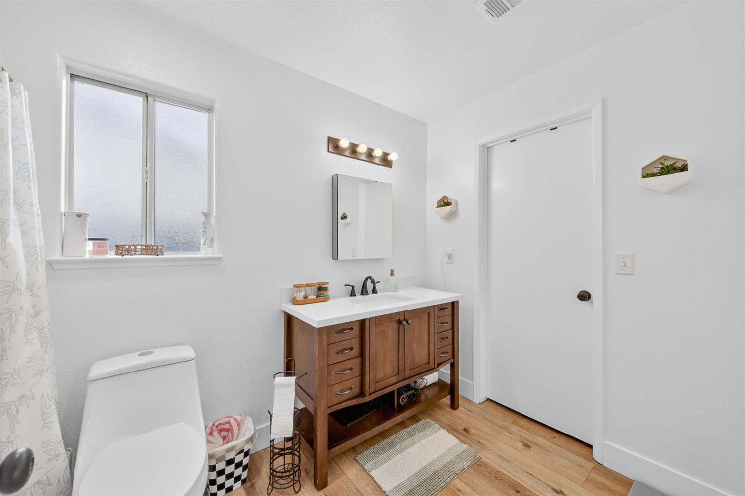 Welcome home to this beautifully updated 3-bedroom, 2-bath residence that perfectly blends modern comfort with everyday functionality. Inside, bright and open living spaces are enhanced by fresh finishes, neutral tones, and durable wood-style flooring throughout. The thoughtfully designed kitchen showcases crisp white cabinetry, quartz counters, ample storage, and a clean, contemporary layout that flows seamlessly into the living and dining areas. Both bathrooms have been tastefully remodeled with modern vanities, updated fixtures, and abundant natural light, creating spa-like spaces that feel fresh and inviting. The bedrooms are well sized and versatile, offering flexibility for guests, a home office, or creative use. Step outside to a generous backyard featuring a covered patio, ideal for entertaining, relaxing, or future customization. The outdoor space provides plenty of room to garden, play, or unwind in privacy. With its move-in-ready condition, stylish upgrades, and functional layout, this home offers comfort, charm, and convenience in one complete package. A must-see schedule your showing today.