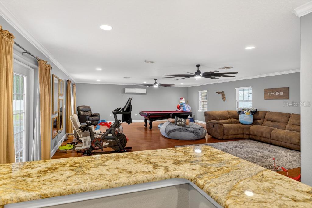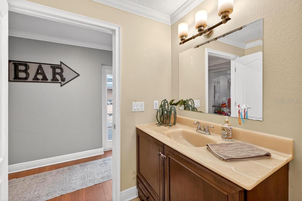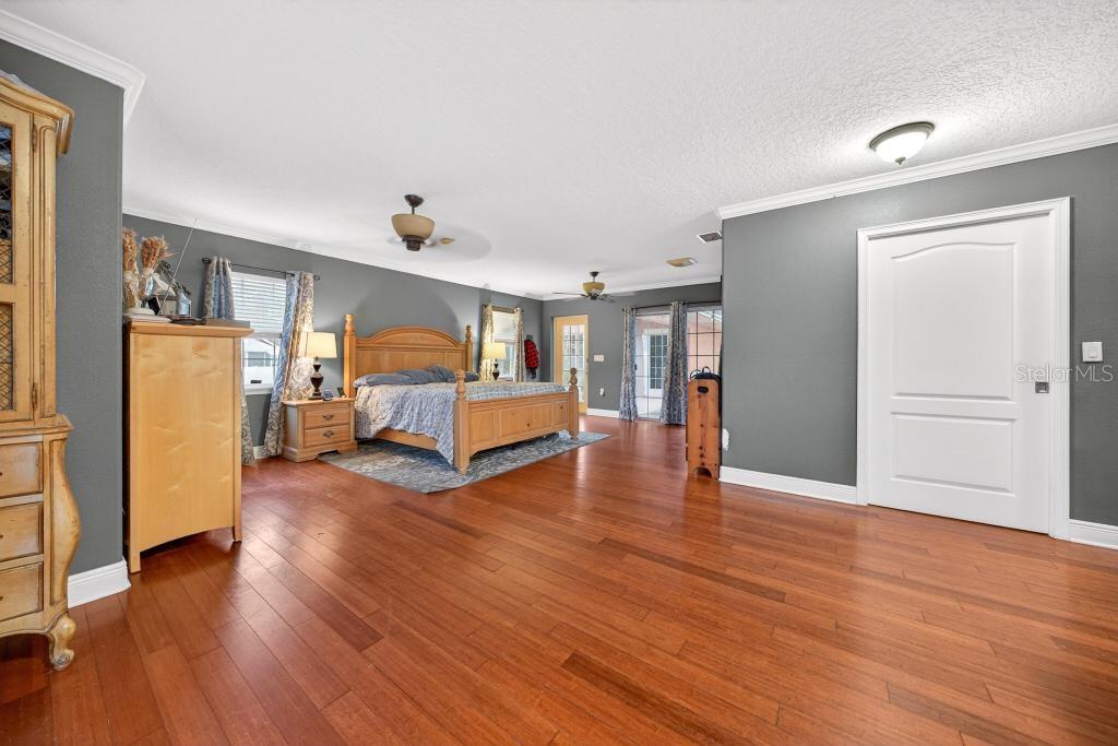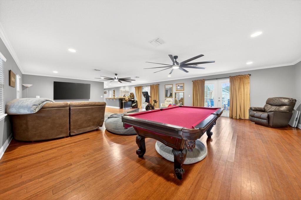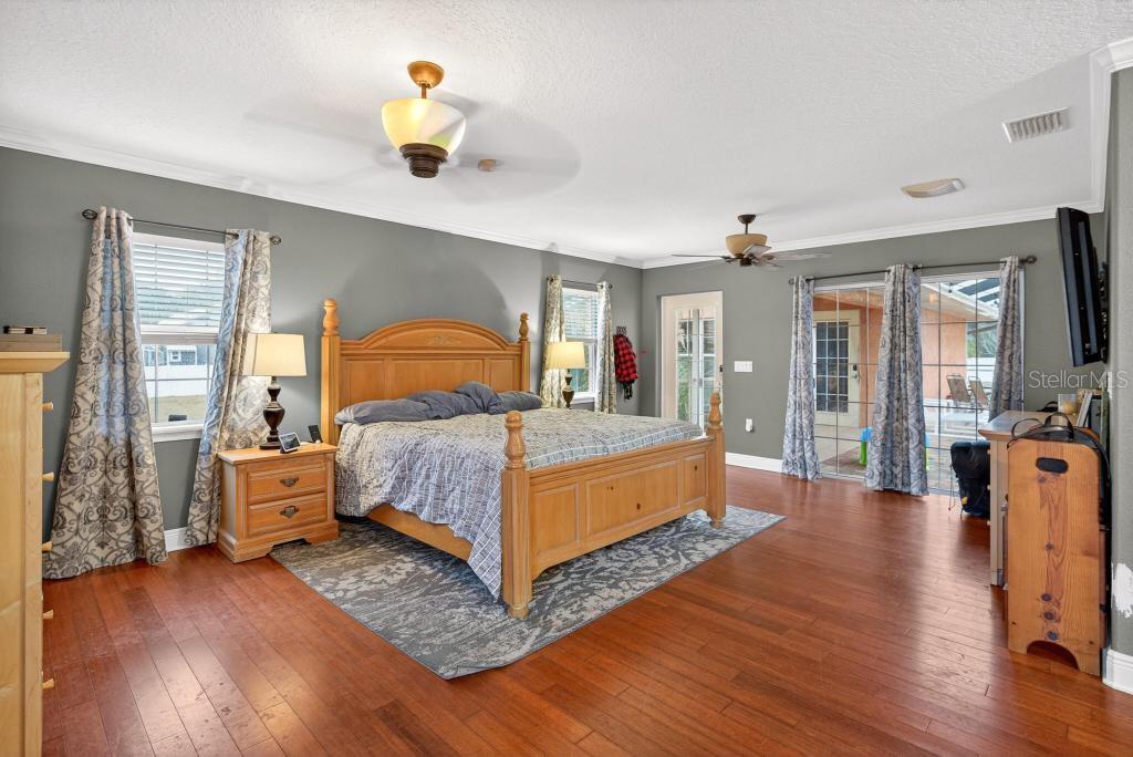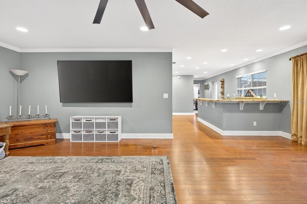 Assumable mortgage is available for this stunning residence in a highly desirable, well-established neighborhood, offering luxury upgrades, accessibility, and resort-style outdoor living. This magnificent 3 bedrooms, 2 baths, 3,500 sq ft residence sits on an extra-large, fully fenced lot with everything thoughtfully designed on one level for easy, comfortable living. Recent upgrades include a new roof installed last year, new central air conditioning, a new gas tankless hot water heater completed in 2025. The interior shines with real wood floors throughout, crown molding, upgraded baseboards, and extra-wide doors with smooth wood-to-tile transitionsdesigned for comfortable accessibility and barrier-free movement for persons with disabilities. The grand master suite features a spacious walk-in closet (newly customized in 2025) and a luxurious master bath with an upgraded shower package, including a large frameless open glass shower and premium finishes. Additional living spaces include a formal living area with fireplace, formal dining area, spacious family room, casual dining nook, and wet bar. The custom kitchen offers an open concept with timeless cherry wood cabinetry matched throughout the home, abundant storage, contrasting dark granite countertops on the bar and island, a large standalone island, and a breakfast area that overlooks the backyard. Step outside to your private resort-style oasis: a huge sparkling pool surrounded by an expansive paved deckperfect for entertaining and enjoying Florida's long, sunny months. Perfection, value, and location all in onethis sought-after area is poised for growth with schools, shopping, dining, and much more nearby. Schedule your private showing today!