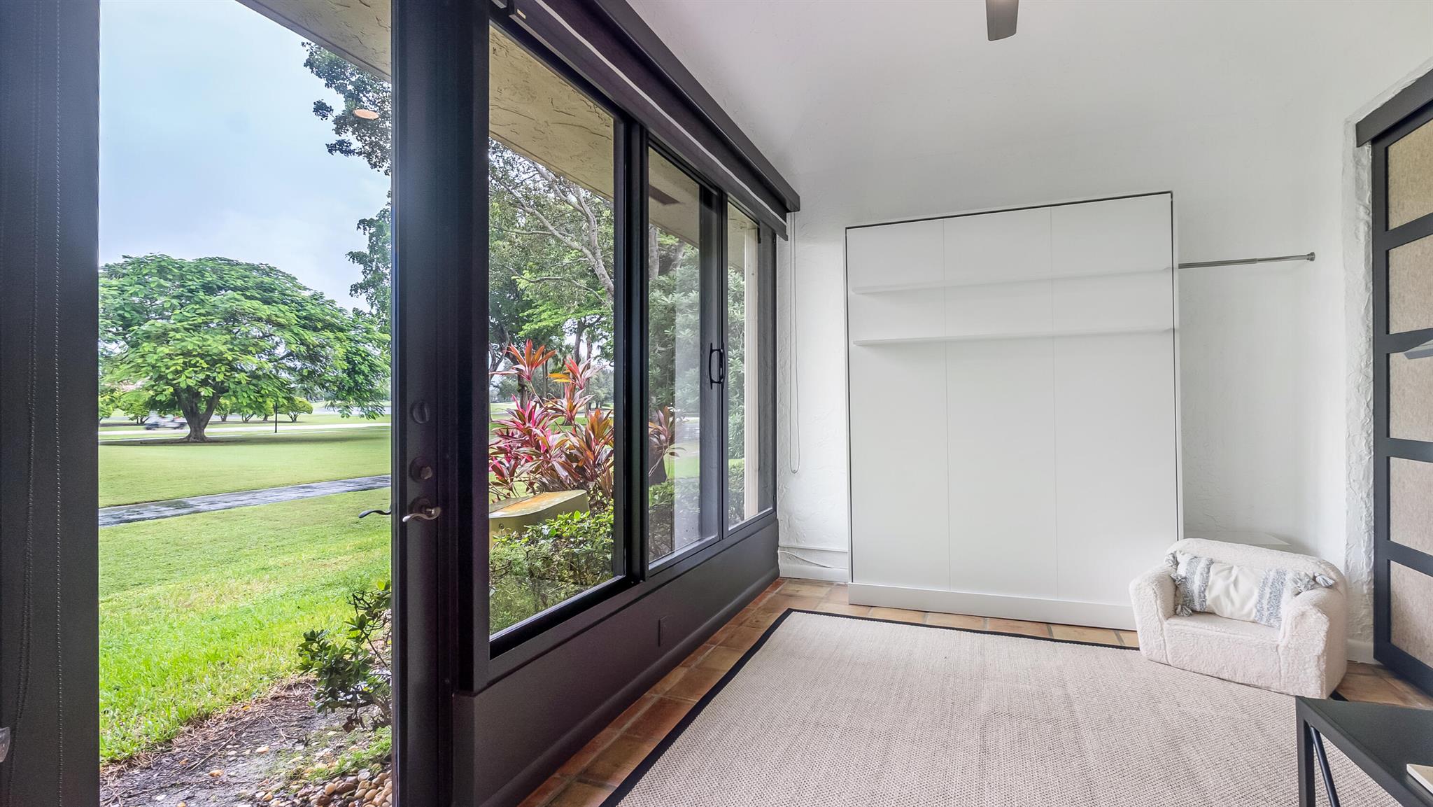 Don't miss this rarely available 1,300 sqft Villa in Boca Point - move-in ready & designed for effortless living! This beautifully updated 1BR/1.5BA home features panoramic golf course views, designer finishes, and an open-concept layout filled with natural light. Enjoy a private enclosed patio/Florida room overlooking the greens, plus a versatile flex space off the main bedroom complete with a Murphy bed--perfect for guests or a home office. Hurricane impact windows along the Florida room and a 2024 roof. Located in a secure, gated community with resort-style pools, walking paths, and optional club memberships, offering the country club lifestyle without the fees. Minutes to Boca's best beaches, dining, shopping and places of worship. All-ages community within an A rated school zone.
