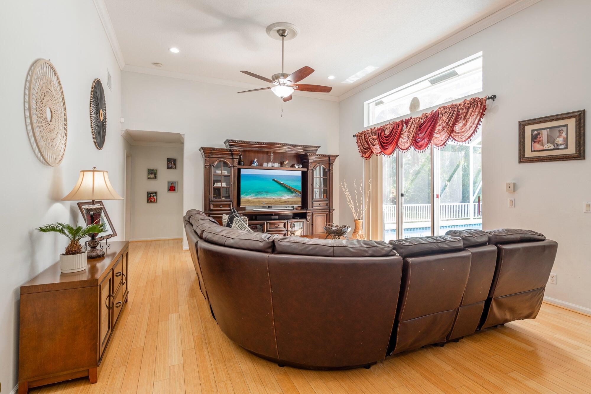 This updated home with NEW ROOF offers an open split floor plan, sleek kitchen with granite counters, upgraded appliances, and new recessed lighting. The master bath is a true retreat, complemented by accordion shutters throughout and lush tropical landscaping. Enjoy outdoor living with a private pool, fruit trees, and green space in a gated community with a virtually manned entrance. Perfectly located near Wellington National Golf Course, shops, dining, and top-rated schools, including Binks Forest Elementary and Wellington Landings Middle.