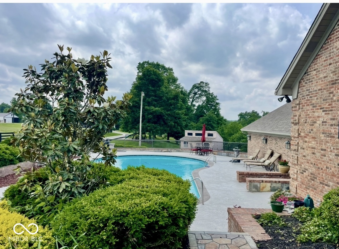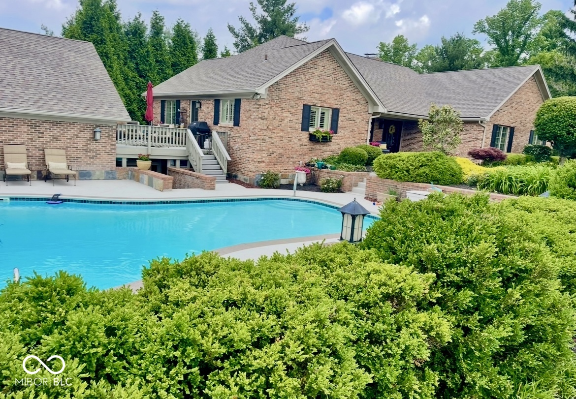 Hard to find 5200 SF FULLY ACCESSIBLE WALKOUT RANCH ON 5 Acres in FLOYD CENTRAL School District! This 5BR/4BA custom-built home has quality workmanship, completely renovated in 2008. This home has an elevator, in-ground pool, private hot tub and Generac whole house generator. A beautiful 2 story stone fireplace enhances the great room with vaulted ceilings and crown molding. Off the entry is a multi-purpose room with French doors, which can be used as an office, mud room, or formal dining room. The large kitchen is open to the family room for easy entertaining. Granite countertops, stainless steel appliances, separate wine and beverage coolers, refrigerator drawers, convection oven, and Bosch dishwasher complete the kitchen. The main floor includes the master suite, large upstairs laundry, and 2nd bedroom with full bath. Beautiful custom ceiling in master bedroom with doors that open to the rear deck, which spans the length of the house. The master bath includes double sinks, jacuzzi tub, and a large natural stone shower. Master closet has custom built-ins and connects to the laundry room. The beautiful open staircase leads to the wallk-out lower level with custom walnut woodwork and beautiful travertine tile floors. The game area has a woodburning stove fireplace and opens to the covered 3-season porch with slate floors. The 3rd and 4th bedrooms share a full bath and laundry off the hall. A flexible craft/wet bar area opens with French doors to the covered porch. The 5th bedroom is very large, complete with a custom-built murphy bed and fully accessible bath with roll-in shower. This level is ideal for an in-law suite or multi-generational living. The large breezeway with slate floors connects the 2.5 car garage, built in 2009. Above the garage is a finished bonus room with mini-split and attic storage. This flexible space is just off the kitchen deck area overlooking the pool, perfect for entertaining.