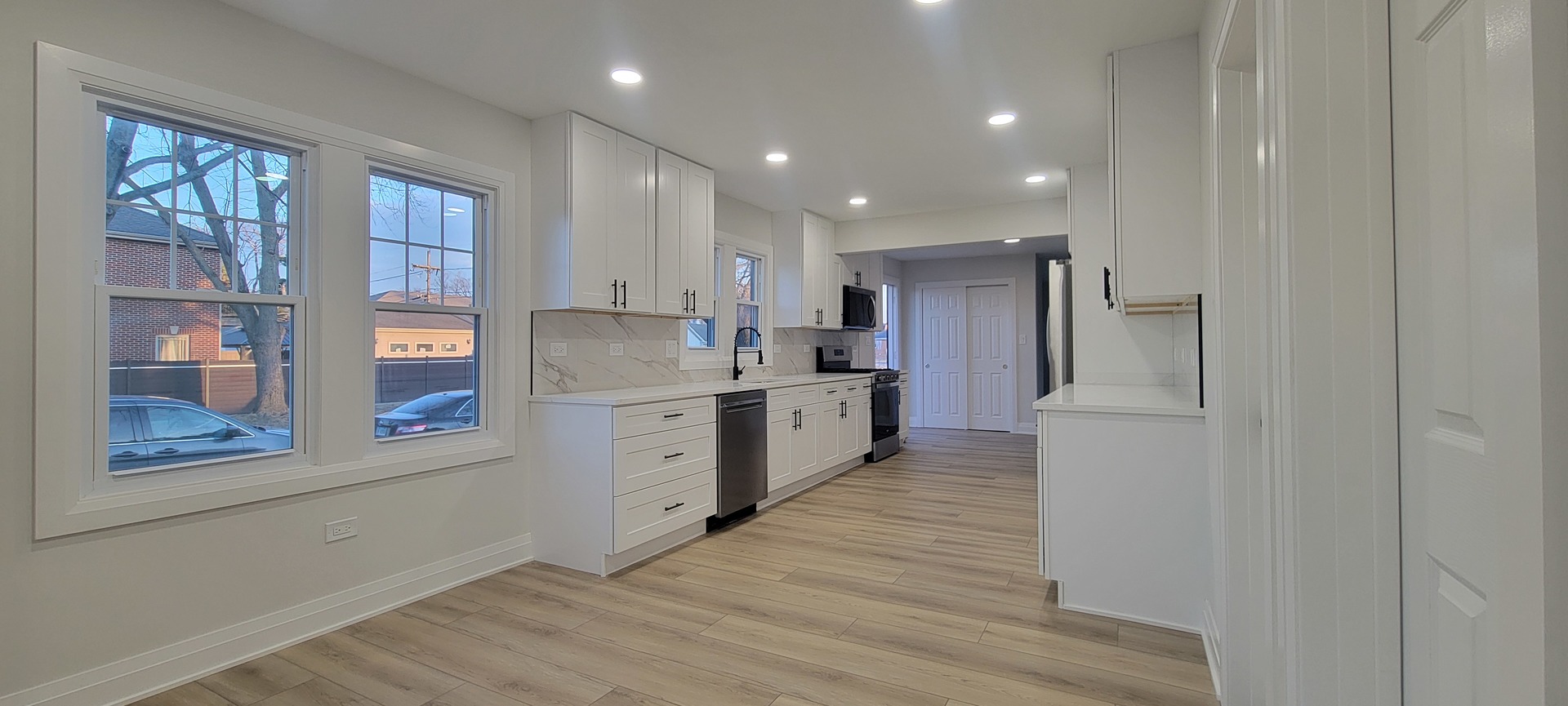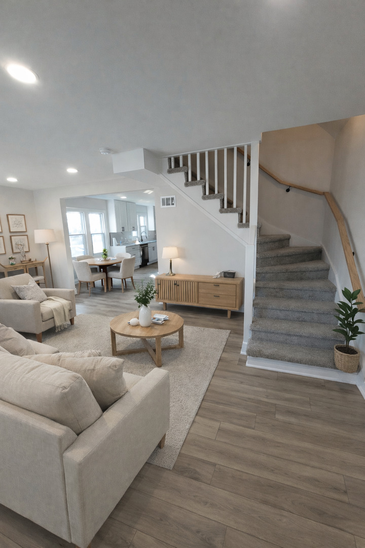 Move in ready full of natural light 3 bedroom, 1 1/2 bathroom home. Modern kitchen with plenty of 42' cabinets, quarts countertops, stainless steel appliances and eating area. Property has on the first level one bedroom, living room and spacious family room. Stylish floors though out the 1st level. Second level offers two additional bedrooms and loft. Enjoy all the conveniences Harwood Heights has to offer - excellent schools, parks, shopping, dining and easy access to O'Hare, I-90/294, downtown Chicago and more.