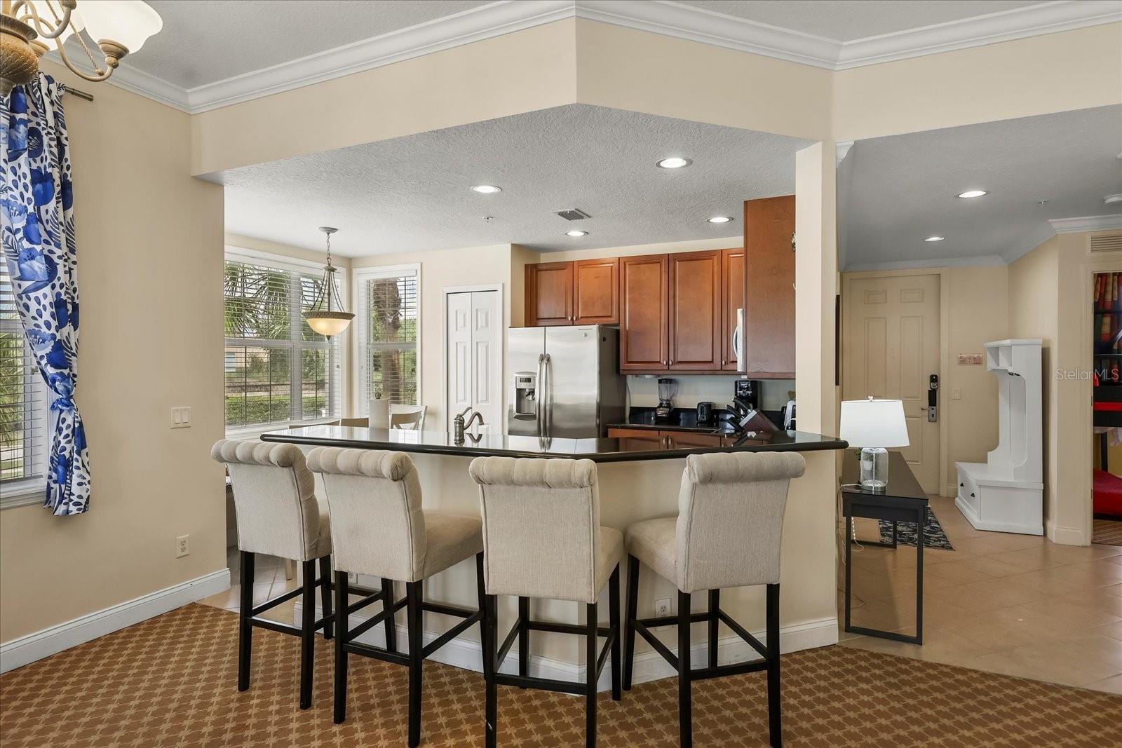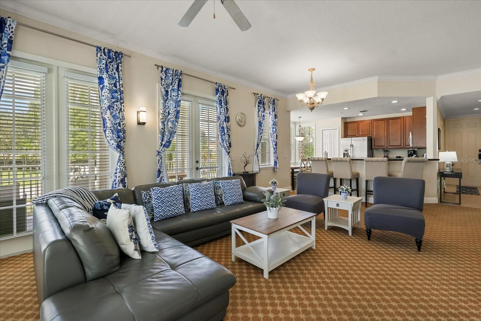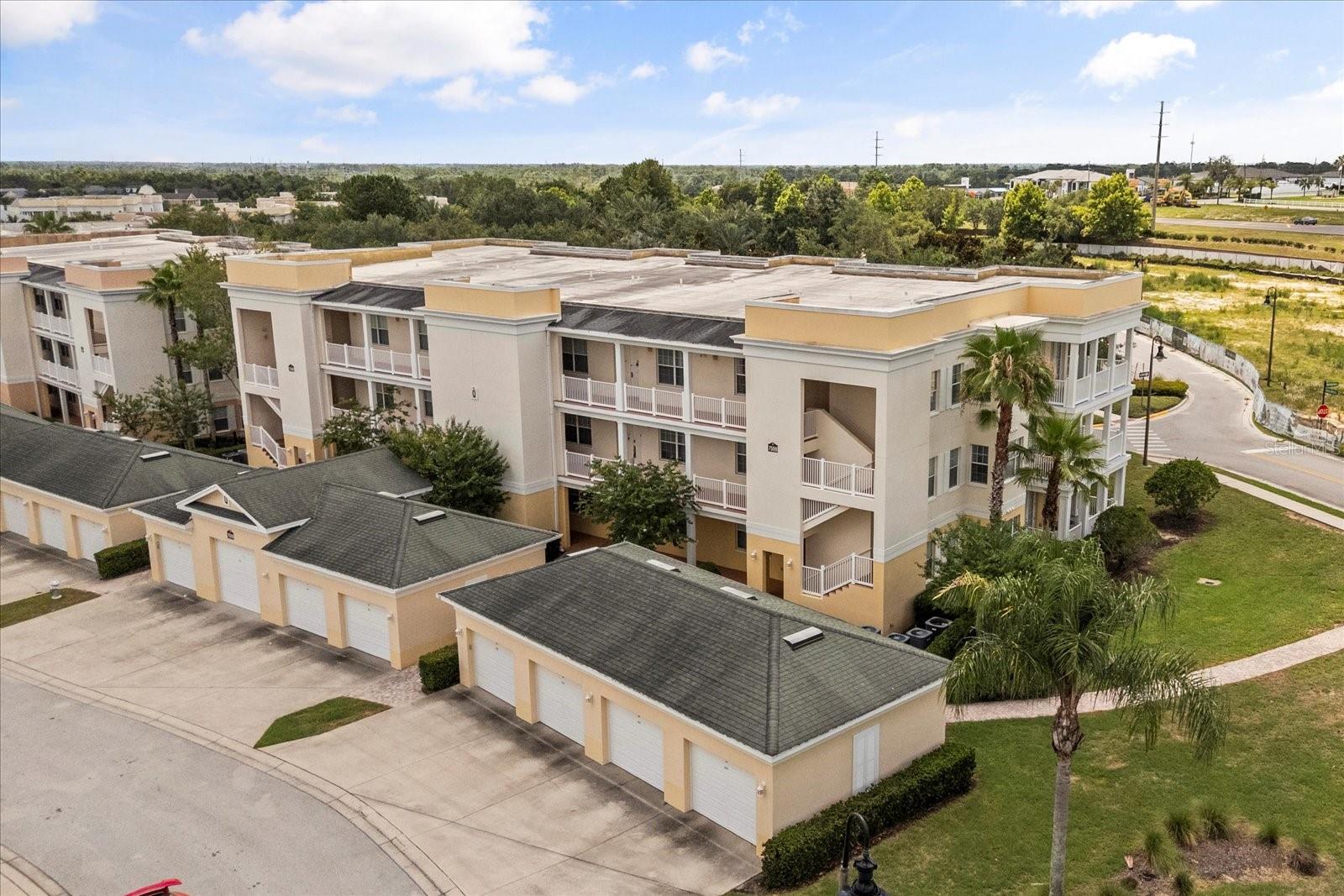 Welcome to this beautifully UPDATED CORNER UNIT condo in the serene and highly sought-after neighborhood of The Terraces at Reunion Resort. This residence offers the perfect blend of style, comfort, and functionality. Step inside to discover a spacious, light-filled interior with a contemporary design. The gourmet kitchen boasts stainless steel appliances, granite countertops, and hardwood cabinets. and a breakfast nook for added convenience. The expansive living area provides a welcoming space with an abundance of natural light, plush seating, a large flat-screen TV, and direct access to the impressive wrap-around balcony only available with CORNER UNITS, where you may enjoy your mornings with coffee or unwind in the evening sun. The primary suite offers a king-sized bedroom set, a spacious walk-in closet and a second closet that can be locked for owner use. The ensuite bathroom features dual vanities and a walk-in shower. The two additional guest bedrooms include a comfortable queen bedroom and a Lego themed bunk room. As an added bonus the unit includes a detached 1 car garage, a highly coveted feature in Reunion. The HVAC is BRAND new September 2025. Residents of The Terraces enjoy access to the largest lap pool on the property and it is just a short walk away ideal for swimming, sunbathing, or relaxing by the water. Whether you're looking for a primary residence, vacation home, or investment property, this move-in-ready condo checks all the boxes! Reunion Resort is a one of a kind 2300 acre Resort and Golf community that has many amenities including a water park complete with water slides, lazy river, zero entry pools & food and beverage service, 3 award-winning golf courses designed by the legends of golf (Palmer, Watson & Nicklaus), 11 pools throughout the community, putt putt golf, world class tennis courts, pickleball courts, playgrounds, golf cart & bike rentals and several on-site restaurants to include fine dining. Reunion Resort is located just 6 miles to Disney and the parks, and a short drive to the Orlando International Airport. **REUNION RESORT MEMBERSHIP AVAILABLE*** and is transferrable to the next owner.