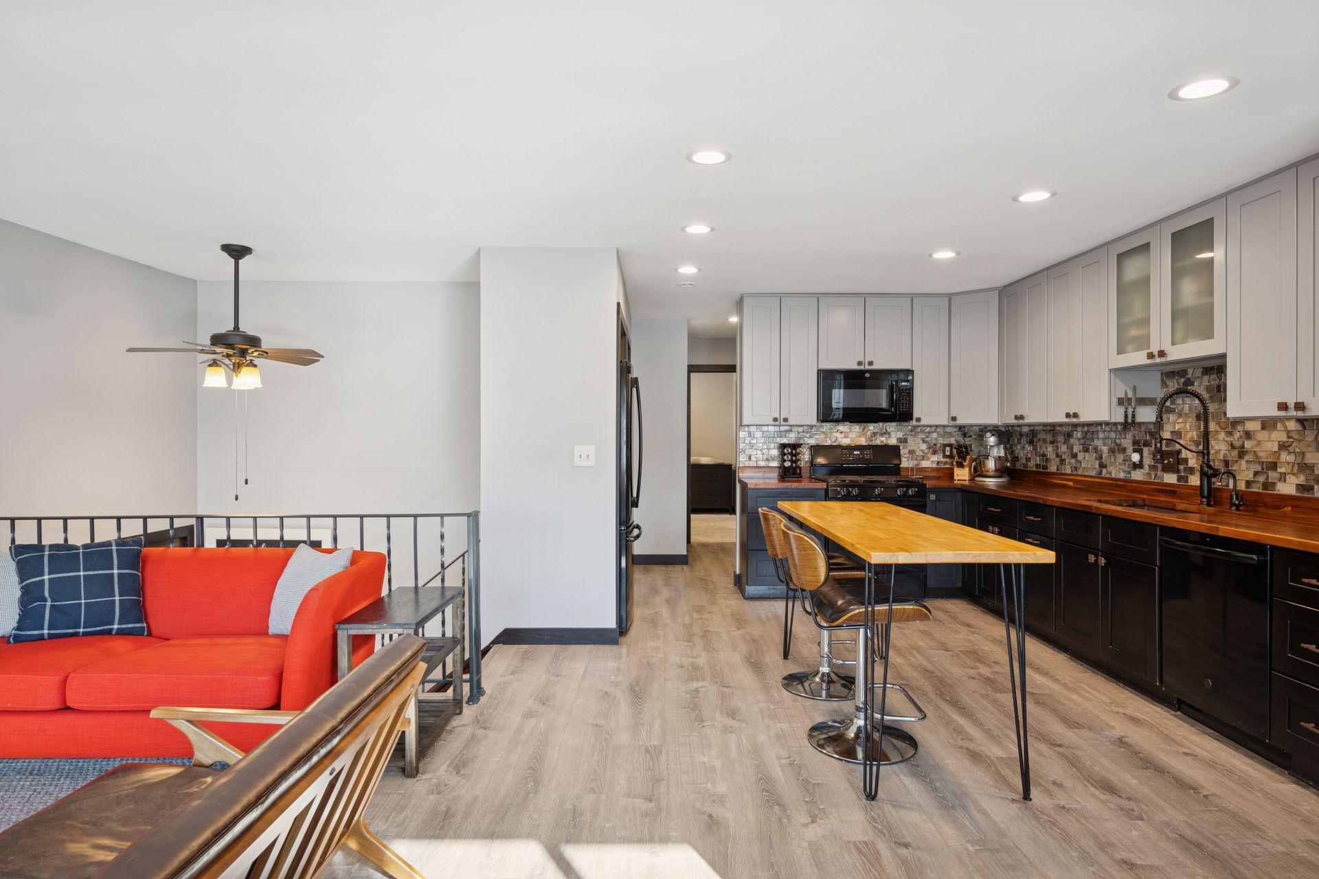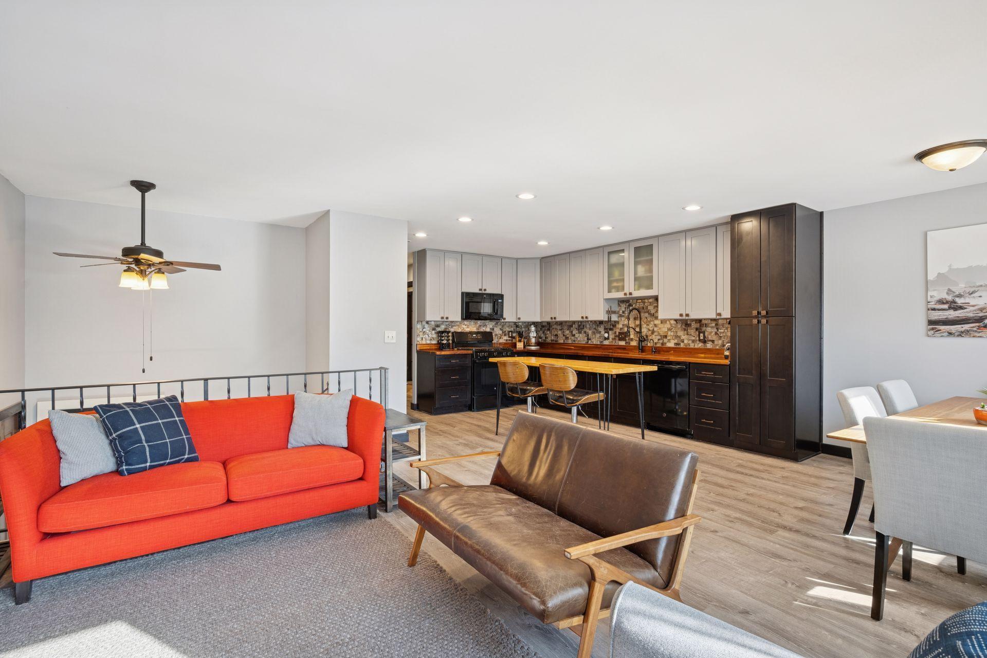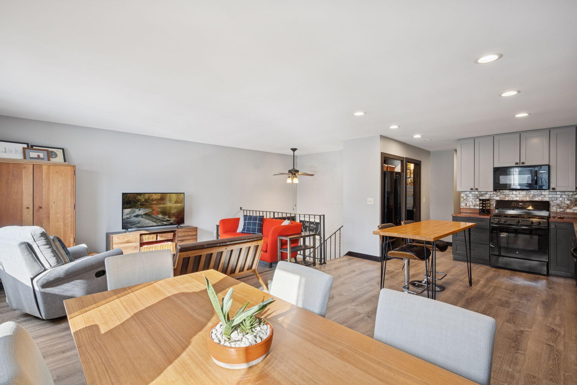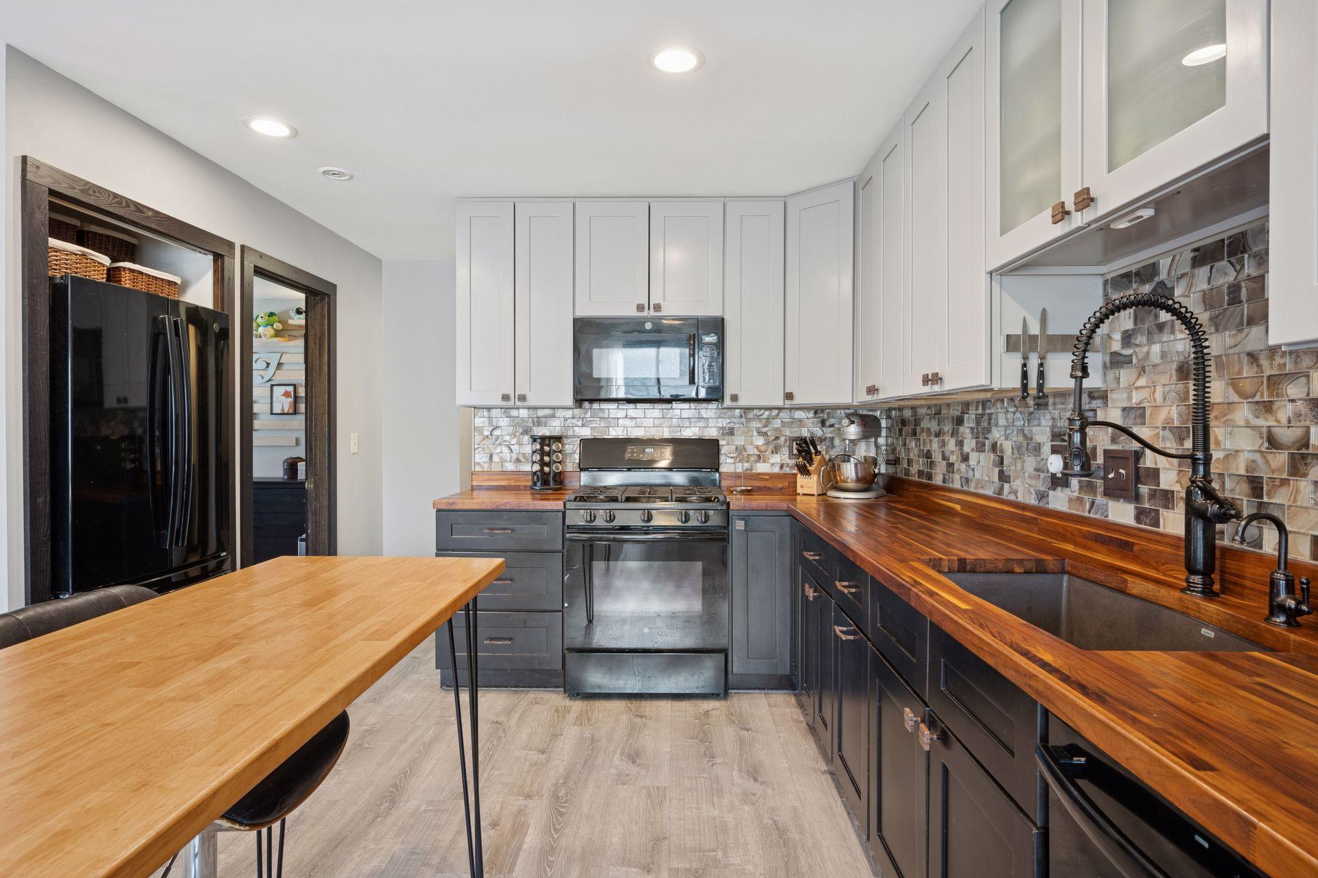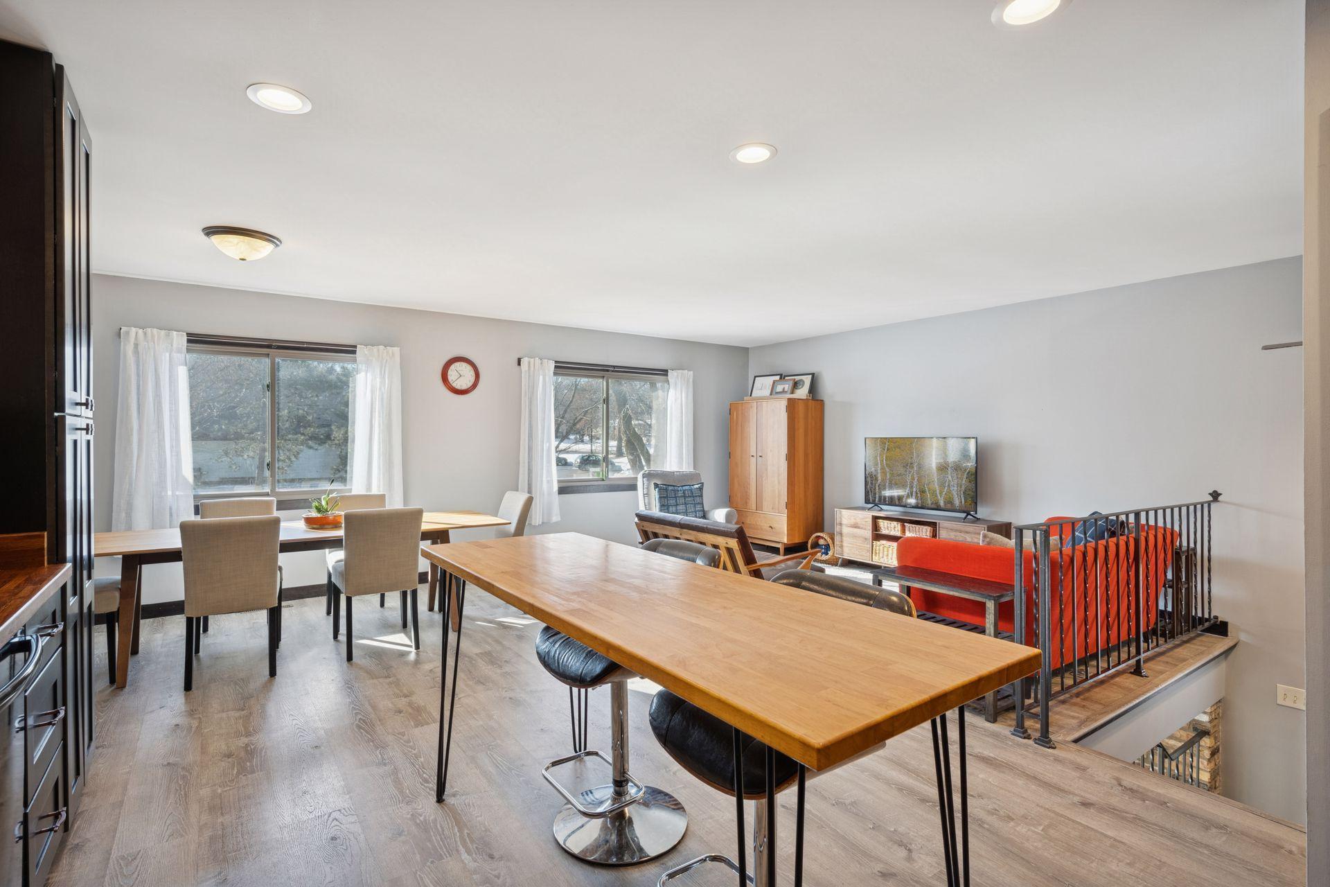 You will love this stunning renovation! Beautifully updated and designed for everyday living. An open floorplan and large, southern facing windows fill the home with natural light from sunrise to sunset. Every window has been upgraded to high end Andersen windows, adding both quality and energy efficiency throughout.The kitchen shines with updated cabinets, butcher block counters, a stylish tile backsplash, and sleek black appliances. Updated flooring flows seamlessly from room to room, creating a clean, cohesive feel. Both bathrooms have been refreshed with tiled showers, modern vanities, and updated lighting for a crisp, contemporary look.The walkout lower level is a true bonus, featuring a cozy wood burning fireplace and direct access to a large paver patio. From there, enjoy the expansive corner lot. It is flat, usable, and perfect for yard games, gatherings, or simply soaking up the outdoors.All of this is just minutes from Arbor Lakes, offering endless options for shopping, restaurants, and entertainment.