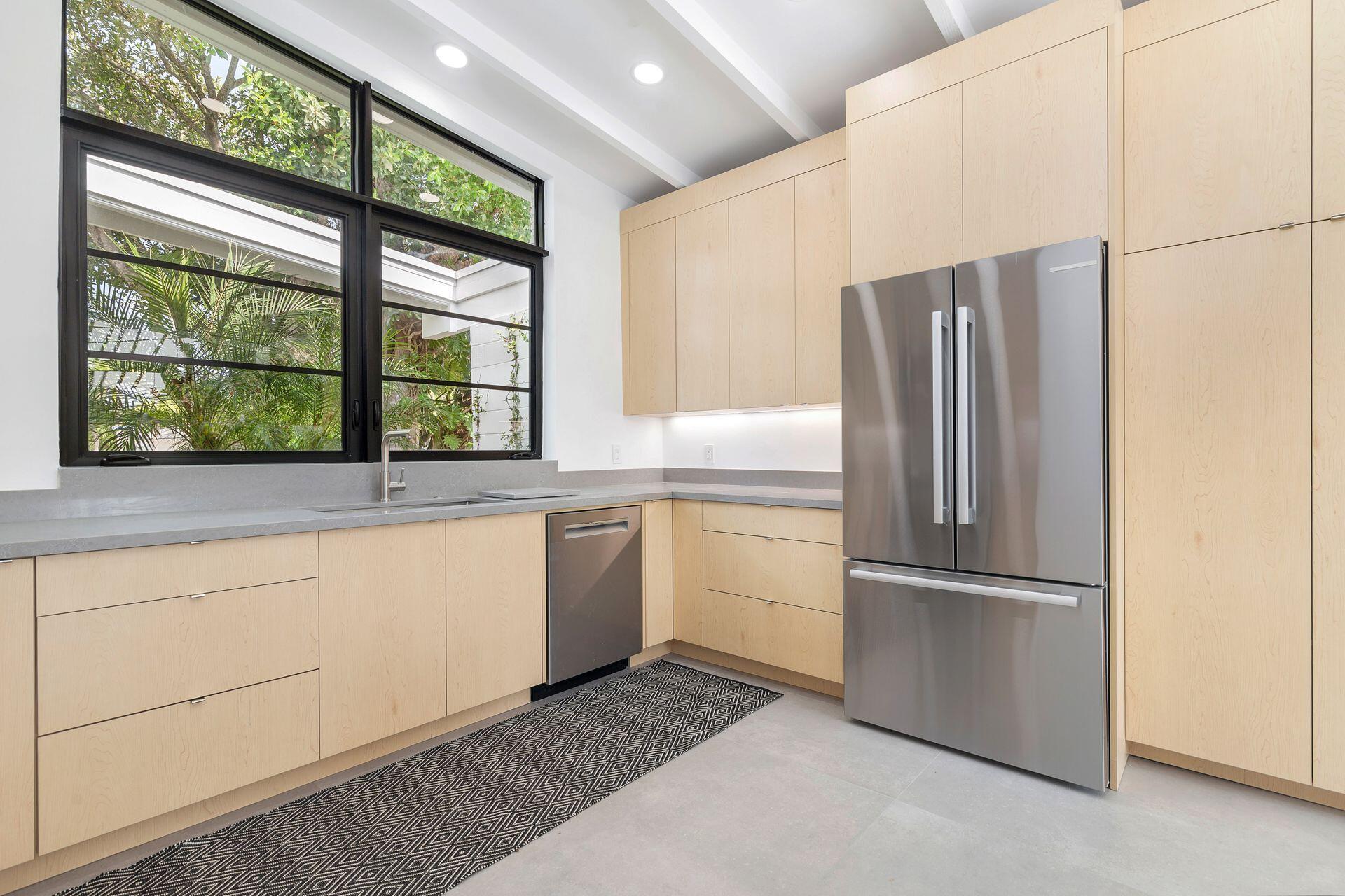 Mid-century modern architecture at its best! After a total renovation, this four-bedroom, three-bath home maintains all the classic elements of its original design. Generous-sized windows and soaring ceilings allow natural light to permeate throughout. The large entry foyer separates the bedroom wing from the open flow of the family gathering spaces. The extensive renovation encompasses all new hurricane-impact windows, new roof, new electrical system, two new HVAC units, new plumbing, and an air-conditioned garage. The original terrazzo floors have been meticulously restored, and the kitchen, laundry room, and baths have been completely reimagined. With its oversized pool and patio, the back yard is perfect for entertaining, and a well-shaded side yard is perfect for relaxing. The lush