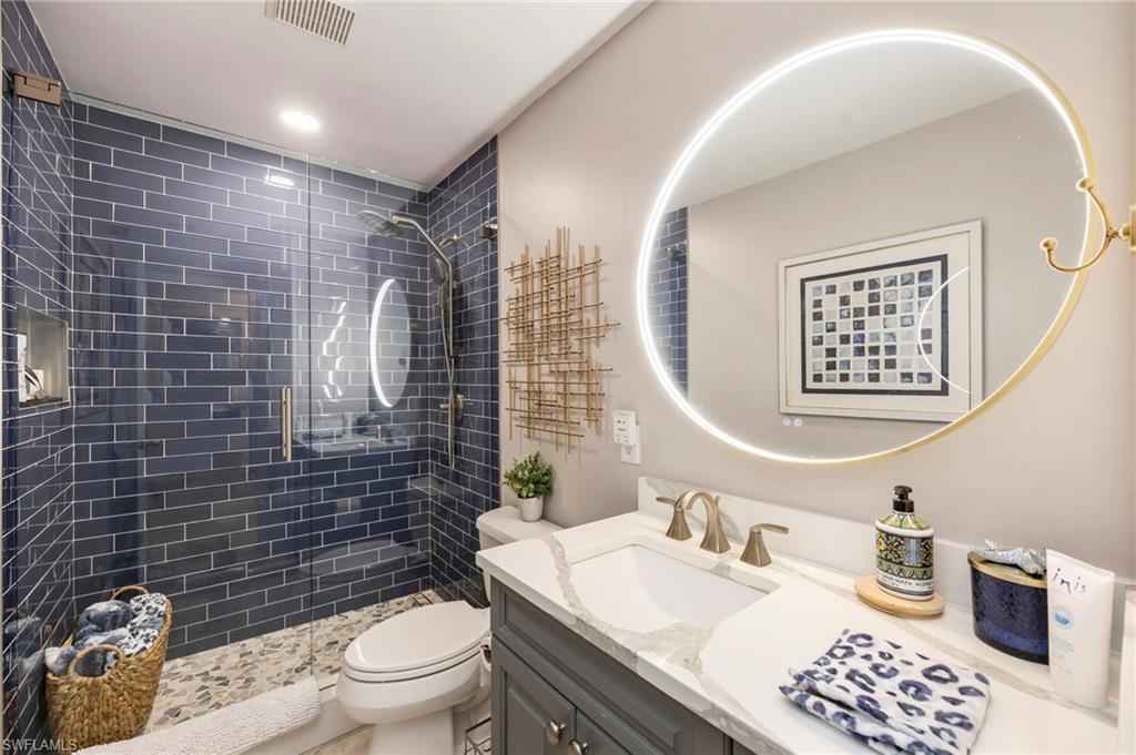 Tier 2 or Poss FULL GOLF AVAILABLE...Welcome to this top-floor, fully remodeled and FURNISHED 2-bedroom, 2-bath x201C;Kittiwakex201D; condo in Eagle Creek Golf & Country Club, offering LUXUROUS FEEL with exceptional updates throughout. The residence features all-new bathrooms, a designer kitchen with updated wood cabinetry, granite countertops, stainless steel appliances, luxury vinyl plank flooring, plantation shutters, and neutral furnishings. An expansive 42' x 15' Florida lanai room enhances the living space and provides a comfortable setting for year-round enjoyment. Ideally located just steps from the Crystal Lake CafxE9; Tennis/Pickleball & Fitness Complex, residents have access to a state-of-the-art fitness center, resort-style pool and spa, sports bar and grill, tennis and pickleball courts, and numerous social activities. Eagle Creek is an intimate golf and racquet community with only 456 residences and 368 golf members, offering a highly social environment. A Social Sports Membership or Golf-in-Waiting Membership is required with purchase. Conveniently situated just 8 miles from Marco Island and 8 miles from 5th Avenue South in Naples, this property provides easy access to beaches, dining,