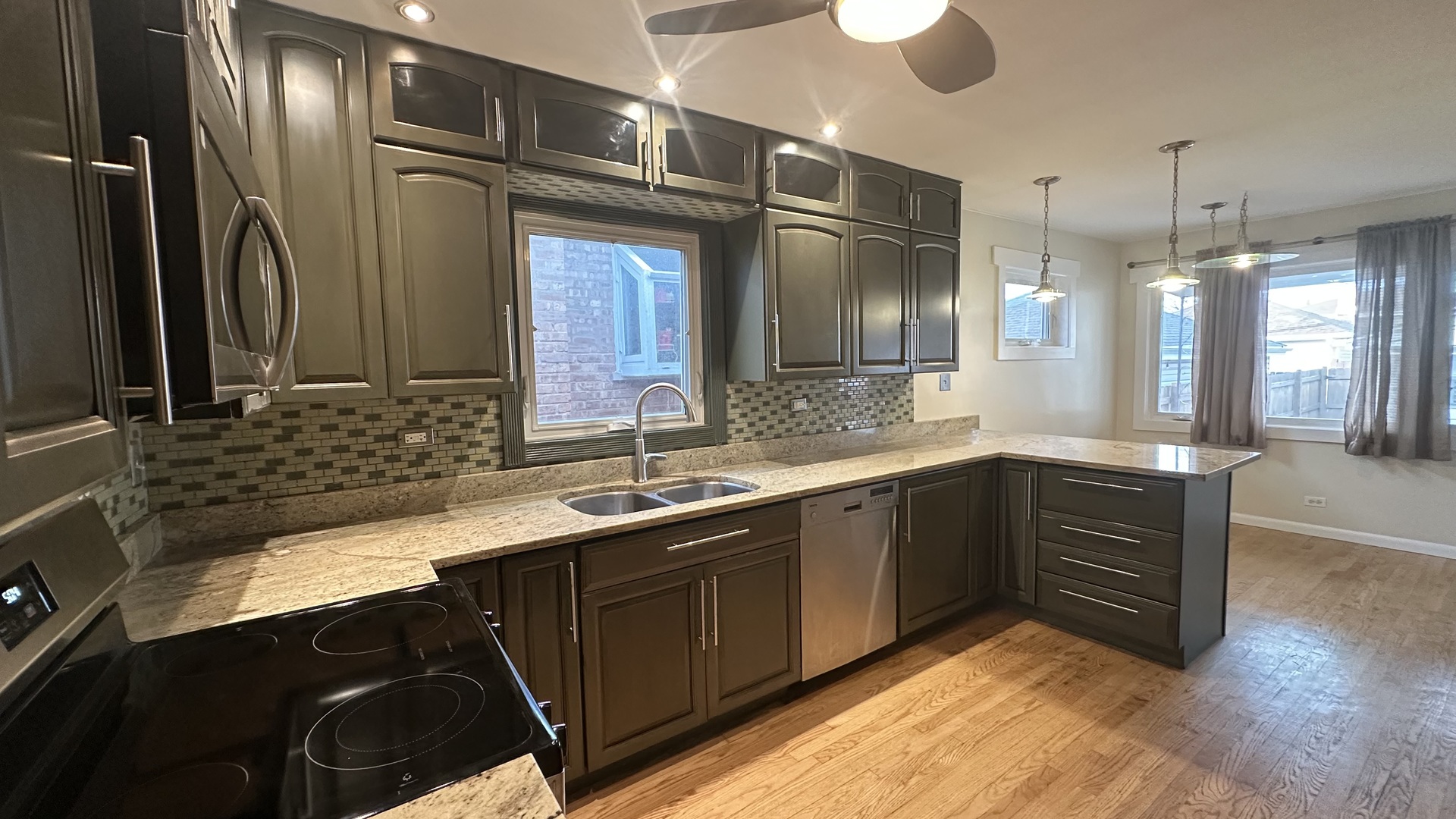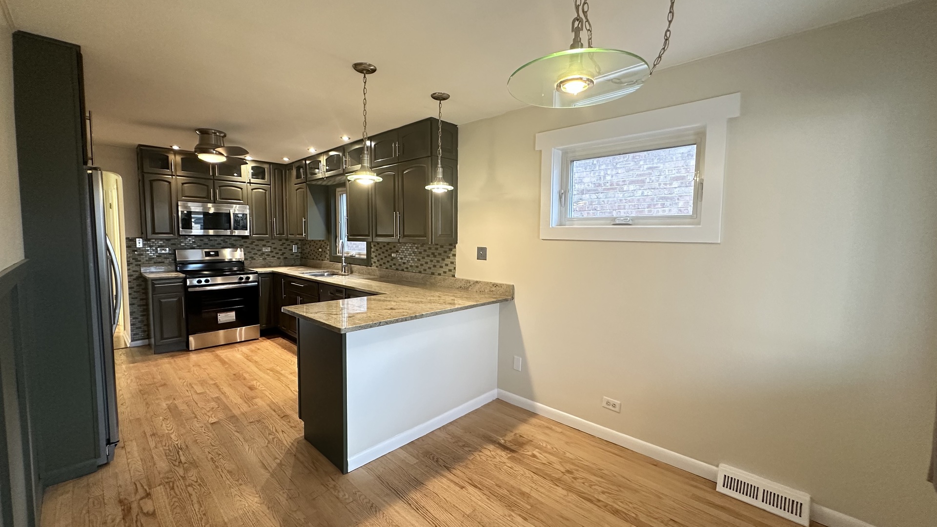 Beautiful move-in ready single-family home available for rent in Harwood Heights! This home is located in a very convenient area with easy access to many popular restaurants and shopping centers, including Portillo's, McDonald's, and Mariano's. It is also just minutes from O'Hare International Airport and only about 20-30 minutes to downtown Chicago. This one-story ranch-style home features 3 bedrooms and 1 full bathroom on the main floor, plus a fully finished basement with an additional bathroom. The basement includes a large recreation room with a wet bar, making it perfect for entertaining or relaxing. The main level offers hardwood floors throughout the living room and bedrooms, while the kitchen and bathroom feature durable ceramic tile flooring. The spacious living room includes a large front window that brings in plenty of natural light. Enjoy generously sized bedrooms and a nicely updated bathroom with a modern stand-up shower. The eat-in kitchen comes with newer appliances, making daily cooking convenient. In the back of the home, you'll find a bright sunroom, perfect for a small seating area with a couch or loveseats, a coffee table, and some plants to create a relaxing space. The finished basement features vinyl flooring throughout, a large open area for recreation, and a laundry area located next to the mechanical room. The basement also has a rear door that leads directly to the backyard. Outside, enjoy a clean backyard with a concrete patio, perfect for outdoor seating or gatherings. The property also includes a spacious 2-car garage. Everything is ready for you and your family to move in and enjoy. Schedule your showing today!