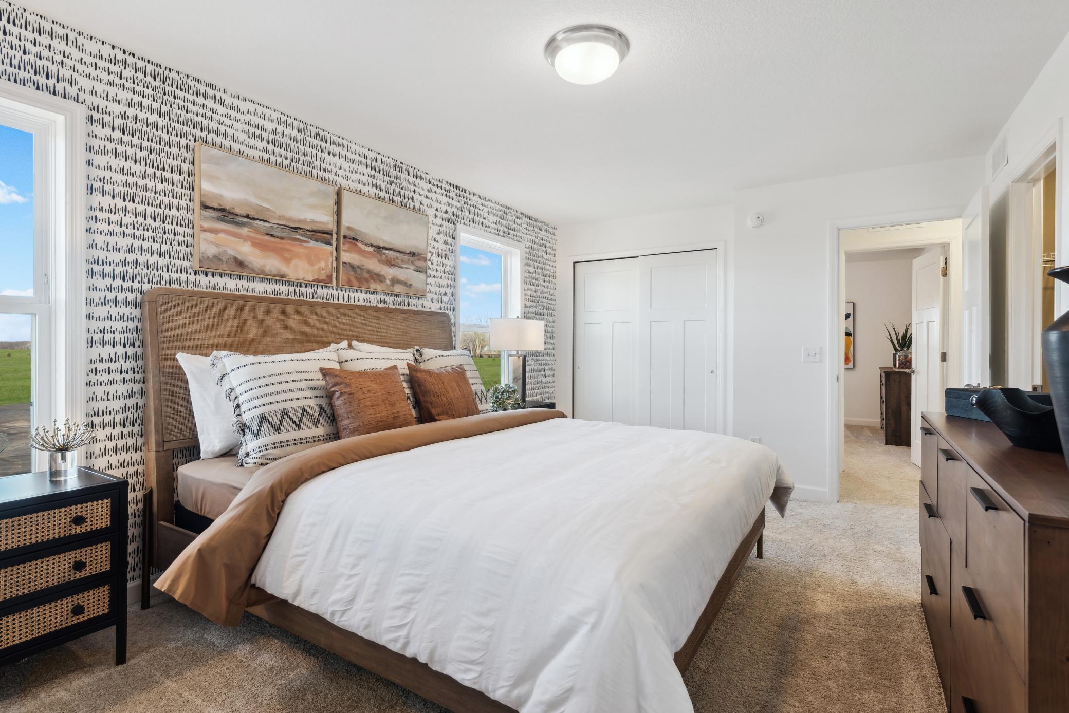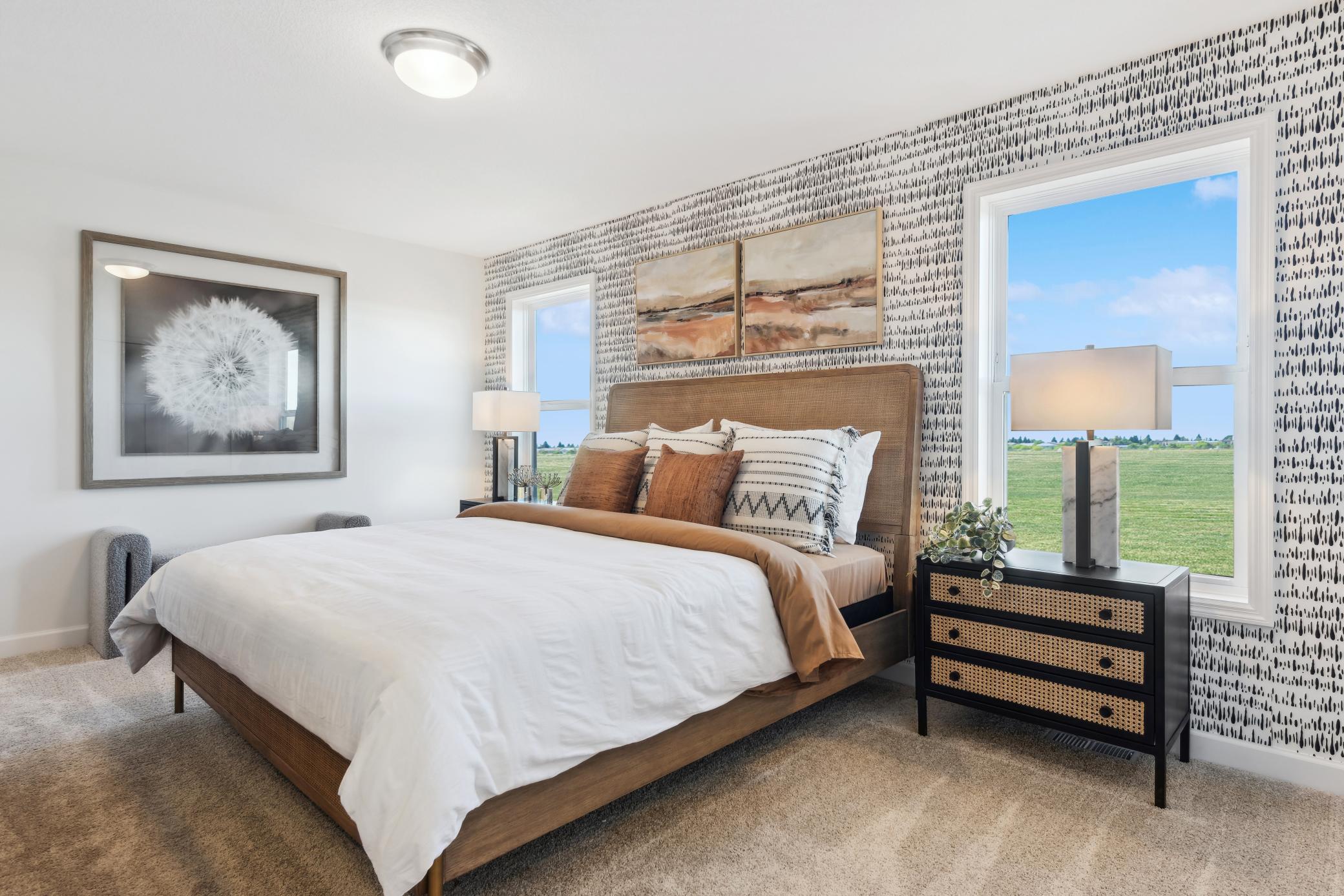 Introducing the Donovan, a thoughtfully designed two-story home in the desirable Watermark community. The main level is perfect for contemporary living, featuring a seamless connection between the dining room and kitchen, while the family room overlooks the dining area for an open, airy feel. Upstairs, youll find the luxurious owners suite along with two generously sized secondary bedrooms. The home is completed with an unfinished walkout basement. Residents of Watermark enjoy access to community amenities, including walking trails, open green spaces, and a friendly neighborhood atmosphere, making this home a perfect blend of style, function, and lifestyle.