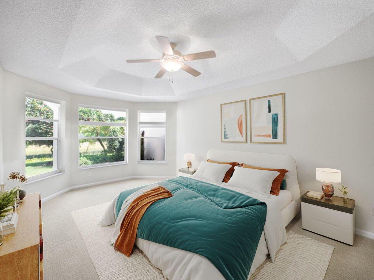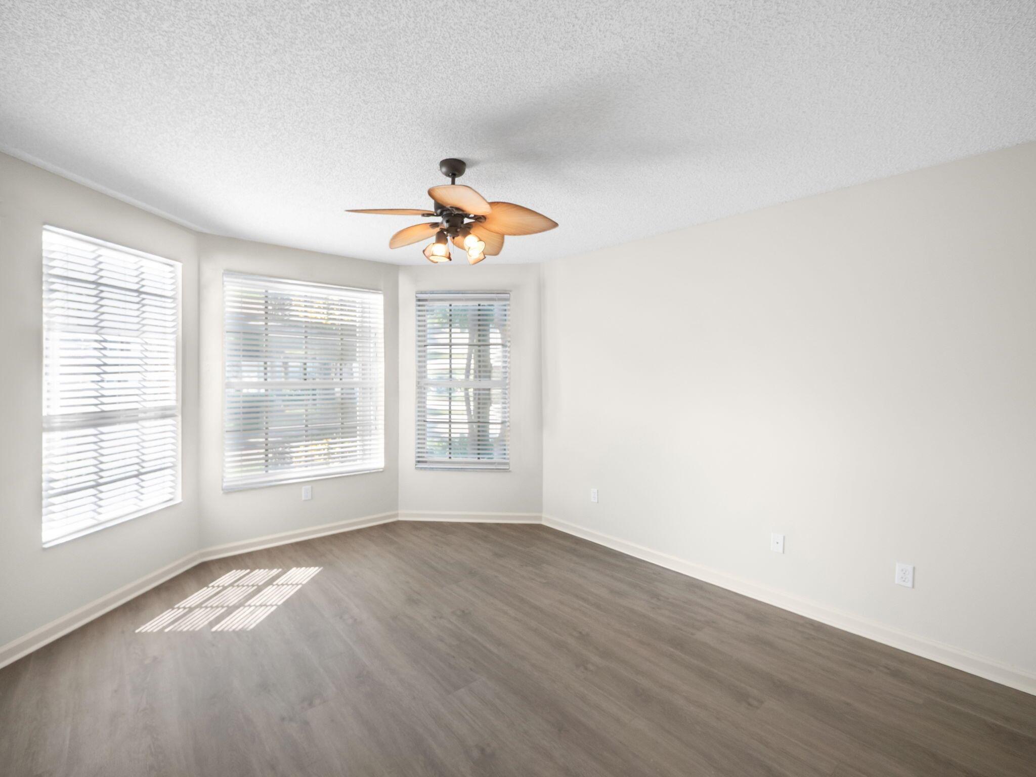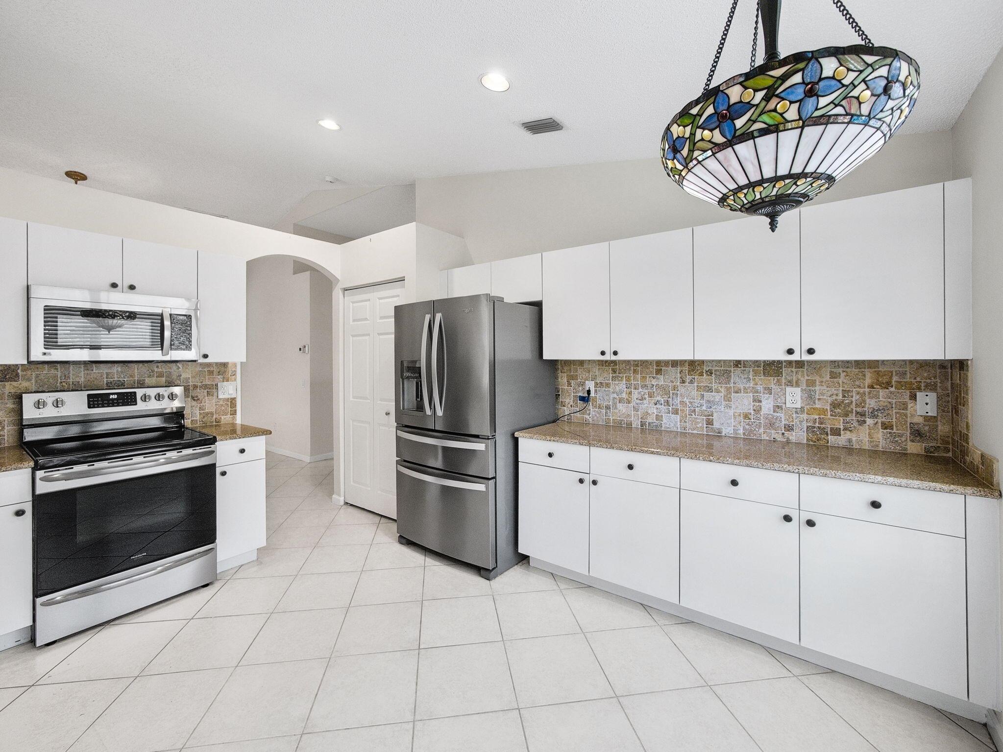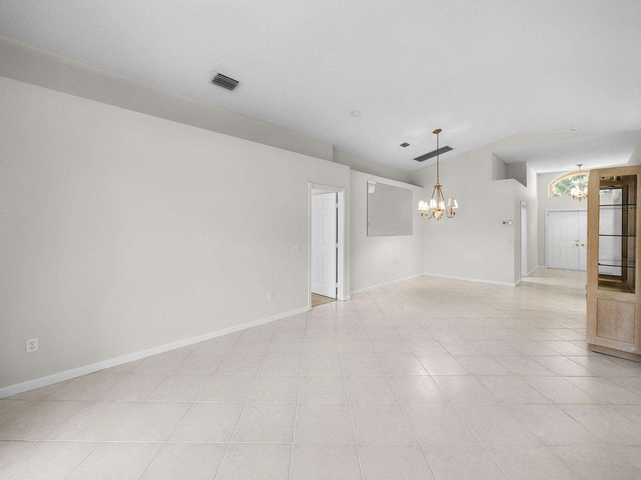 Coral model home in the highly sought-after 55+ community of Valencia Lakes, offering an unparalleled resort-style lifestyle. This spacious 3-bedroom home features a new roof (2023) and a desirable split-bedroom floor plan, with the third bedroom including a custom Murphy bed, providing versatility for guests or a home office. Nestled on a private lot with no rear neighbors, this waterfront home boasts breathtaking views and lush tropical landscaping. The open-concept eat-in kitchen is designed for both style and functionality, featuring granite countertops, upgraded cabinetry with plenty of storage, full backsplash, stainless steel appliances, & a family room just off the kitchen. The great room seamlessly connects the dining & living areas, creating an inviting space for entertainment