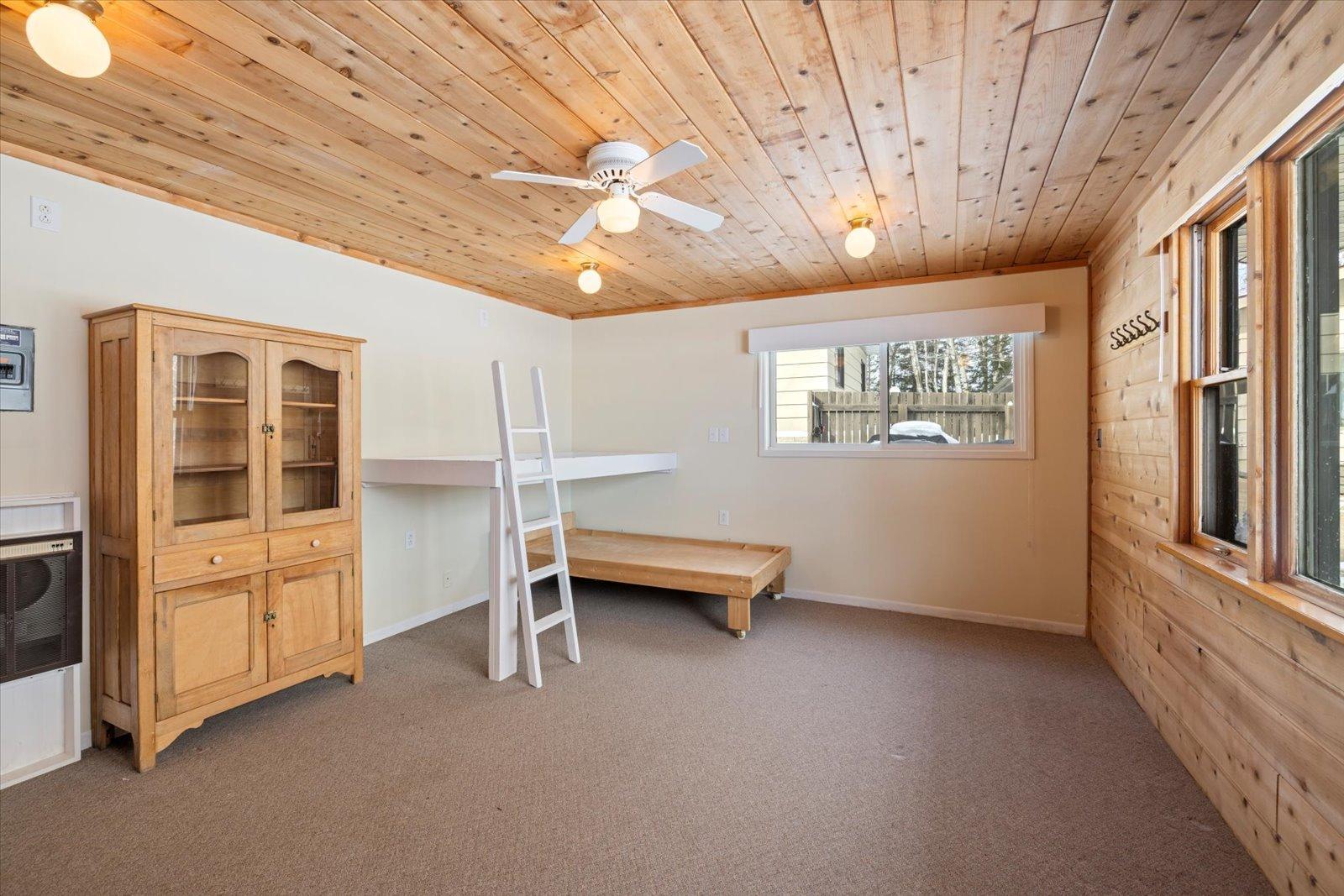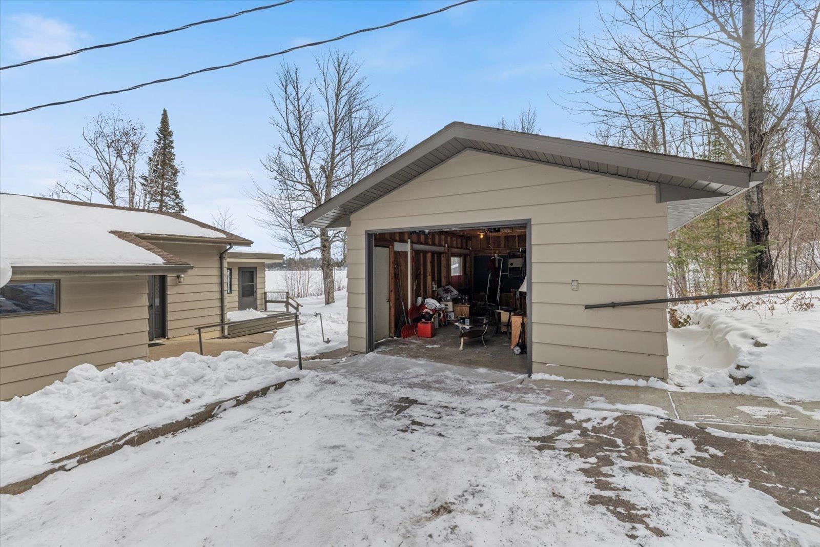 Set on Big Sturgeon in the Side Lake Chain, this lake property offers the kind of space and privacy many buyers travel north to find. With approximately 7.8 acres and 776 feet of shoreline, plus public land bordering portions of the parcel, the setting provides a true up-north feel with room to spread out. The home sits close to the water, allowing lake views from the main living areas. The main level includes three bedrooms, a bath, and an open kitchen, dining, and living space, along with an enclosed three-season porch overlooking the lake. The walkout lower level adds a recreation area, updated bath, wood-burning fireplace, and flexible guest space. Outside youll find mature pines, a sandy swimming area, private driveway, a bunkhouse with sauna, and multiple outbuildings including a heated 2832 garage everything needed for weekends at the lake or extended stays.