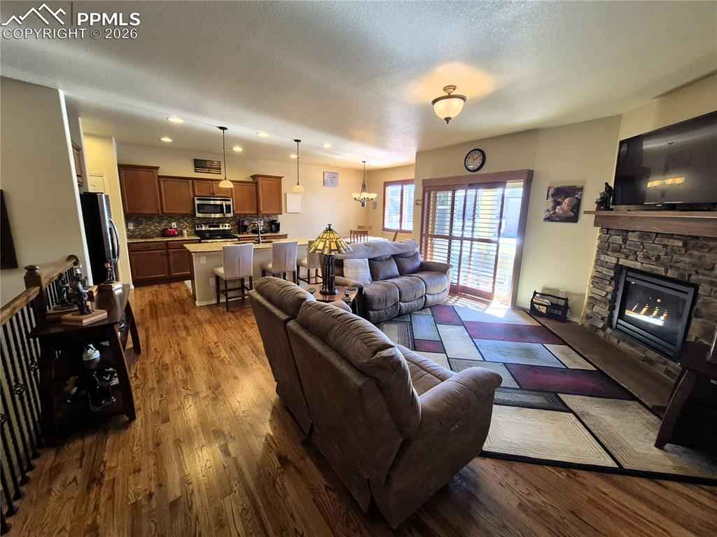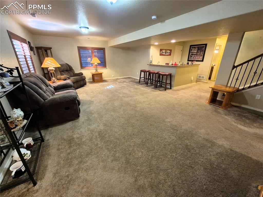 This like-new 4-bedroom, 3-bath residence is ideally located in desirable Northeast Colorado Springs, offering both comfort and convenience. The main level features an open-concept design with a spacious living room centered around a cozy fireplace, flowing seamlessly into the kitchen and dining area. The kitchen includes a breakfast bar and ample space for everyday living or entertaining. Laundry is conveniently located just off the garage.xD;xA;xD;xA;The primary suite is thoughtfully positioned on the main level and offers a private bath and walk-in closet. A second bedroomx2014;perfect for a home office or guest roomx2014;is also located on the main level, along with a full bath. Step outside to the back patio and enjoy stunning views of Pikes Peak, creating the perfect setting for relaxing or hosting guests.xD;xA;xD;xA;The fully finished lower level expands the living space with two additional bedrooms, a full bath, a wet bar, and a large storage areax2014;ideal for entertaining, guests, or multi-generational living.xD;xA;xD;xA;Conveniently located near Powers and Marksheffel, with easy access to dining, churches, schools, shopping, parks, and hospitals. A sought-after location, excellent condition, and well-designed layout make this home a must-see.