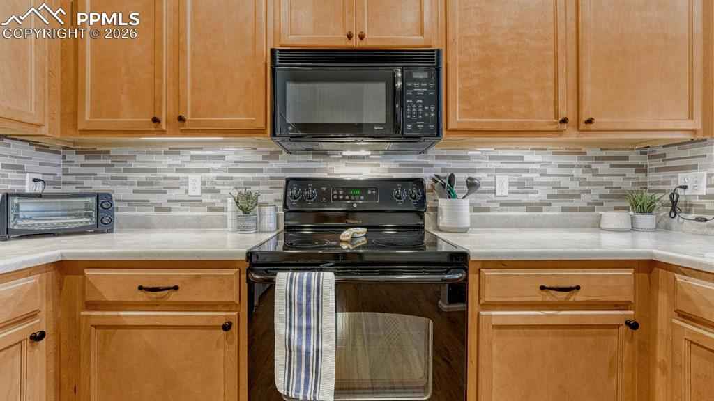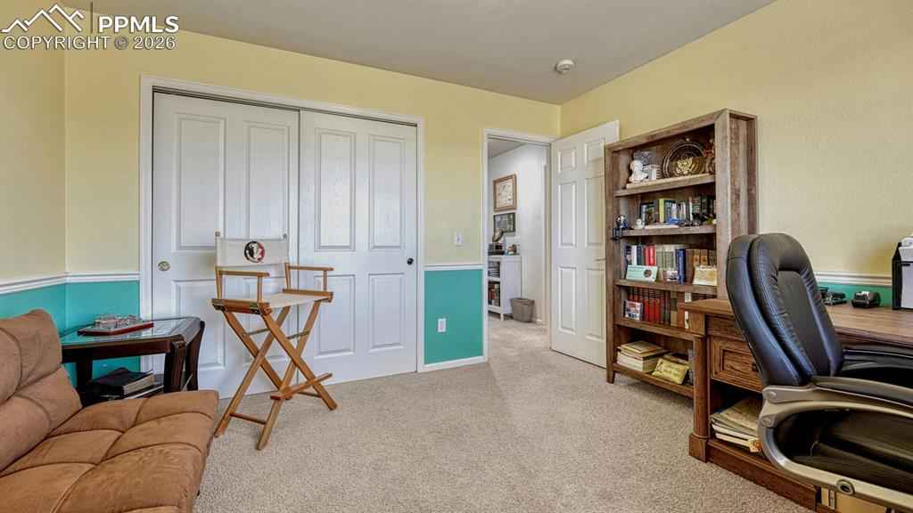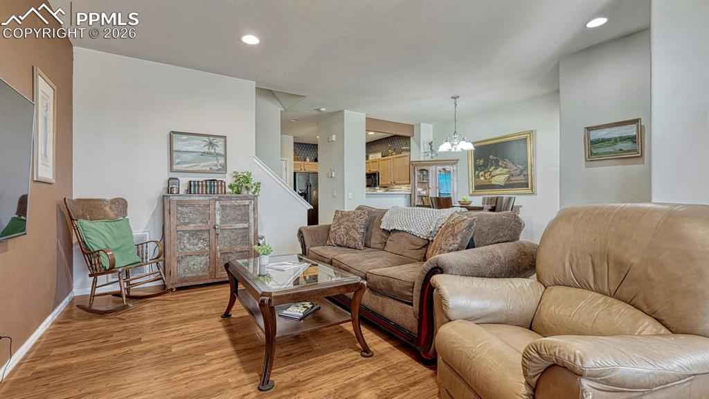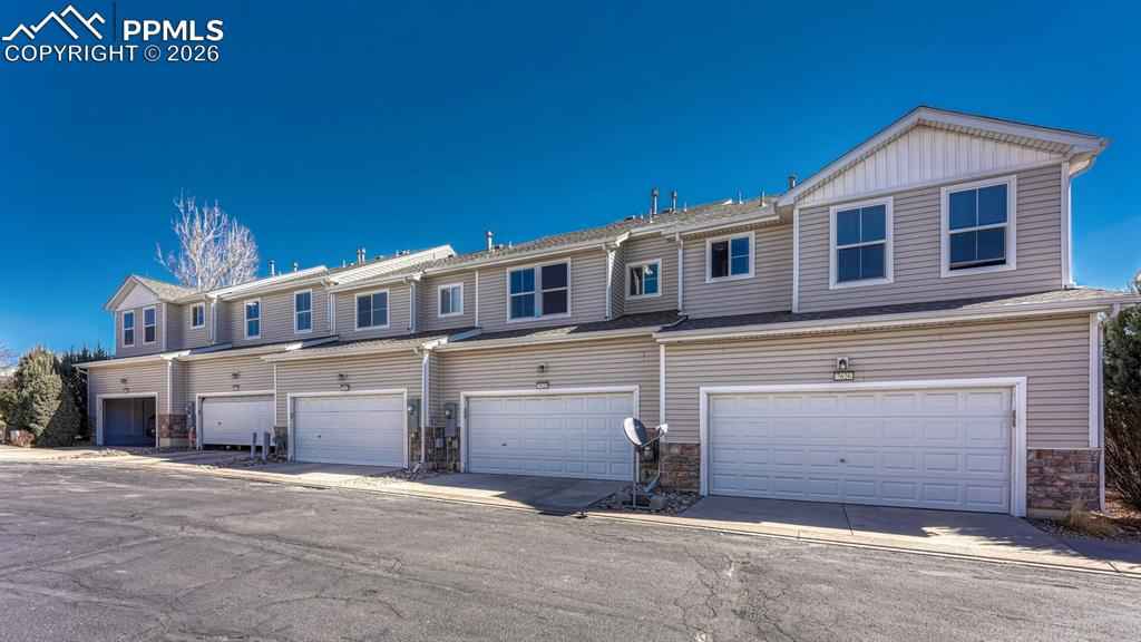 Move-in ready townhome offering comfortable, low-maintenance living! This well-cared-for 2-bedroom, 2.5-bath home features thoughtful updates and a functional layout designed for convenience and ease. The main level showcases a welcoming living and dining area, and a kitchen highlighted by a tile backsplash, generous pantry, and additional under-stairs storage. Upstairs, the spacious primary bedroom features vaulted ceilings and a large walk-in closet. Both bedrooms have access to full bathrooms, and the laundry room is conveniently located between the bedrooms on the upper level. A half bath on the main floor adds extra flexibility for guests. The attached two-car garage, located just off the kitchen, provides easy access during Coloradox2019;s colder months. With a manageable footprint and well-maintained interior, this home offers a lock-and-leave lifestyle, making it a great option for those who prefer to spend less time on upkeep and more time enjoying Colorado adventures or travel. Located across from a park and open green space, there are convenient opportunities to enjoy fresh air, walking paths, or a relaxing picnic just steps from your door. With quick access to I-25, Fort Carson, Peterson Space Force Base, shopping, dining, and outdoor recreation, this home provides an ideal balance of convenience and lifestyle.