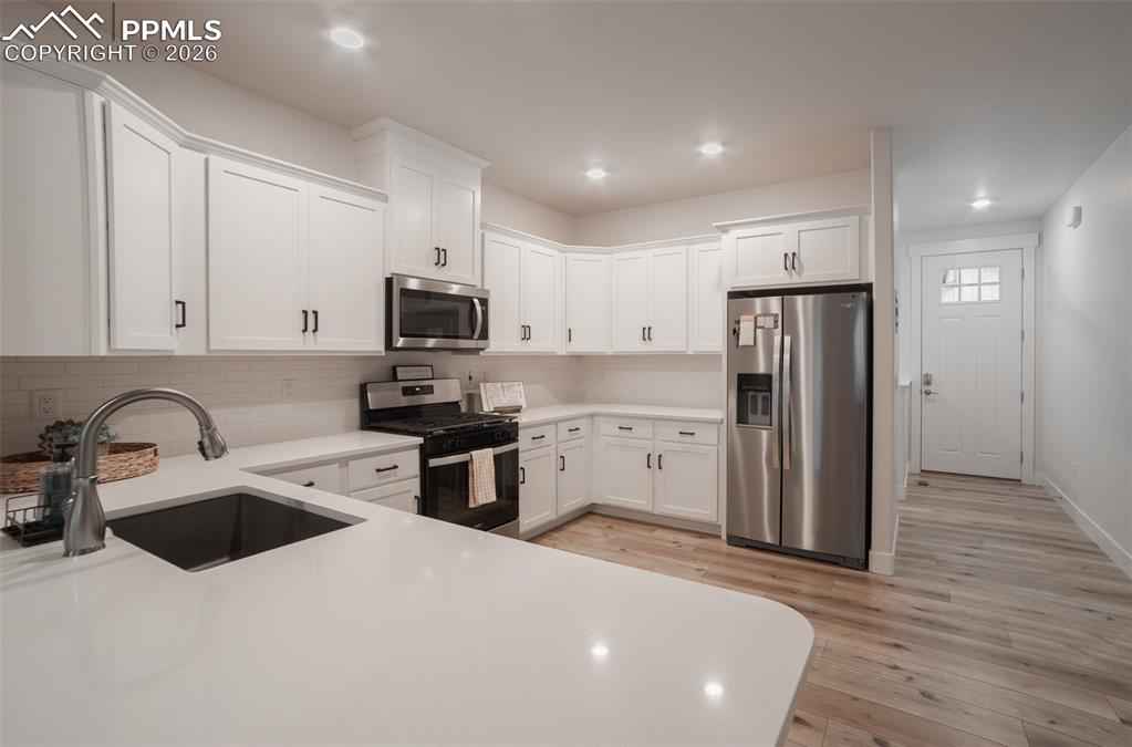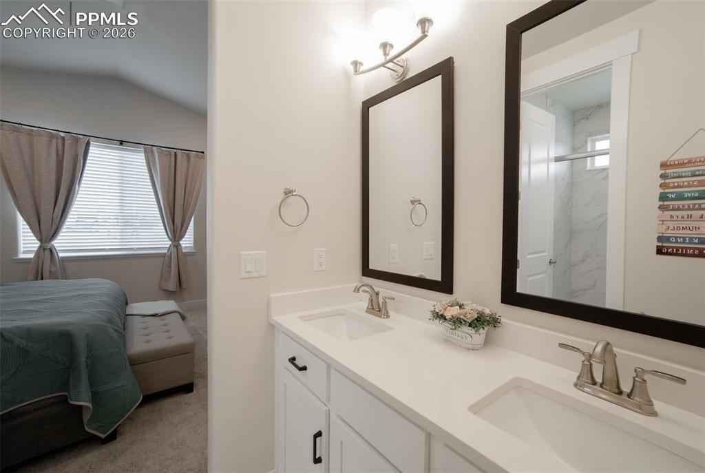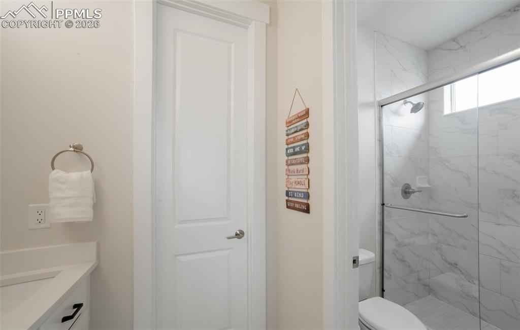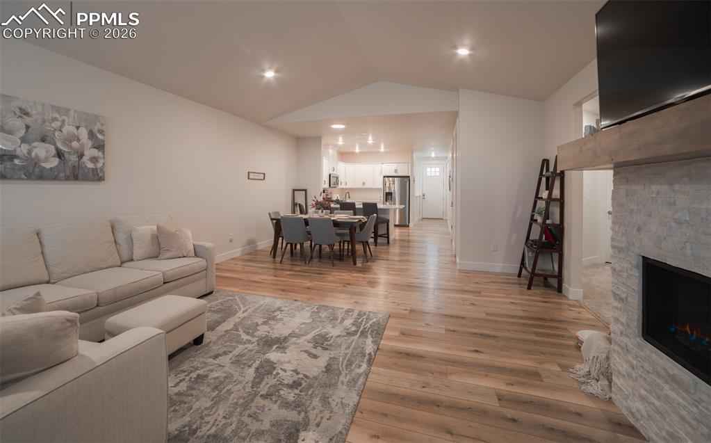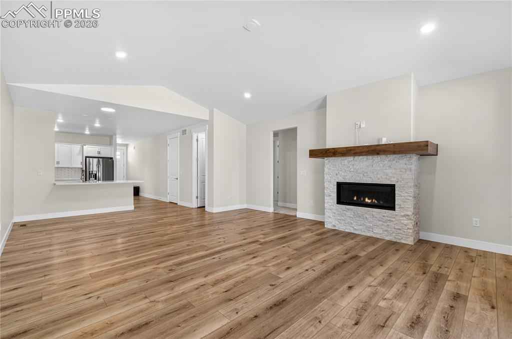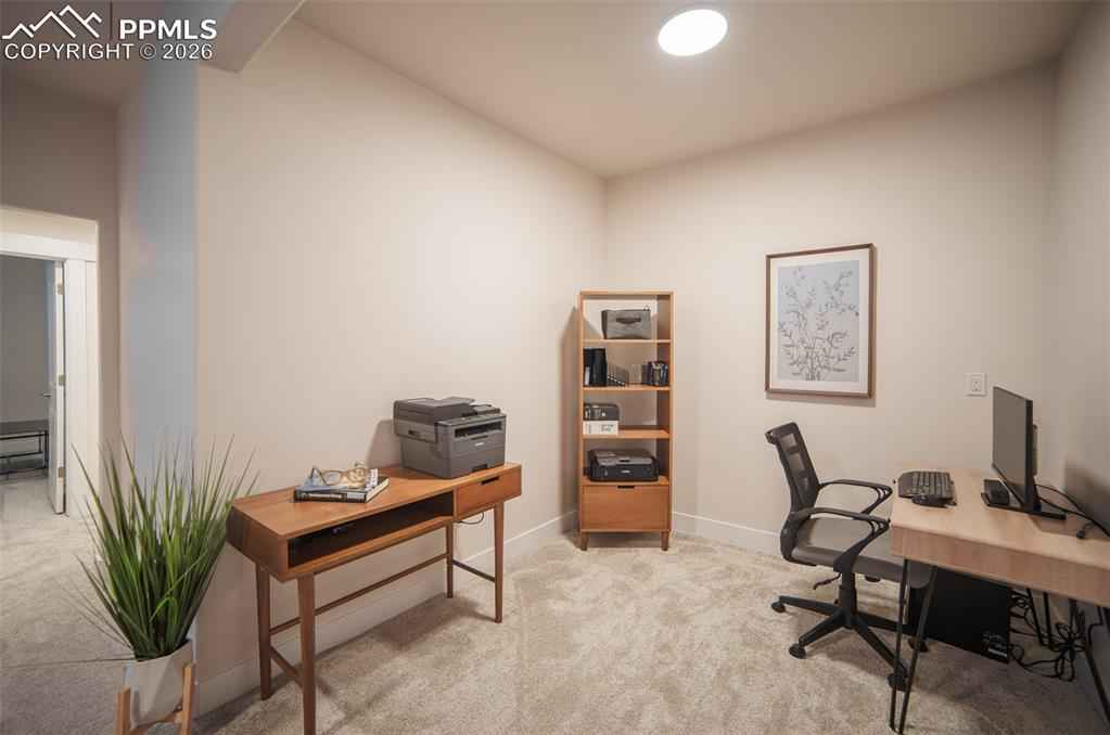 Welcome to your "like-new" Patio home with luxurious main level living, situated in a highly desirable northeast Colorado Springs location. Upon entry instantly feel the warmth of this well-maintained home as you are greeted with 9+ft ceilings and modern finishes throughout. The open concept floorplan guides you through the modern chef's kitchen highlighted with soft close cabinets, beautiful quartz countertops, and a massive walk-in pantry. Hand-troweled walls and LVP floors accompany you past the dining area into the expansive living room with 12ft+ vaulted ceilings, gas fireplace, & gleaming stonework. The upscale touches continue through the 8 ft doorways on the main level & to the 2 main level bedrooms including a well appointed primary suite with its own separate vaulted ceiling, brick accent wall & lets not forget the primary bathroom with double vanities, walk-in shower, and walk-in closet. Moving to the fully finished basement you will find a large rec room with multiple flex spaces for a workout area or office, and 2 more bedrooms with a full bathx2013;great for guests or expanded living! This home comes well-equipped with a whole house humidifier, radon mitigation system, washer/dryer, EV charging outlet, and ethernet wiring throughout making it absolutely move in ready. Conveniently located off the Woodmen corridor, the home has easy access to some of the best shopping, dining, and entertainment in the area. Finally the HOA handles snow removal of all main roads and sidewalks so you can spend more time enjoying the homex2019;s many amenities. Donx2019;t miss out on the chance to make this beautiful Home all yours!