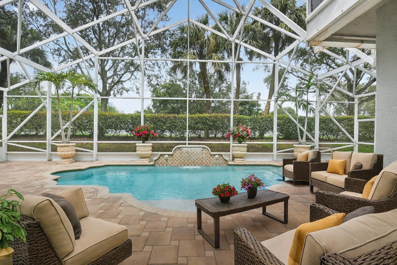 Presenting the largest model in the prestigious guard-gated community of Avalon Estates, this residence offers 2,751 square feet of living space. The home features three bedrooms, two and a half baths, an office, a formal dining room, and an upgraded kitchen with granite countertops. Enjoy a screened-in pool on a private lot for added comfort and relaxation. The recently renovated clubhouse provides an array of amenities, including an oversized pool, spa, fitness center, pickleball and tennis courts, billiards, card room, and theater. Additionally, homes in this community are professionally painted every seven years by the HOA as part of the maintenance program. One time capital contribution due at closing. A few of the photos have been virtually staged.