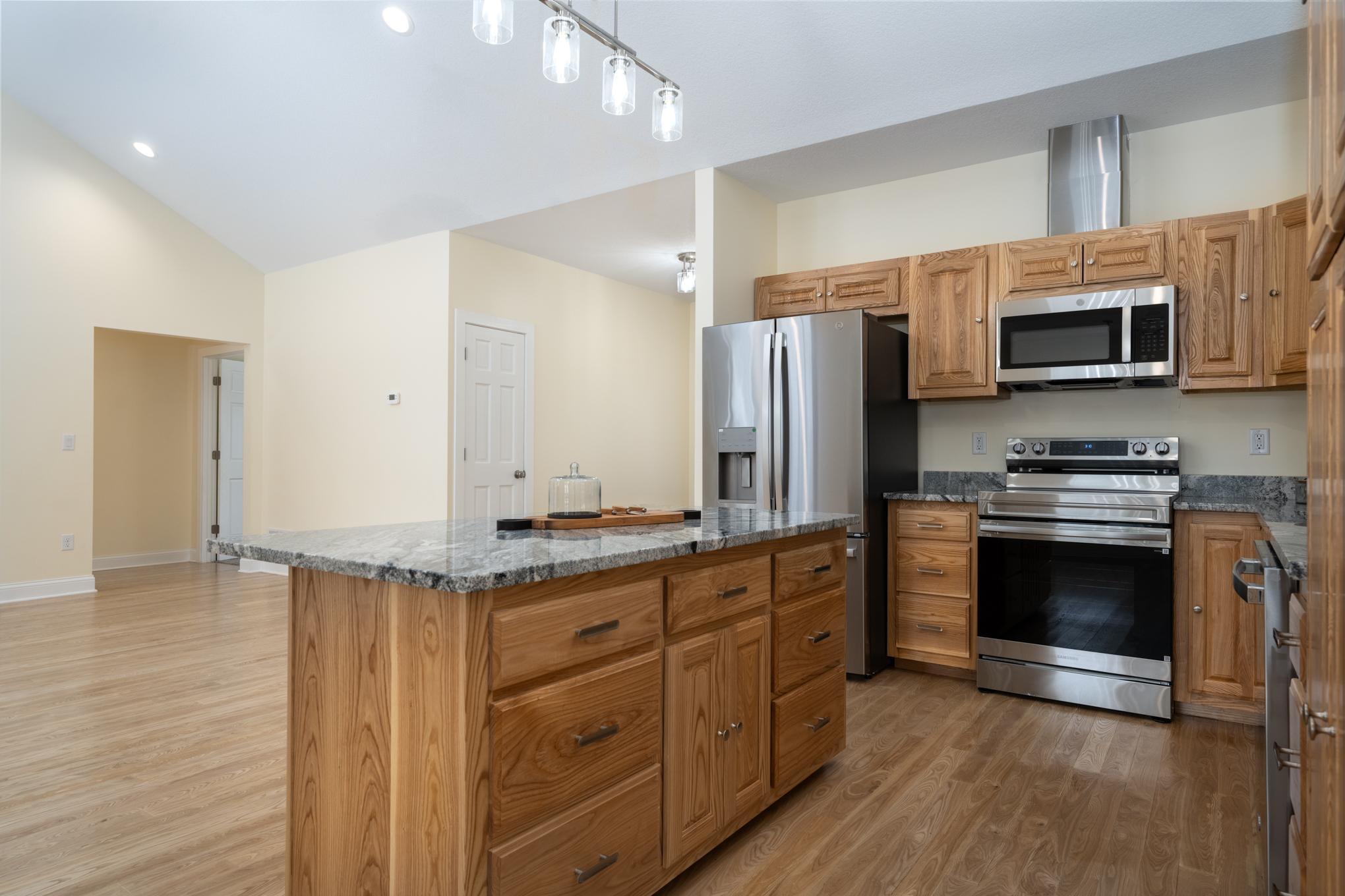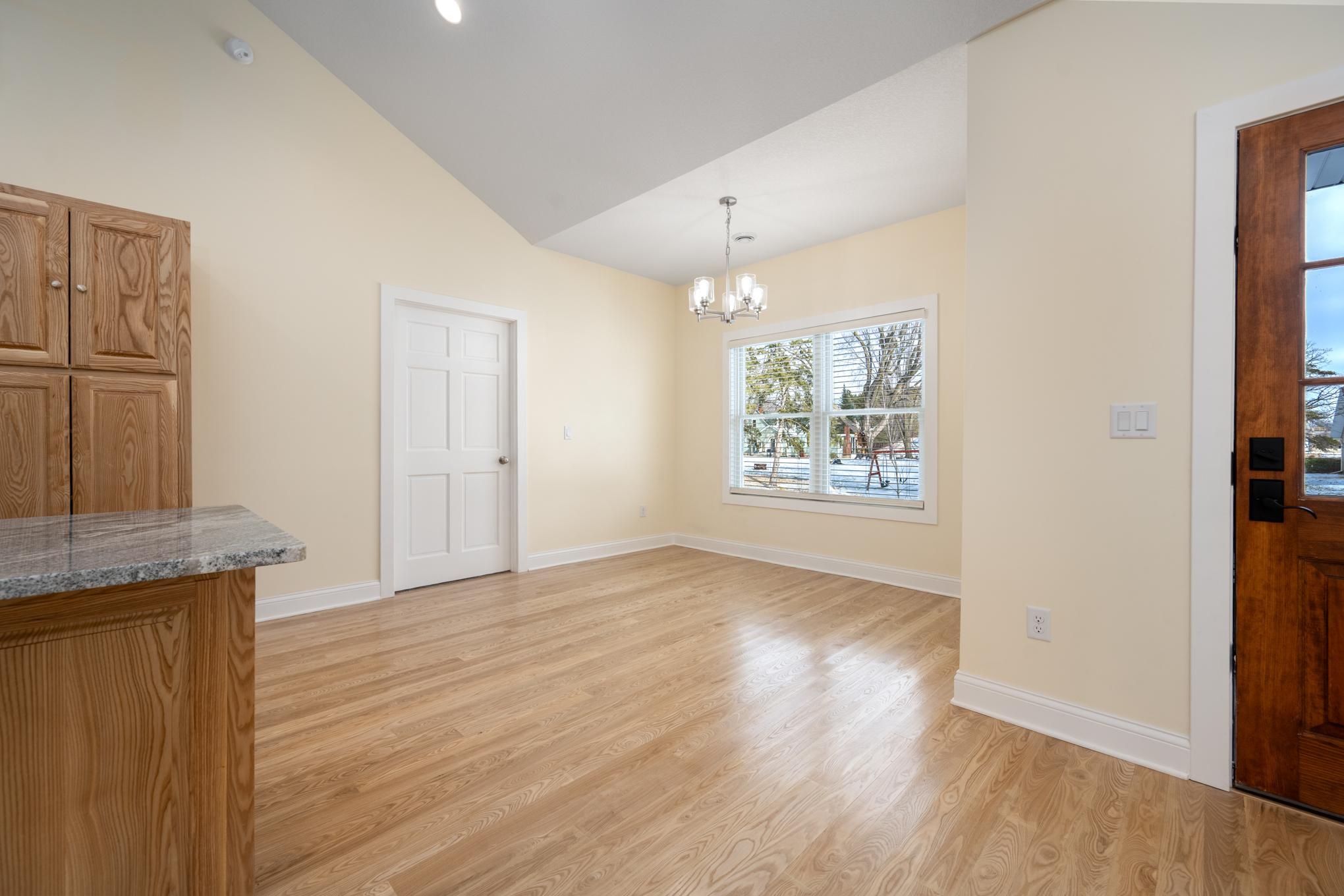 Experience the ease of true single-level living in this 1,500 sq ft new construction home. Fresh and thoughtfully designed with no stairs and all spaces on one level including bedrooms, laundry, and mechanicals. The open main living area and kitchen features vaulted ceilings; with granite countertops, Black Ash cabinetry, and matching Black Ash hardwood floors and millwork. A wonderful split-bedroom design for separation between the primary suite and additional bedrooms. The primary suite includes a walk-in closet and en suite bathroom. Enjoy the convenience of an insulated and heated two-car attached garage. The home is located on a cul-de-sac with limited through traffic. Plenty of high-end upgrades were thoughtfully included in this home--just for you!
