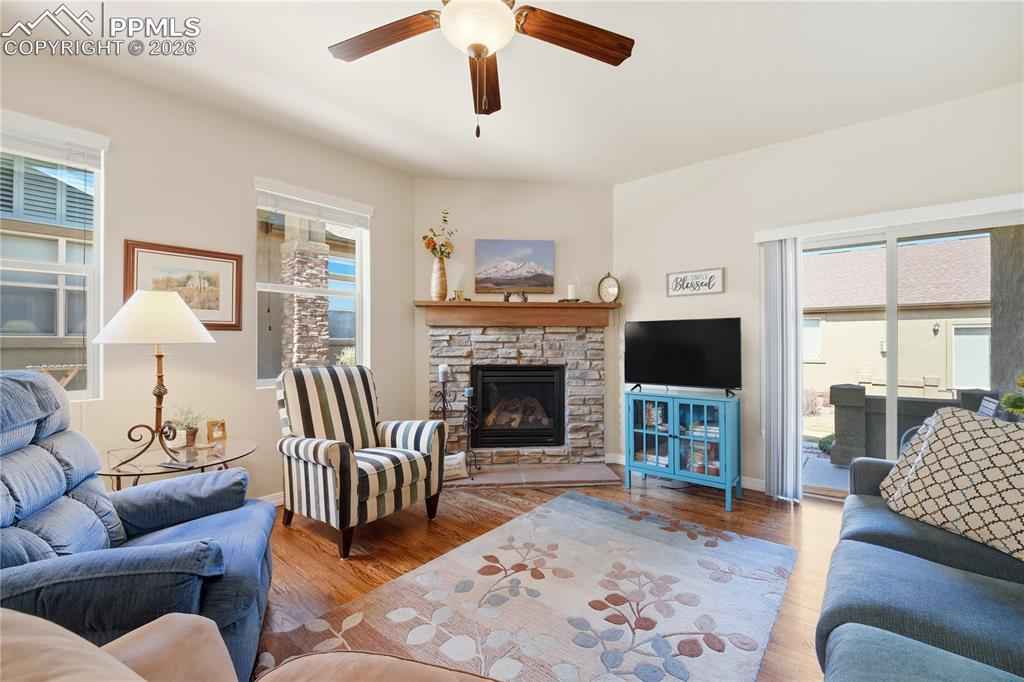 Welcome to This Light and Bright Ranch-Style Townhome Located in the Desirable Carriages at Indigo Ranch Community, Where Thoughtful Design and Lower-Maintenance Living Come Together Beautifully. The Attractive Stucco and Stone Exterior Creates Inviting Curb Appeal, While Most of the Well-Landscaped Community is Carefully Maintained by the HOA. Step Inside to Discover an Open and Airy Floor Plan with the Kitchen, Dining, and Living Areas Seamlessly Connected, Perfect for Both Everyday Living and Entertaining. Extensive Hardwood Flooring Flows Through Most of the Main Level, Adding Warmth and Elegance Throughout the Space. The Living Room Features a Cozy Gas Heat & Glo Fireplace, Creating a Comfortable Gathering Place. The Gourmet Kitchen Offers Both Style and Function with Beautiful Slab Granite Countertops, Stainless Steel Appliances, a Center Island, and an Ample Pantry for Storage and Organization. Thoughtful Touches Continue Throughout the Home, Enhancing Both Comfort and Livability. The Expanded Primary Bedroom and Sitting Area Provides a Spacious Retreat with an Adjoining 3/4 Bathroom Featuring Granite Countertops, Dual Under-Mount Sinks, and Quality Finishes. Conveniently Located Across the Hall from the Full Guest Bathroom on the Main Level is the Laundry Area. Central Air Conditioning Keeps the Home Comfortable Year-Round. The Fully Finished Basement Expands the Living Space with a Large Recreation Room, Perfect for a Family Room, Game Room, Media Area, or Flexible Living Space to Fit Your Needs. Additional Highlights Include a Two-Car Garage With Some Attached Cabinets That is Drywalled, Painted, and Trimmed, a Front Storm Door, and a Beautiful Partially Covered Back Patio, Ideal for Relaxing Outdoors. With Luxe Finishes, Thoughtful Details, and a Well-Maintained Community Setting, This Home Offers Comfortable Living in One of Indigo Ranchx2019;s Most Appealing Townhome Communities.