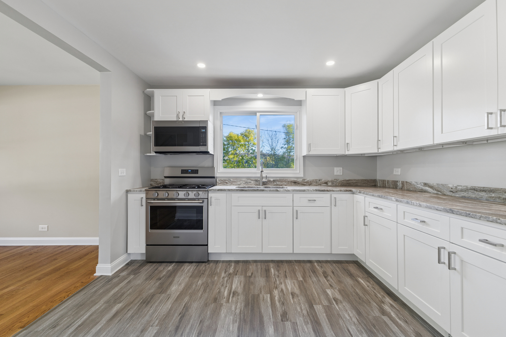 Step into comfort and style with this beautifully refreshed 4-bedroom, 2-bath home in Bridgeview! You'll love the open layout that makes everyday living and entertaining easy. The kitchen is a true highlight featuring gorgeous white shaker cabinets, soft-close drawers, granite countertops, and new stainless steel appliances. Both bathrooms have been updated, and new flooring and carpet bring a fresh, modern feel throughout. The huge backyard is ready for summer gatherings, gardening days, or simply relaxing. Newer: Furnace, A/C, hot water tank, some windows and garage siding. ALSO- taxes have been approved and lowered. Located on a peaceful street with plenty of privacy, close to parks, walking paths, schools, shopping, and convenient access to I-294. Plus, you're just minutes from SeatGeek Stadium, Swanson Center, and Chicago Ridge Mall. Move right in and enjoy-this home is completely ready for you!