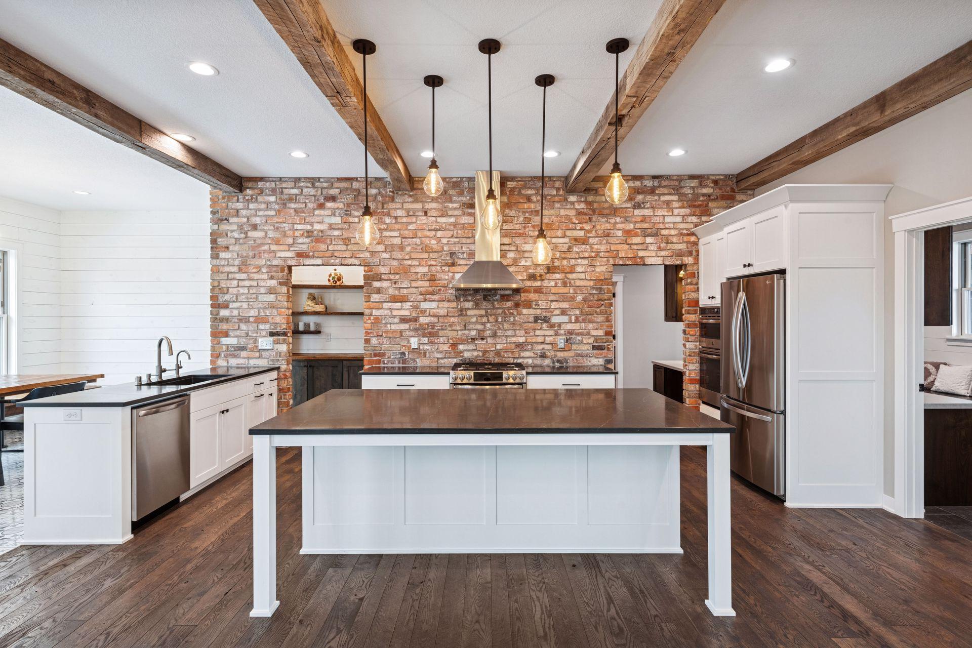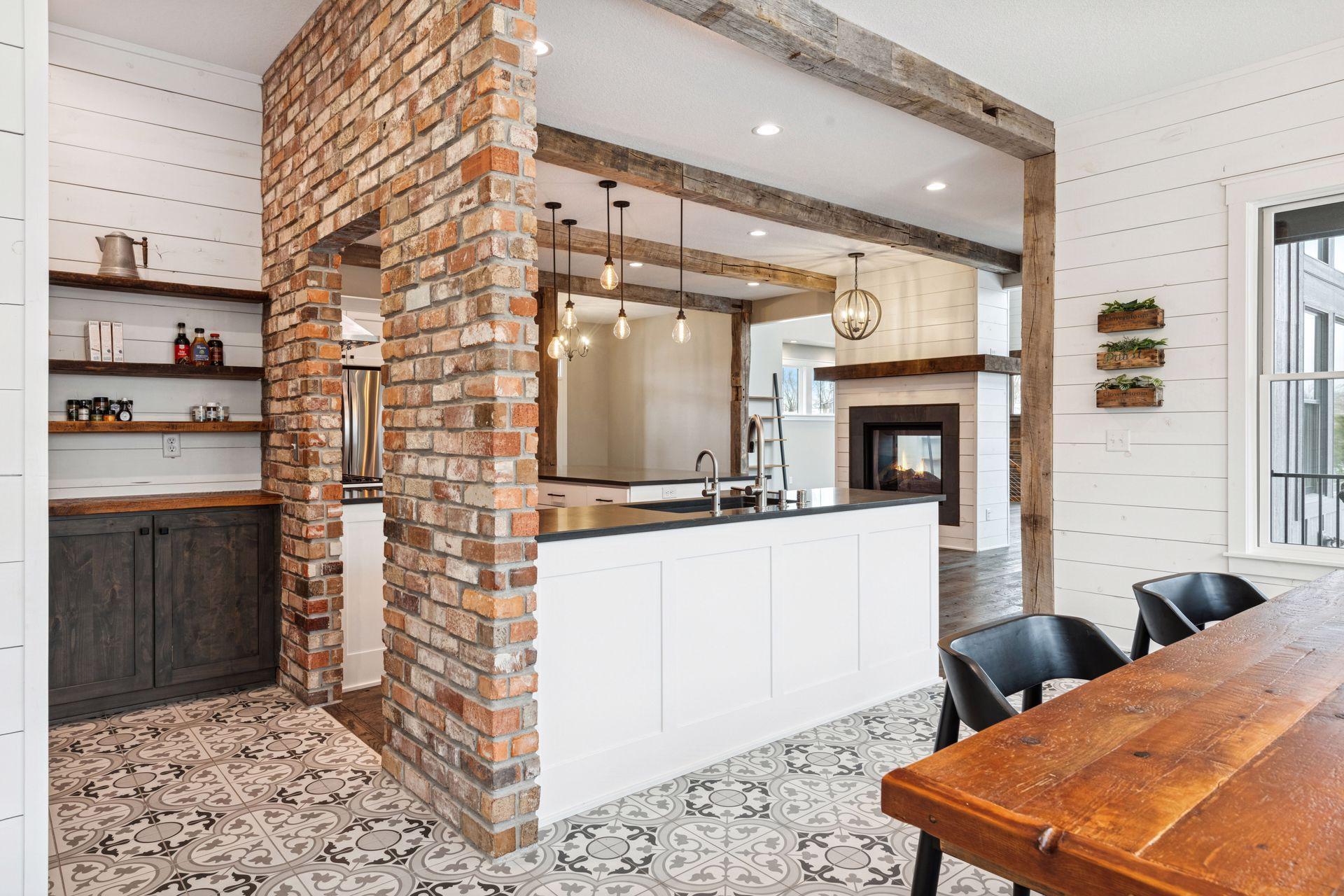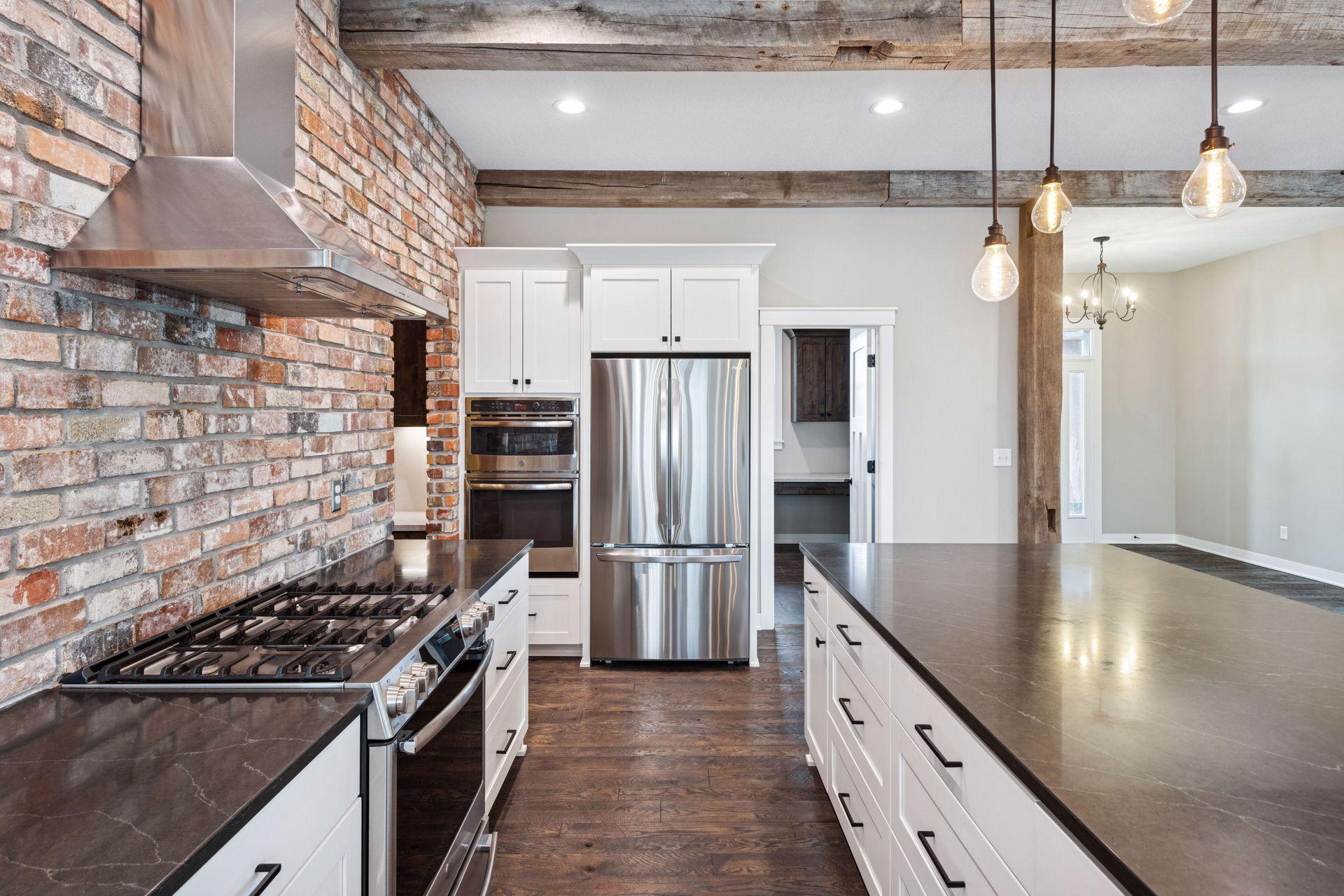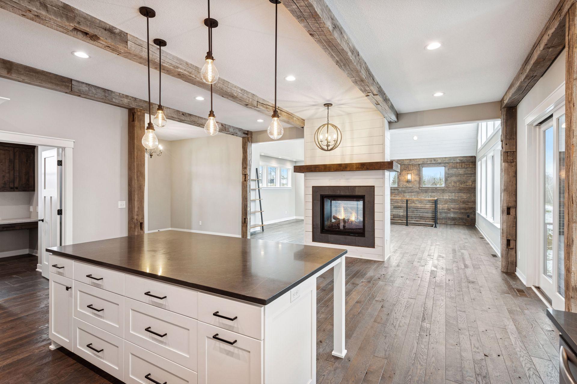 Stunning custom home set on 1.6 wooded acres, showcasing high-end and reclaimed finishes that create a refined rustic-modern aesthetic. The gorgeous open-concept kitchen features a center island, stainless steel appliances, custom wood beams, a reclaimed brick accent wall, and a double-sided fireplace. The adjoining dining area is thoughtfully designed with a hand-hewn oak bench, barn-wood wall paneling, and a walk-in pantry. The living room offers vaulted ceilings and breathtaking wooded views, while the three-season porch provides a serene, protected space to enjoy the outdoors. An expansive mudroom with built-in storage leads to a deluxe laundry room and an attached 3-car garage. The main-level primary suite includes a box-vault ceiling, a luxurious ensuite bath, and an exceptional walk-in closet. The upper level provides flexible space suitable for a bedroom, playroom, studio, office, or a variety of needs. The lower level is designed for entertaining, featuring a spacious family room, reading nook, full kitchen, cherry-wood bar top, and a garage door opening to an outdoor bar and patio. Additional lower-level amenities include heated flooring, bedrooms, an exercise room, a full bath, and a second laundry area. A remarkable greenhouse connects to a heated workshop with a garage door leading to a fully fenced garden. The breathtaking 1.6-acre setting, surrounded by mature trees and unmatched privacy, offers an exceptional retreat that balances luxury, craftsmanship, and nature at its finest.