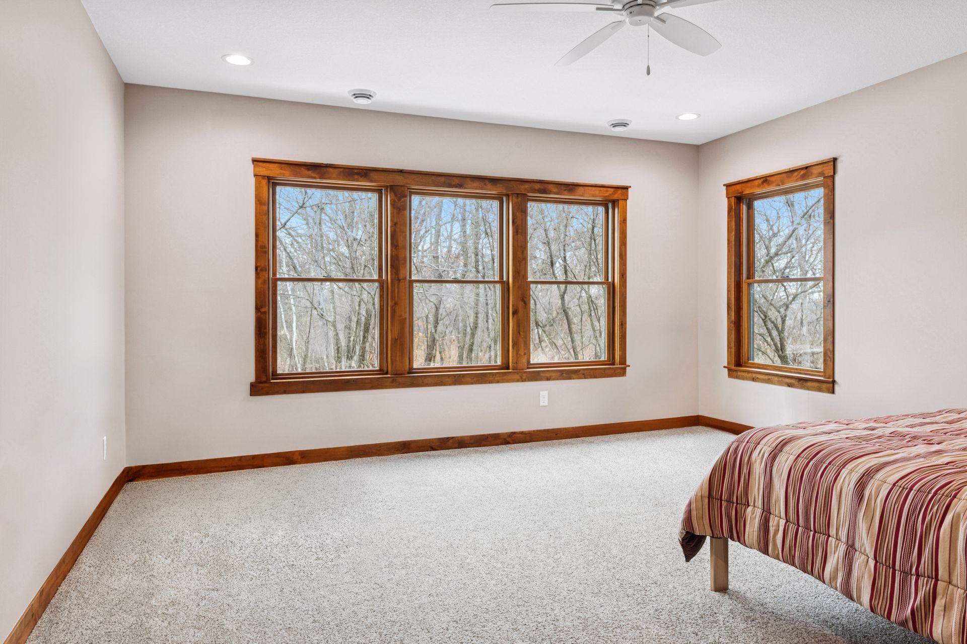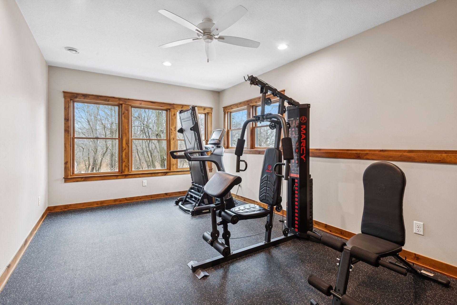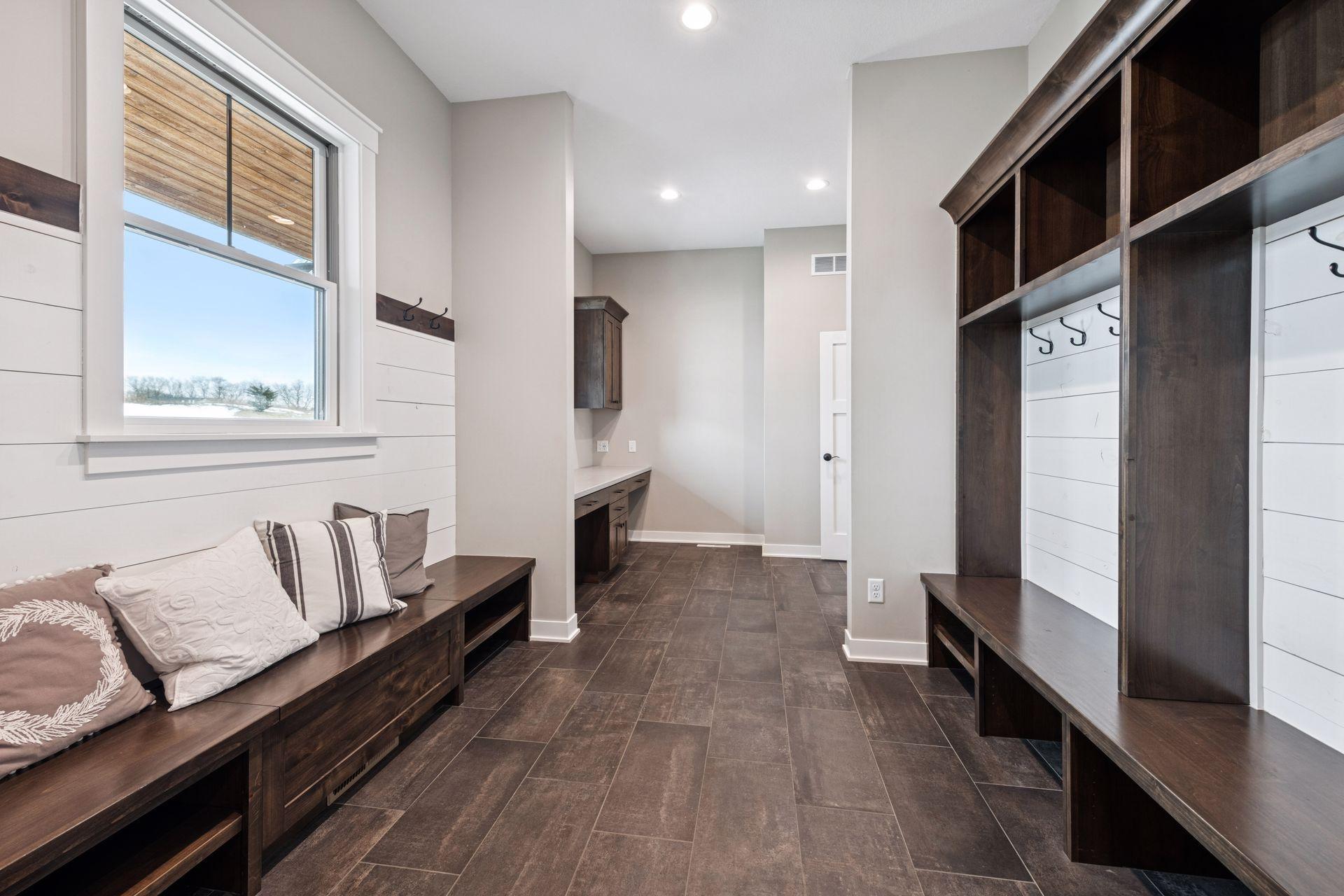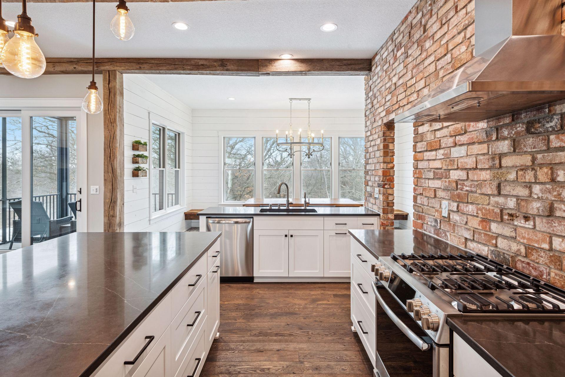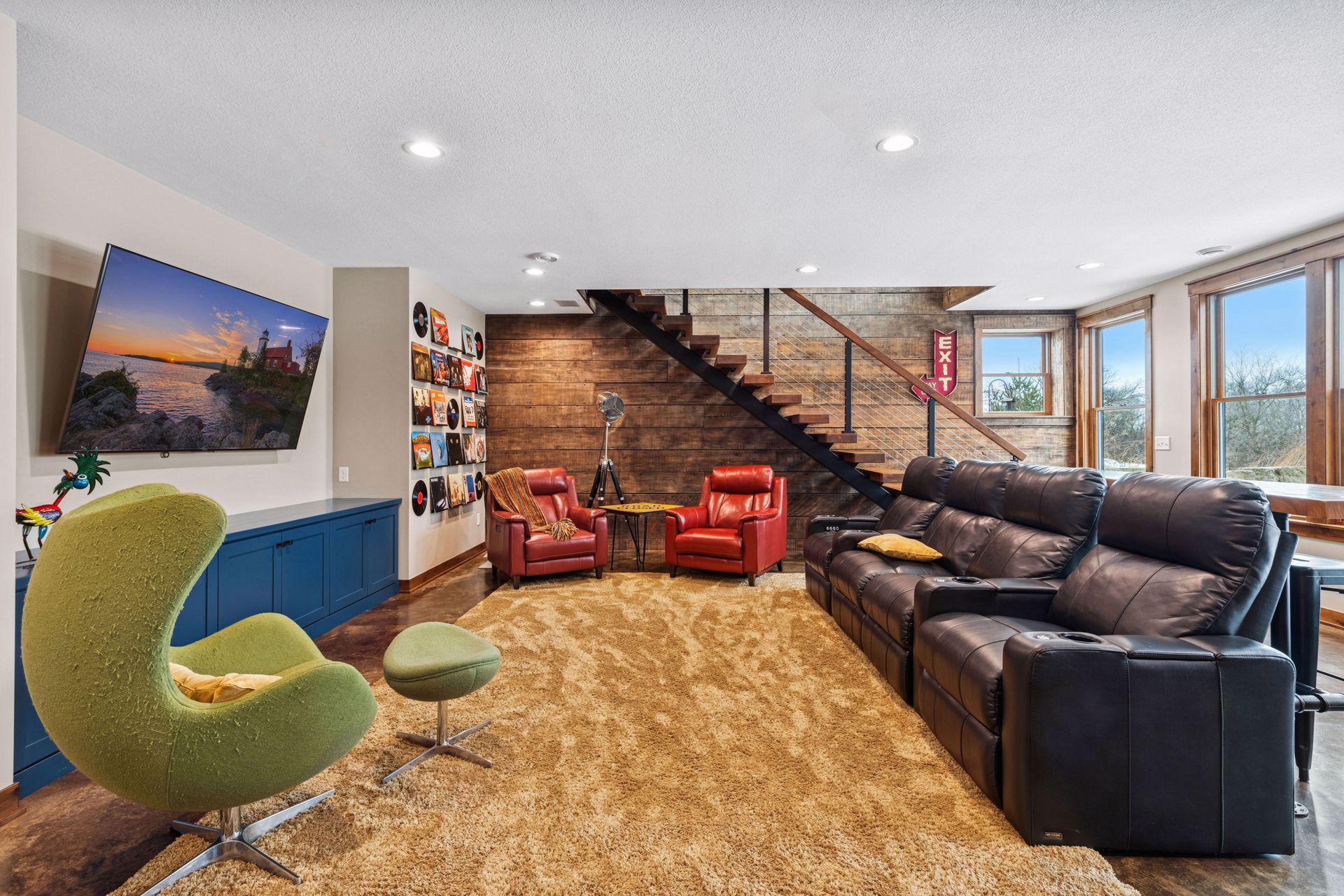 Stunning custom home set on 1.6 wooded acres, showcasing high-end and reclaimed finishes that create a refined rustic-modern aesthetic. The gorgeous open-concept kitchen features a center island, stainless steel appliances, custom wood beams, a reclaimed brick accent wall, and a double-sided fireplace. The adjoining dining area is thoughtfully designed with a hand-hewn oak bench, barn-wood wall paneling, and a walk-in pantry. The living room offers vaulted ceilings and breathtaking wooded views, while the three-season porch provides a serene, protected space to enjoy the outdoors. An expansive mudroom with built-in storage leads to a deluxe laundry room and an attached 3-car garage. The main-level primary suite includes a box-vault ceiling, a luxurious ensuite bath, and an exceptional walk-in closet. The upper level provides flexible space suitable for a bedroom, playroom, studio, office, or a variety of needs. The lower level is designed for entertaining, featuring a spacious family room, reading nook, full kitchen, cherry-wood bar top, and a garage door opening to an outdoor bar and patio. Additional lower-level amenities include heated flooring, bedrooms, an exercise room, a full bath, and a second laundry area. A remarkable greenhouse connects to a heated workshop with a garage door leading to a fully fenced garden. The breathtaking 1.6-acre setting, surrounded by mature trees and unmatched privacy, offers an exceptional retreat that balances luxury, craftsmanship, and nature at its finest.