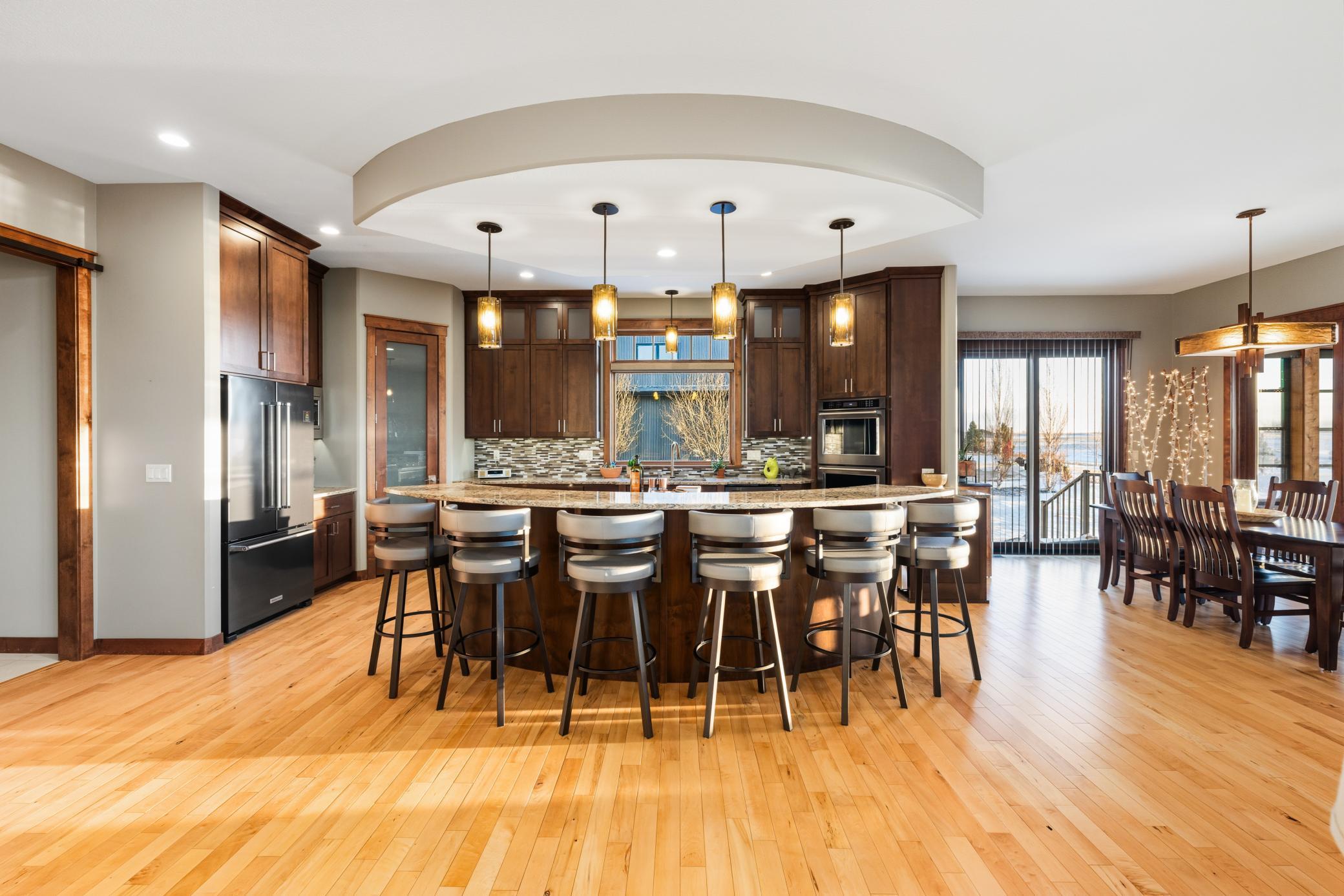 A rare opportunity to own an extraordinary residence where luxury design and effortless living come together. This impressive five bedroom four bath home offers true one level living with a beautifully appointed main floor mother in law suite, providing exceptional comfort and privacy. Perfectly positioned along the 15th hole of the Oxbow Country Club, the home captures breathtaking sunset views that feel straight out of a magazine.Inside, the expansive open concept floor plan is both elegant and inviting, ideal for refined entertaining or relaxed everyday living. Three distinct patios create multiple outdoor living experiences, while a gas fire pit sets the stage for memorable evenings. The lower level offers a spa like retreat with a private sauna located in the basement bathroom, adding a touch of everyday indulgence.Completing the home is a three stall attached garage with a bonus loft above the garage, a new dishwasher, two Tesla charging stations, and an electric dog fence. Set within an exceptionally peaceful neighborhood, this home delivers a rare blend of luxury, comfort, and setting. Opportunities like this are few and far between