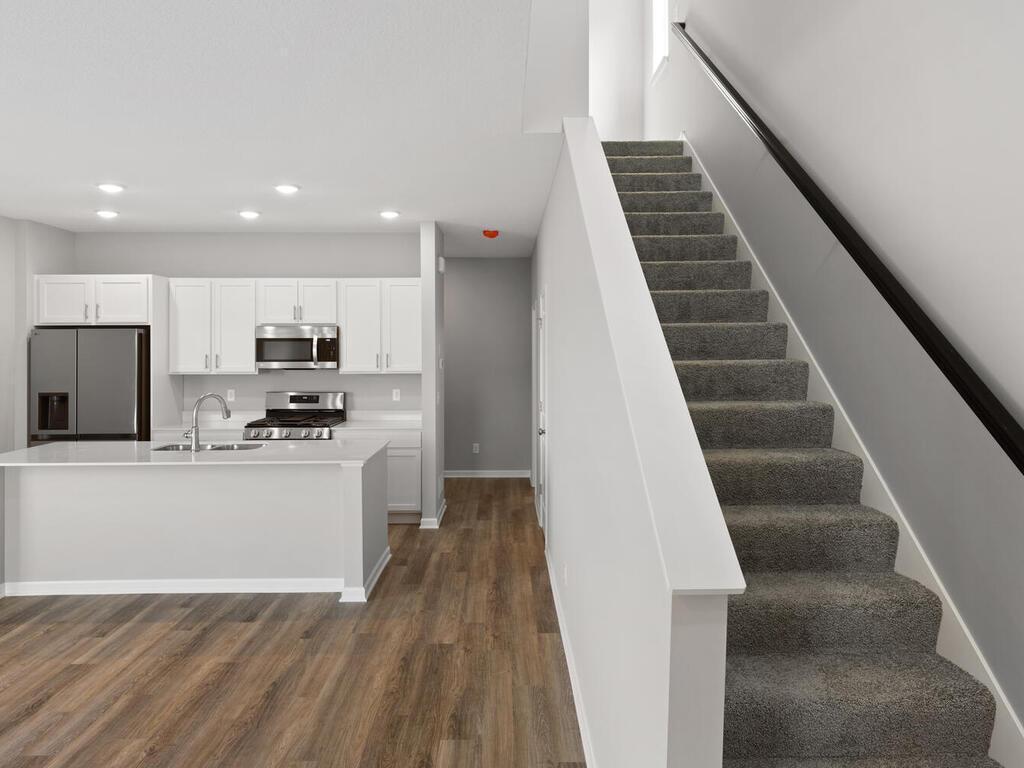 Heres a lifestyle-forward description that Enjoy walkable living near The Draw Park & Amphitheater, North Commons Park, trails, dining, shopping, and the Metro Transit station at The CORmaking commuting and weekend plans easy. Located in Waterfront Village, this pet-friendly community offers miles of trails right outside your door plus association-covered lawn care and snow removal for low-maintenance living.The Terrace floor plan features 4 bedrooms, 3 bathrooms, and bright open-concept living with 9-foot ceilings and luxury vinyl plank flooring. The kitchen includes an oversized quartz island, white cabinetry, and stainless steel appliances. The private owners suite offers a walk-in closet and ensuite bath, with additional bedrooms ideal for work, guests, or hobbies.***Ask about Flex Cash Promotion of up to $10,000 + 1% of the purchase price as a lender credit with preferred lender & title company with a closing by 4/31/2026.