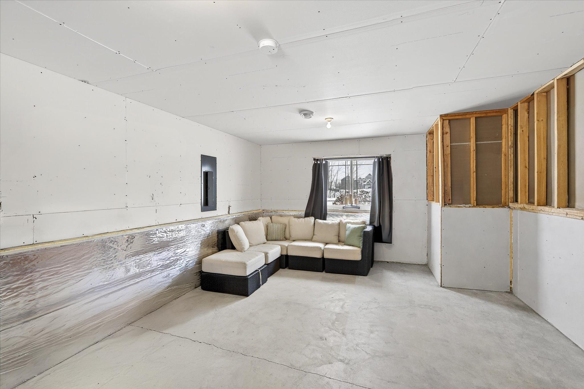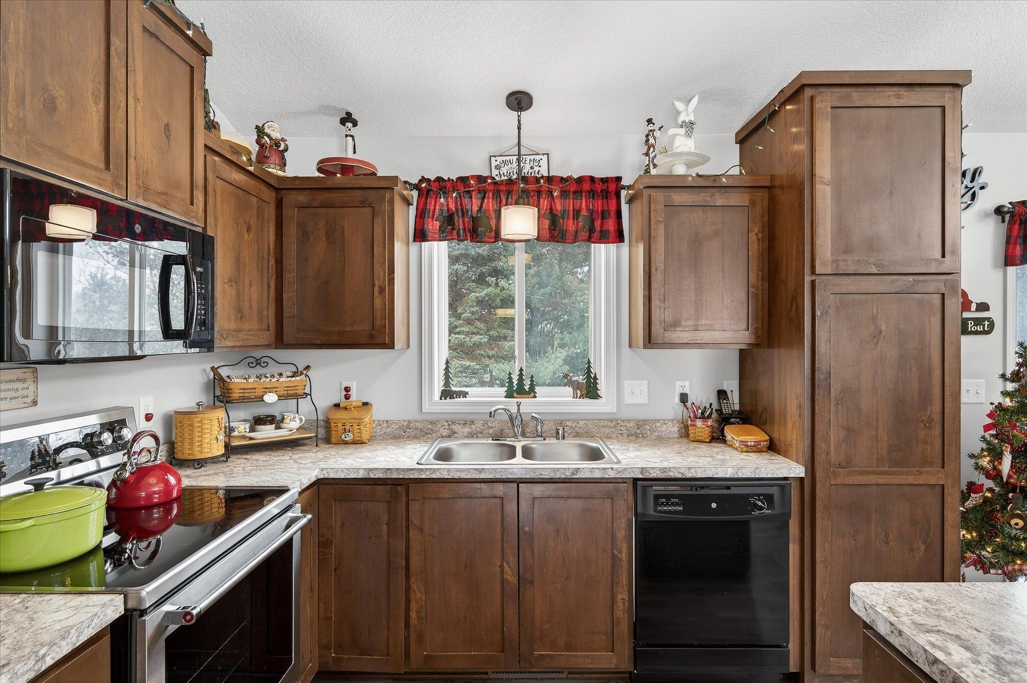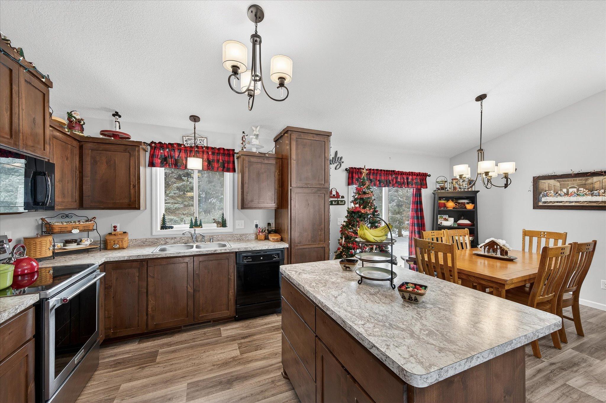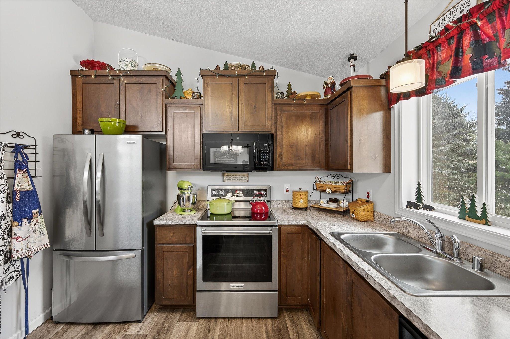Welcome to this lovable and charming home offering a desirable layout that features three bedrooms on one level and two full bathrooms, including a full primary suite with its own bath and huge double sink vanity. Vaulted ceilings, an inviting eat-in kitchen with center island, ample cabinet space, and a 2025 stainless French-door refrigerator and range. Attractive wood-look vinyl plank flooring, patio door in dining that will lead to a future deck! The lower level offers room for future additional living space and a bath! The extra deep 3-car garage offers rough-in for a future unit heater and concrete driveway! All of this situated on a desirable lot landscaped with many perennials, mature pines in rear yard and Rush Creek beyond the trees. Excellent location within 1 mile of I-35 for easy commuting north or south. Truly a wonderful place to call home! We look forward to your visit! Quick closing possible!
