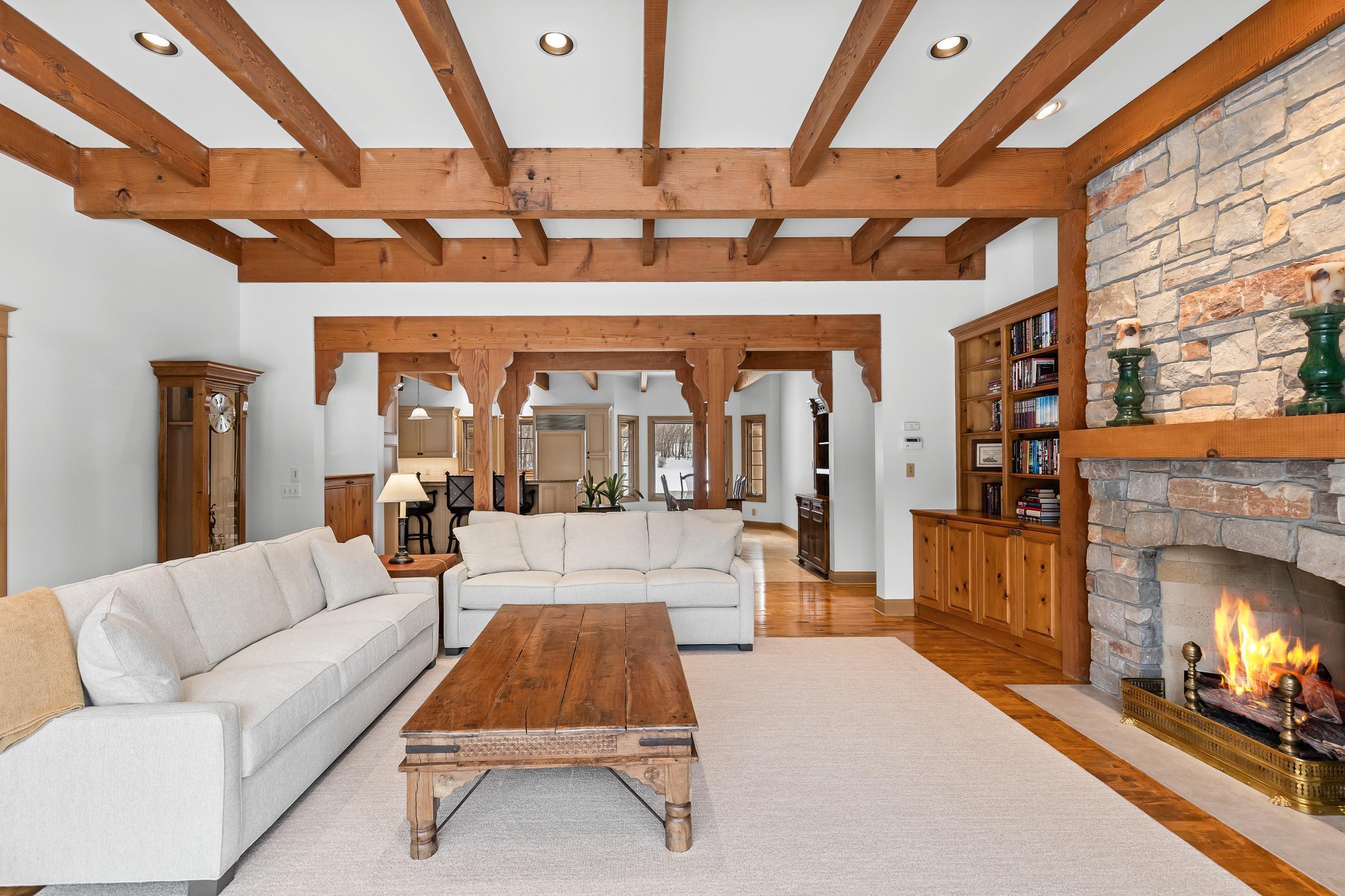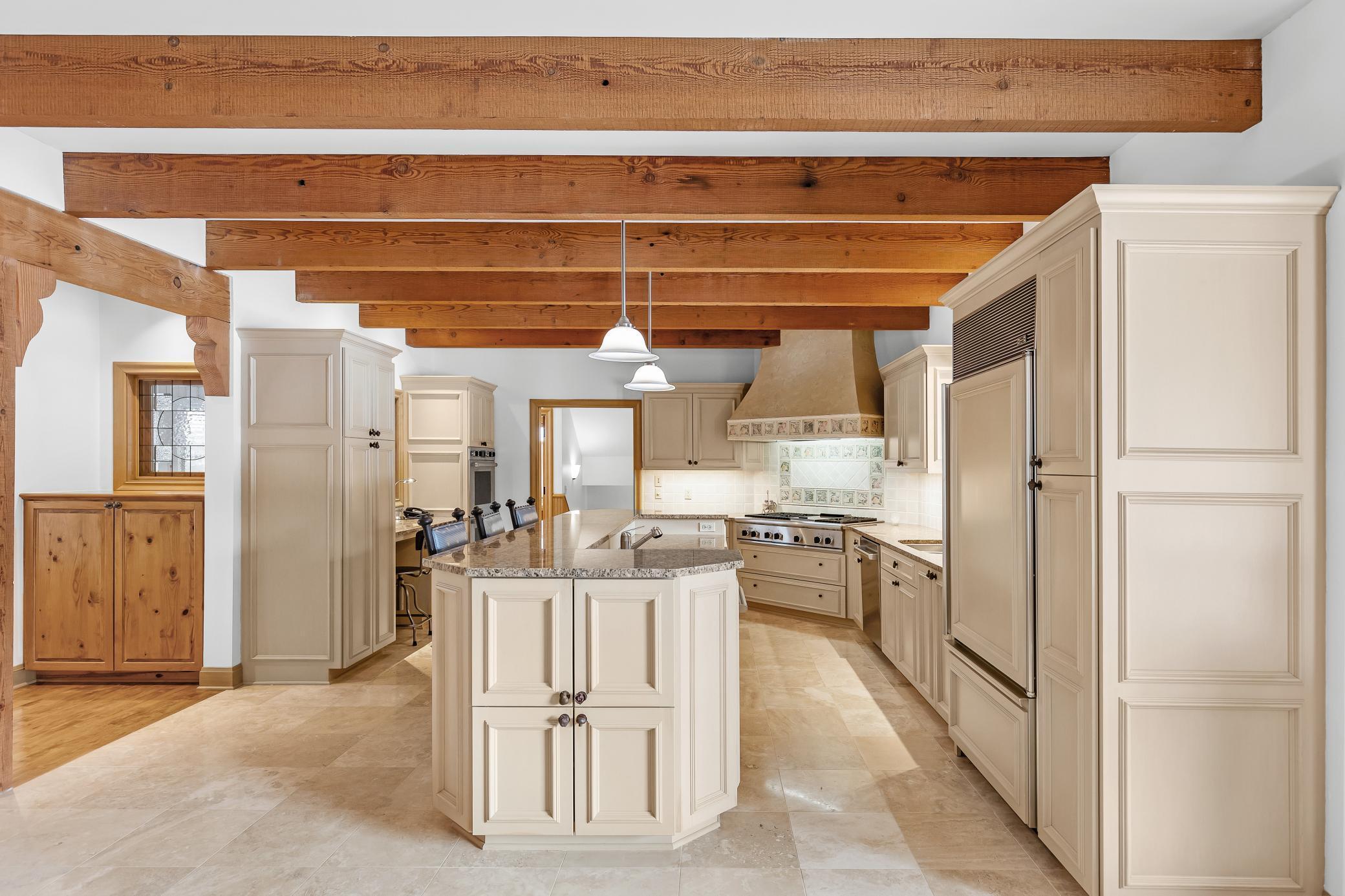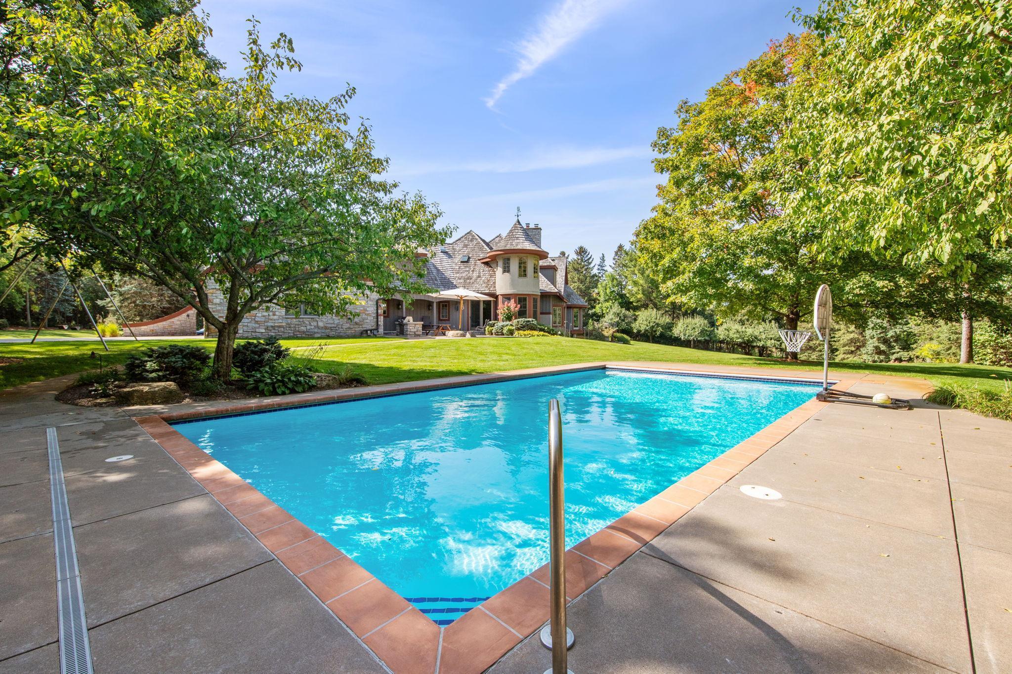 Privately tucked away at the end of a serene drive just minutes from Wayzata, this extraordinary one-owner estate rests on two breathtaking acres of level lawns, gardens, and storybook grounds. Custom built by Erotas and meticulously maintained, the residence offers over 10,000 square feet of timeless craftsmanship, architectural intention, and exceptional livability including 5+ bedrooms and 7 baths.Soaring ceilings adorned with hand-hewn beams crafted from reclaimed Lake Superior timber create warmth, scale, and a sense of enduring artistry throughout the home. Sunlight pours through expansive windows, revealing peaceful views from nearly every room and seamlessly connecting elegant interiors to the stunning landscape beyond.The main-level owner's suite is a true private retreat, featuring heated floors, steam shower, fireplace, private deck, and an expansive walk-in dressing space. Designed for both refined daily living and unforgettable entertaining, the home showcases an incredible, highly functional floor plan with dual staircases, elevator access, two laundry rooms, and beautifully flowing gathering spaces anchored by a chefs kitchen with exceptional pantry, spacious rear entry, and custom lockers.Recreation and wellness are elevated with an indoor sport court and viewing area, dedicated workout studio, sauna, game and media spaces, and a walkout lower level with fireplace and wet bar. Outdoors, a resort-style pool and charming pool house with bath create a secluded summer sanctuary, complemented by multiple patios, grilling terrace, and the remarkable privacy of the surrounding grounds.Upper-level bedrooms each offer distinctive architectural characterincluding a dramatic two-story suite with lofted study, a turreted bedroom retreat, and generous bonus spaces with potential for additional bedrooms or baths. Heated floors, exquisite millwork, and uncompromising quality speak throughout.A heated four-car garage completes this rare offeringan estate where privacy, craftsmanship, recreation, and natural beauty converge just moments from the heart of Wayzata.