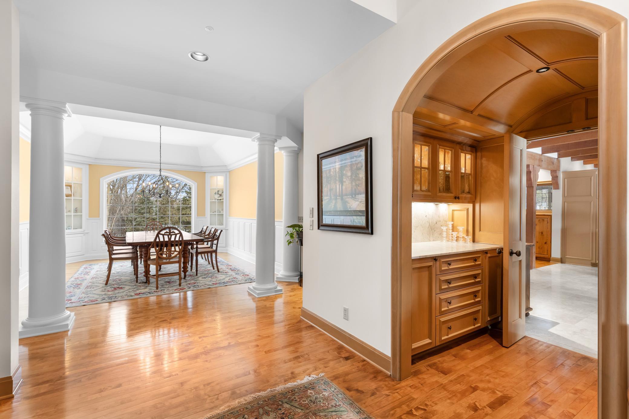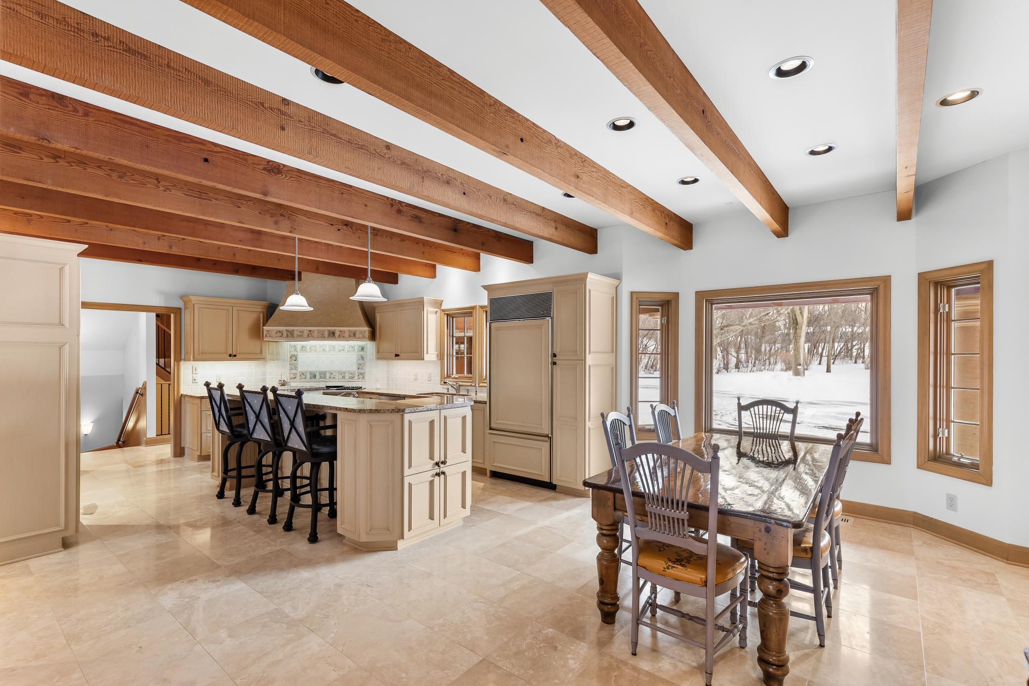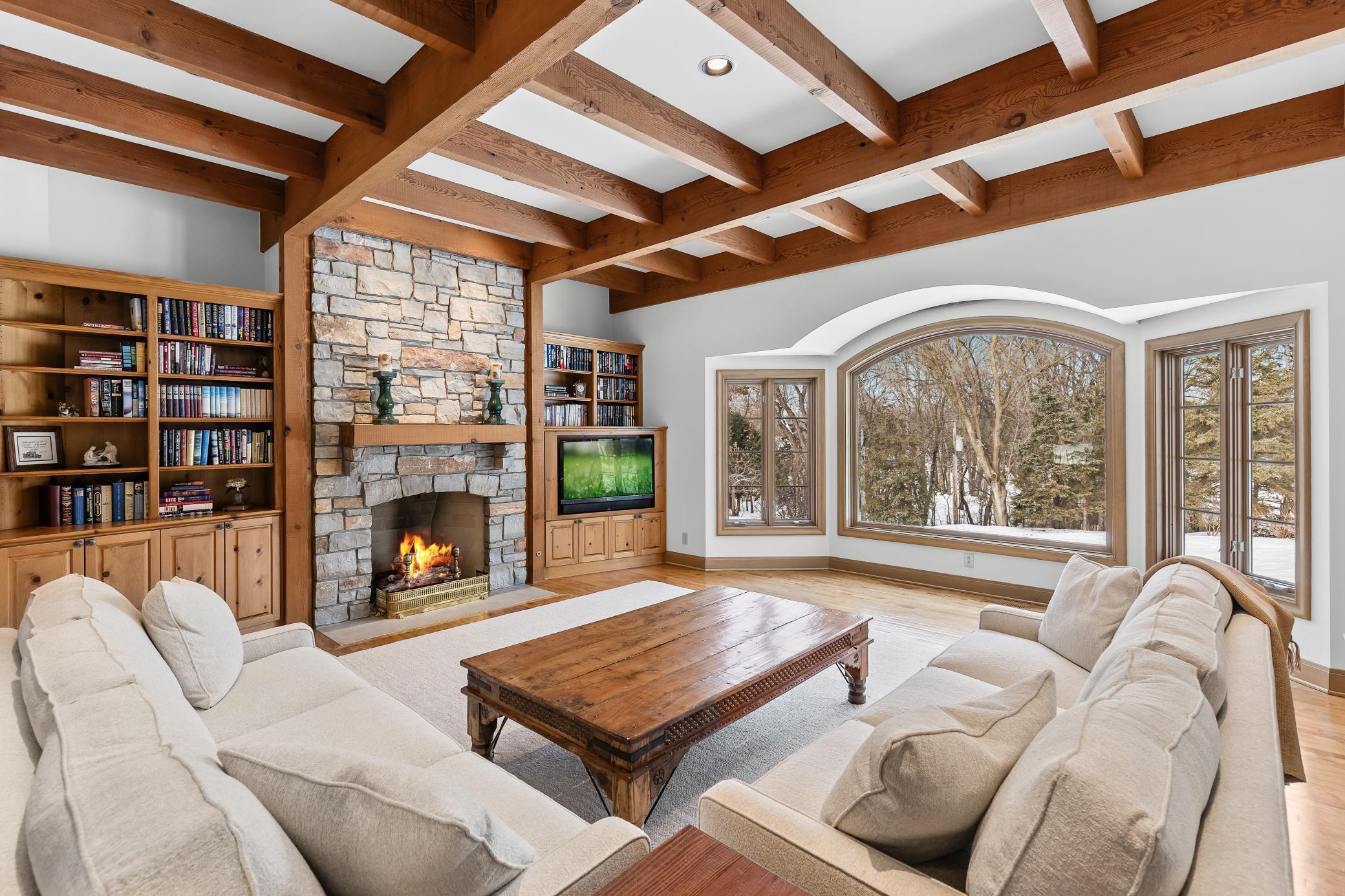 Privately tucked away at the end of a serene drive just minutes from Wayzata, this extraordinary one-owner estate rests on two breathtaking acres of level lawns, gardens, and storybook grounds. Custom built by Erotas and meticulously maintained, the residence offers over 10,000 square feet of timeless craftsmanship, architectural intention, and exceptional livability including 5+ bedrooms and 7 baths.Soaring ceilings adorned with hand-hewn beams crafted from reclaimed Lake Superior timber create warmth, scale, and a sense of enduring artistry throughout the home. Sunlight pours through expansive windows, revealing peaceful views from nearly every room and seamlessly connecting elegant interiors to the stunning landscape beyond.The main-level owner's suite is a true private retreat, featuring heated floors, steam shower, fireplace, private deck, and an expansive walk-in dressing space. Designed for both refined daily living and unforgettable entertaining, the home showcases an incredible, highly functional floor plan with dual staircases, elevator access, two laundry rooms, and beautifully flowing gathering spaces anchored by a chefs kitchen with exceptional pantry, spacious rear entry, and custom lockers.Recreation and wellness are elevated with an indoor sport court and viewing area, dedicated workout studio, sauna, game and media spaces, and a walkout lower level with fireplace and wet bar. Outdoors, a resort-style pool and charming pool house with bath create a secluded summer sanctuary, complemented by multiple patios, grilling terrace, and the remarkable privacy of the surrounding grounds.Upper-level bedrooms each offer distinctive architectural characterincluding a dramatic two-story suite with lofted study, a turreted bedroom retreat, and generous bonus spaces with potential for additional bedrooms or baths. Heated floors, exquisite millwork, and uncompromising quality speak throughout.A heated four-car garage completes this rare offeringan estate where privacy, craftsmanship, recreation, and natural beauty converge just moments from the heart of Wayzata.
